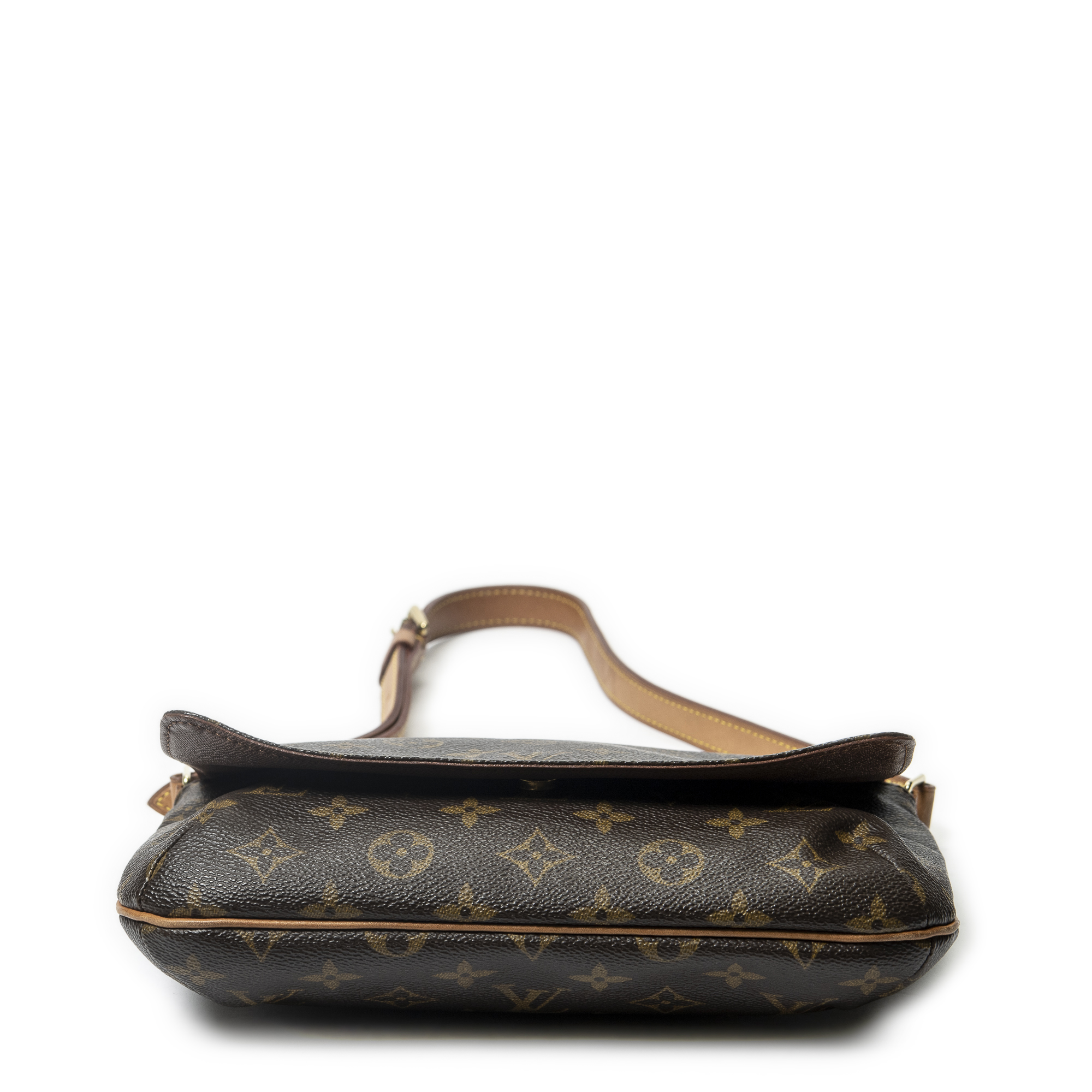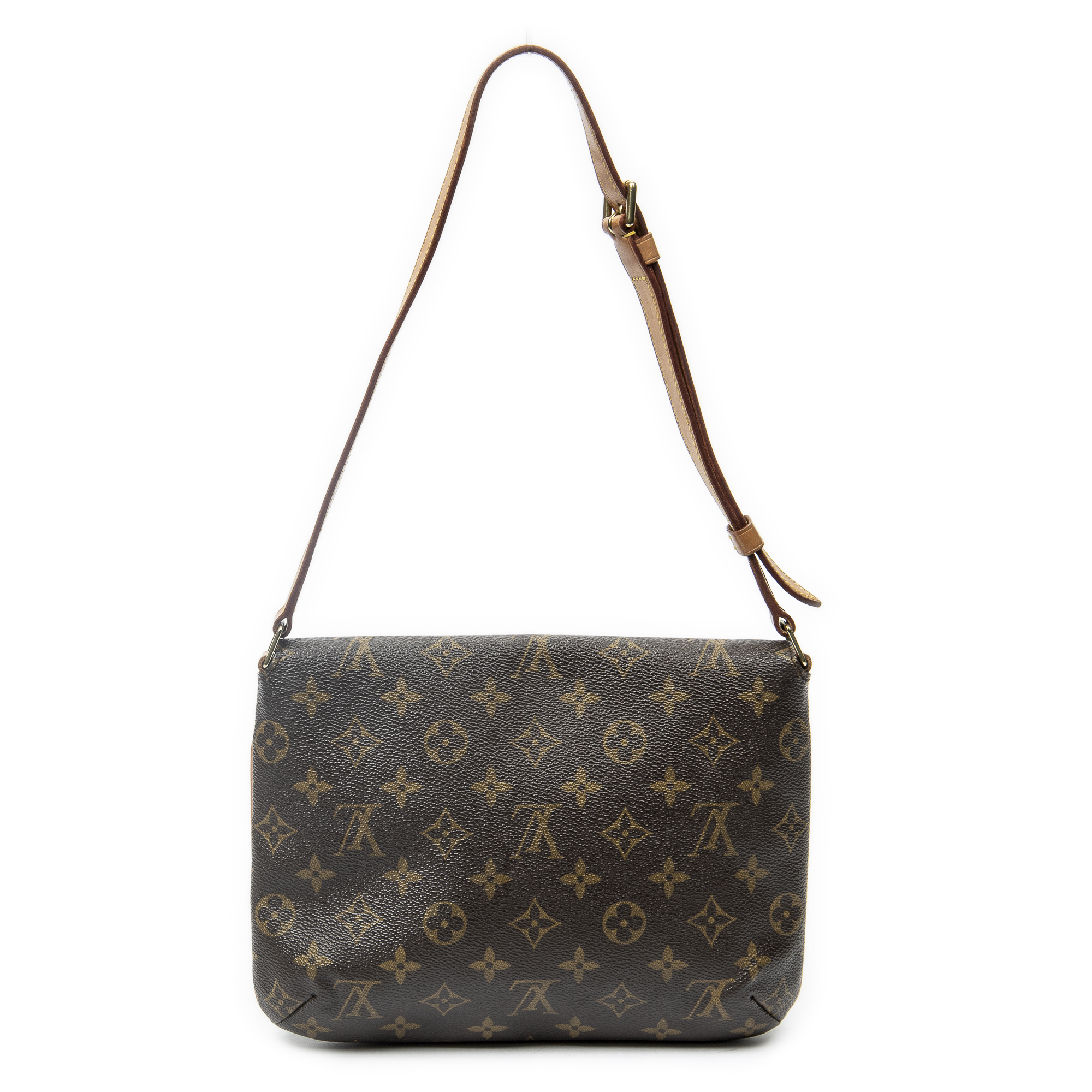 Louis Vuitton Shoulder Bag Musette Tango in Brown Monogram Canvas and Golden Brass hardware. The product is in Very Good Condition (AB).