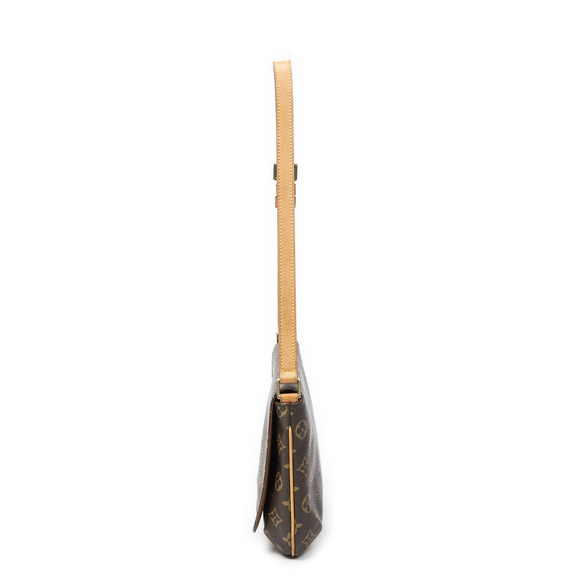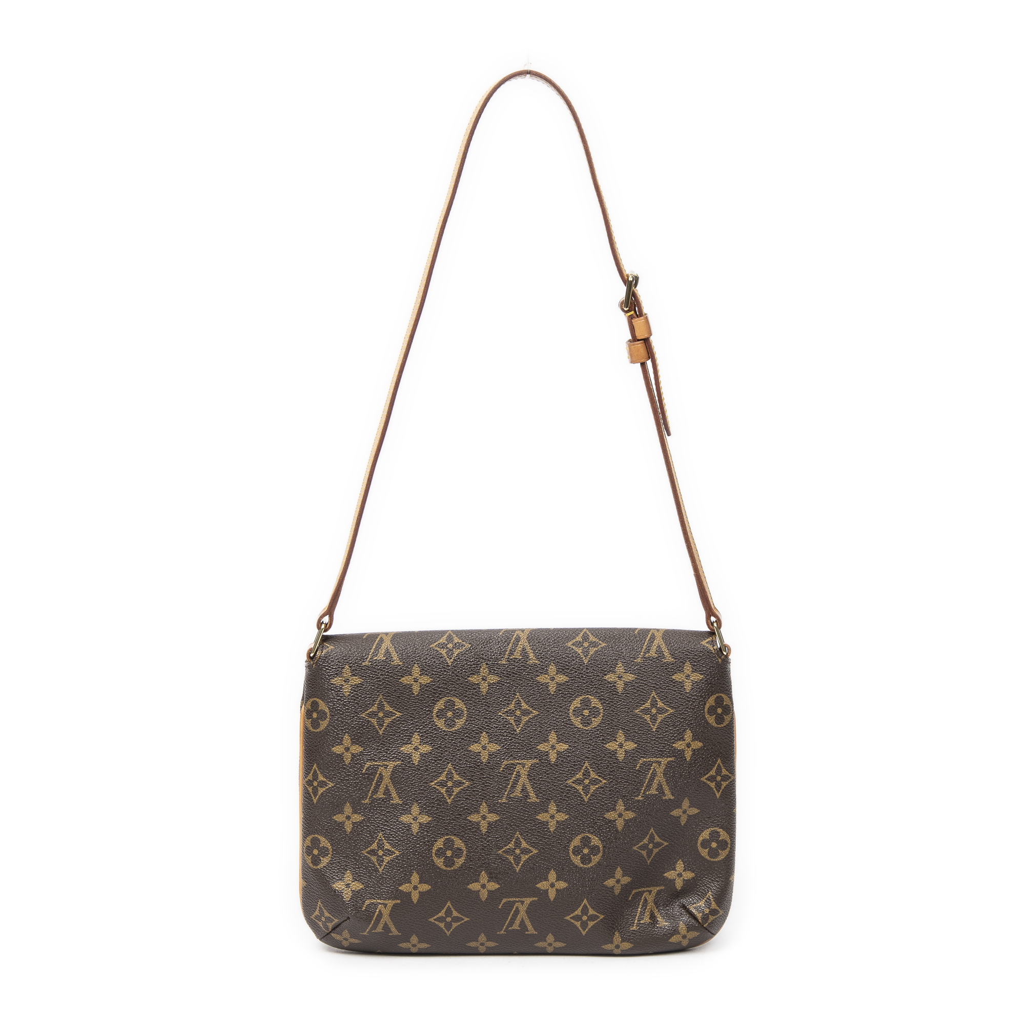 Louis Vuitton Shoulder Bag Musette Tango in Brown Monogram Canvas and Golden Brass hardware. The product is in Excellent Condition (A).