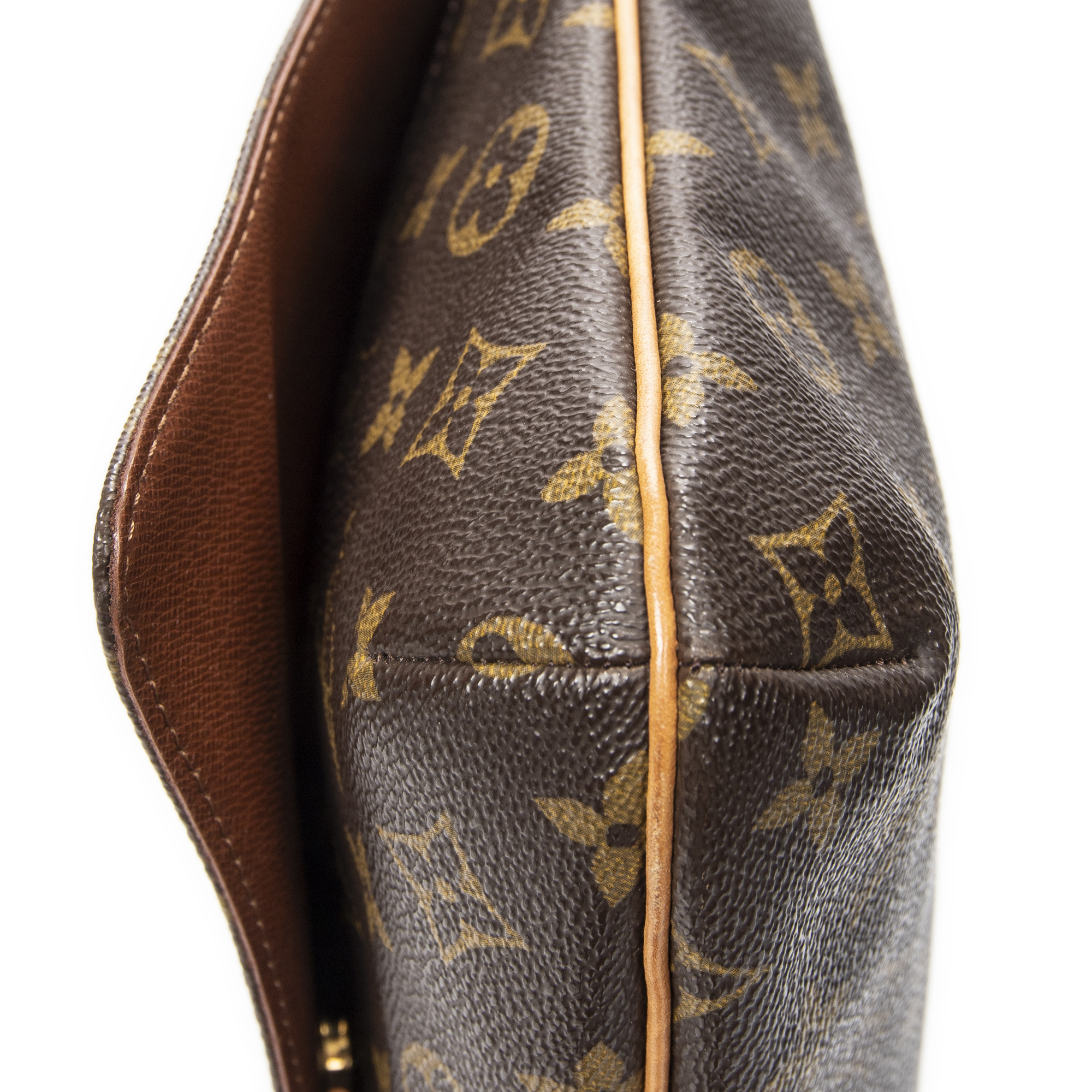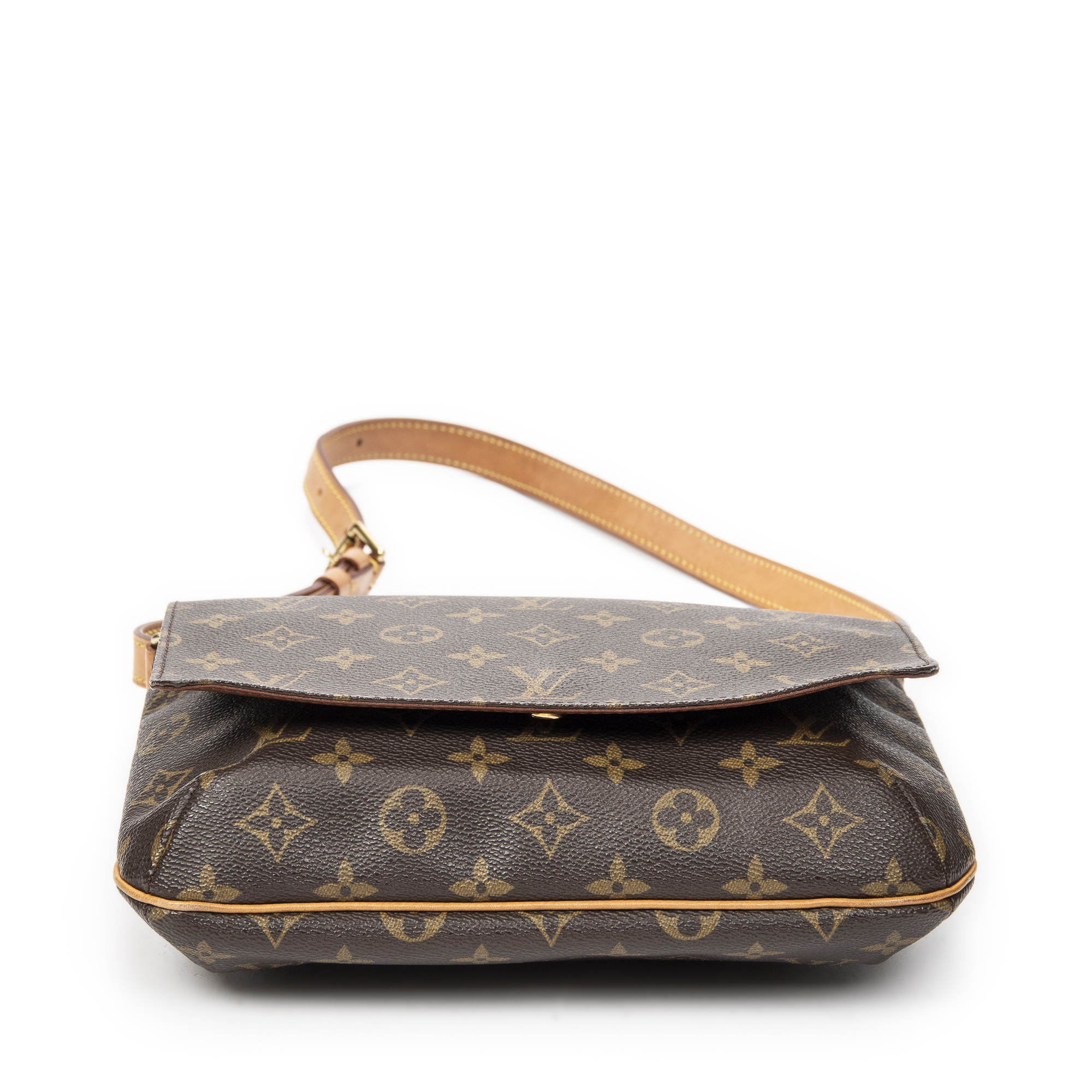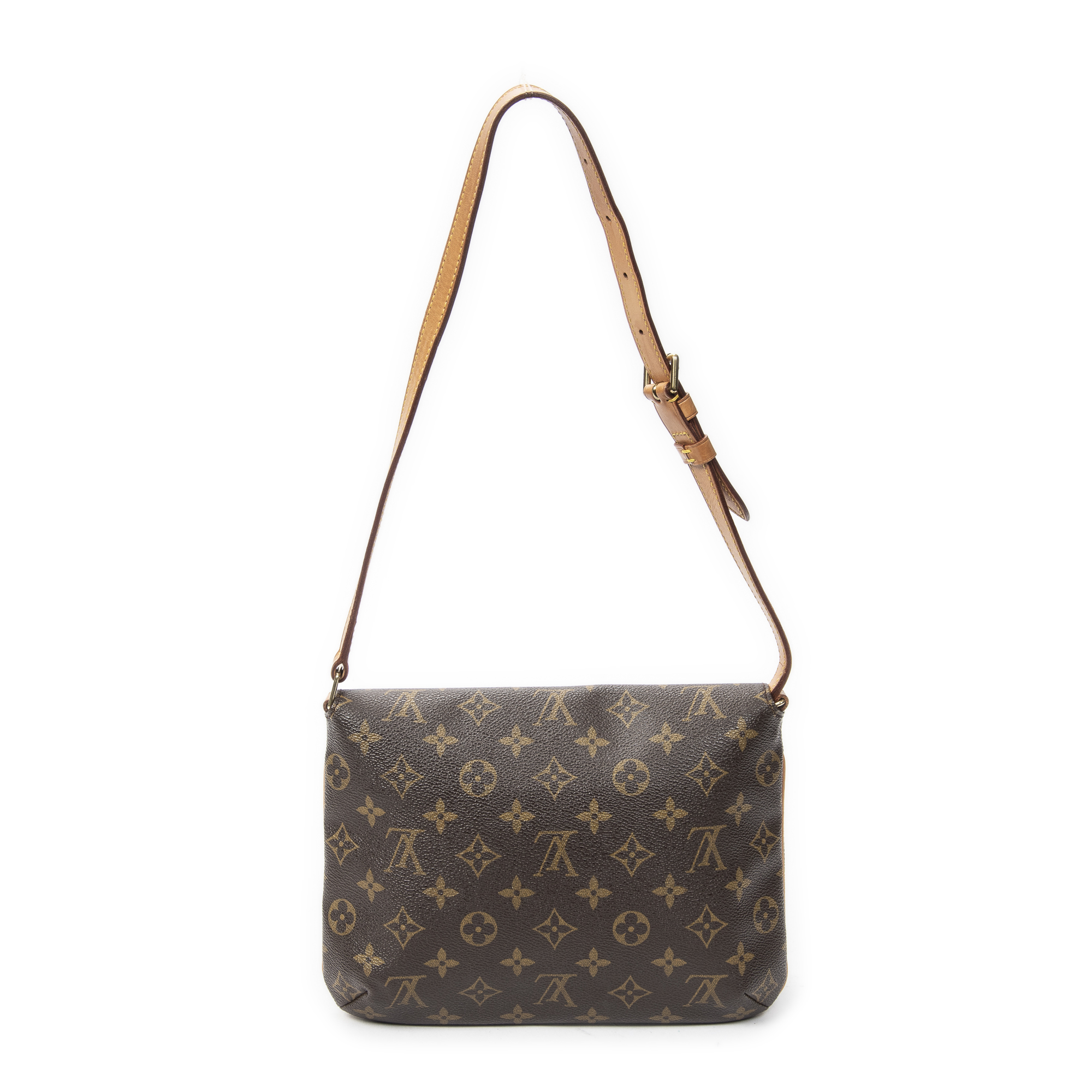 Louis Vuitton Shoulder Bag Musette Tango in Brown Monogram Canvas and Golden Brass hardware. The product is in Very Good Condition (AB).