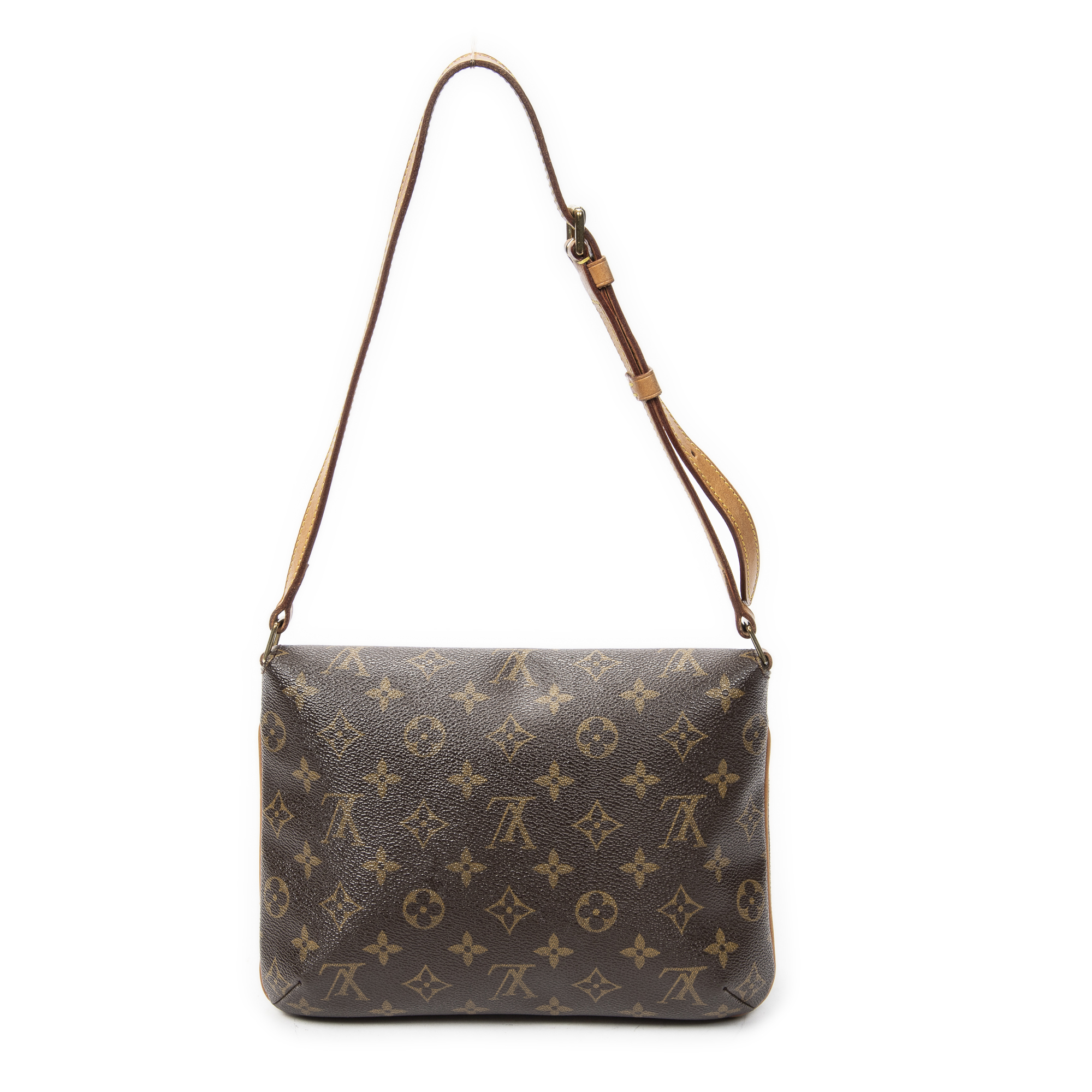 Louis Vuitton Shoulder Bag Musette Tango in Brown Monogram Canvas and Golden Brass hardware. The product is in Very Good Condition (AB).