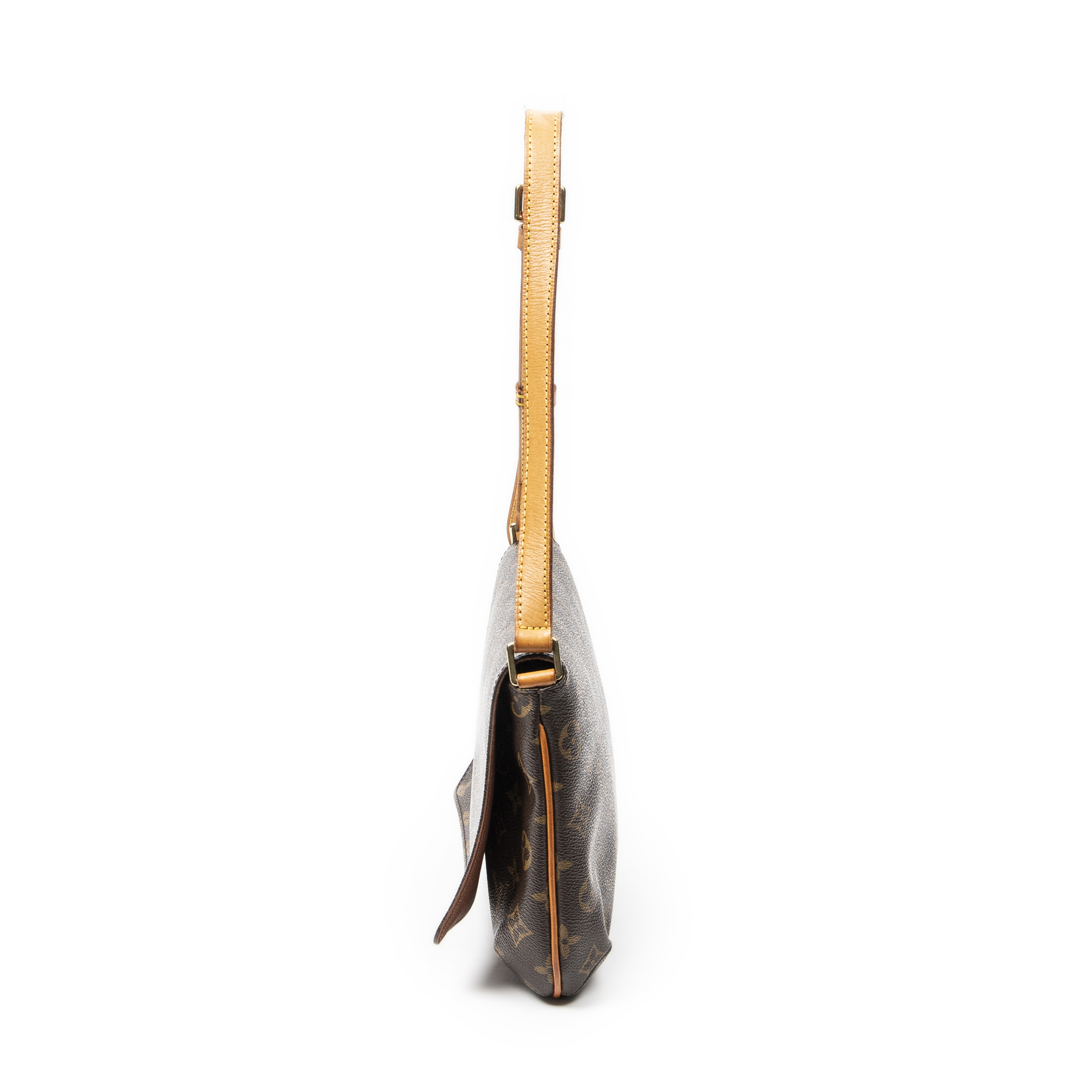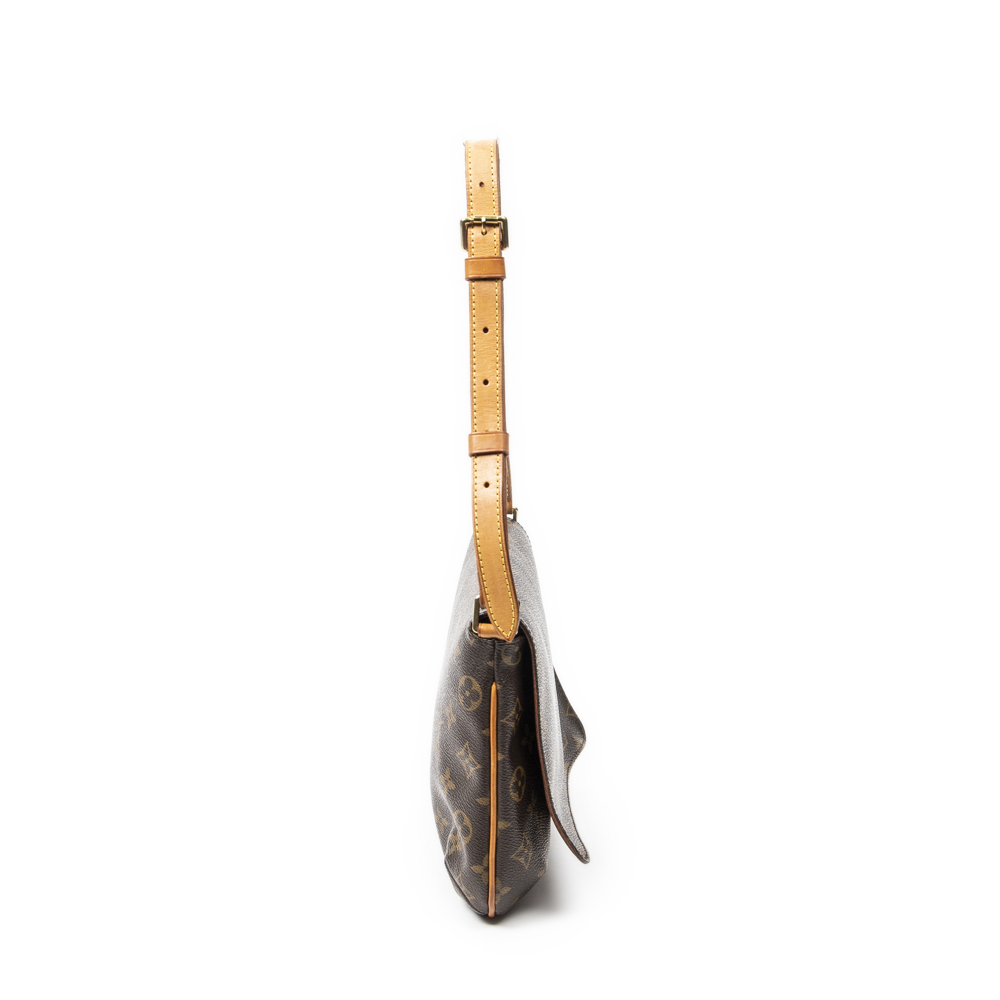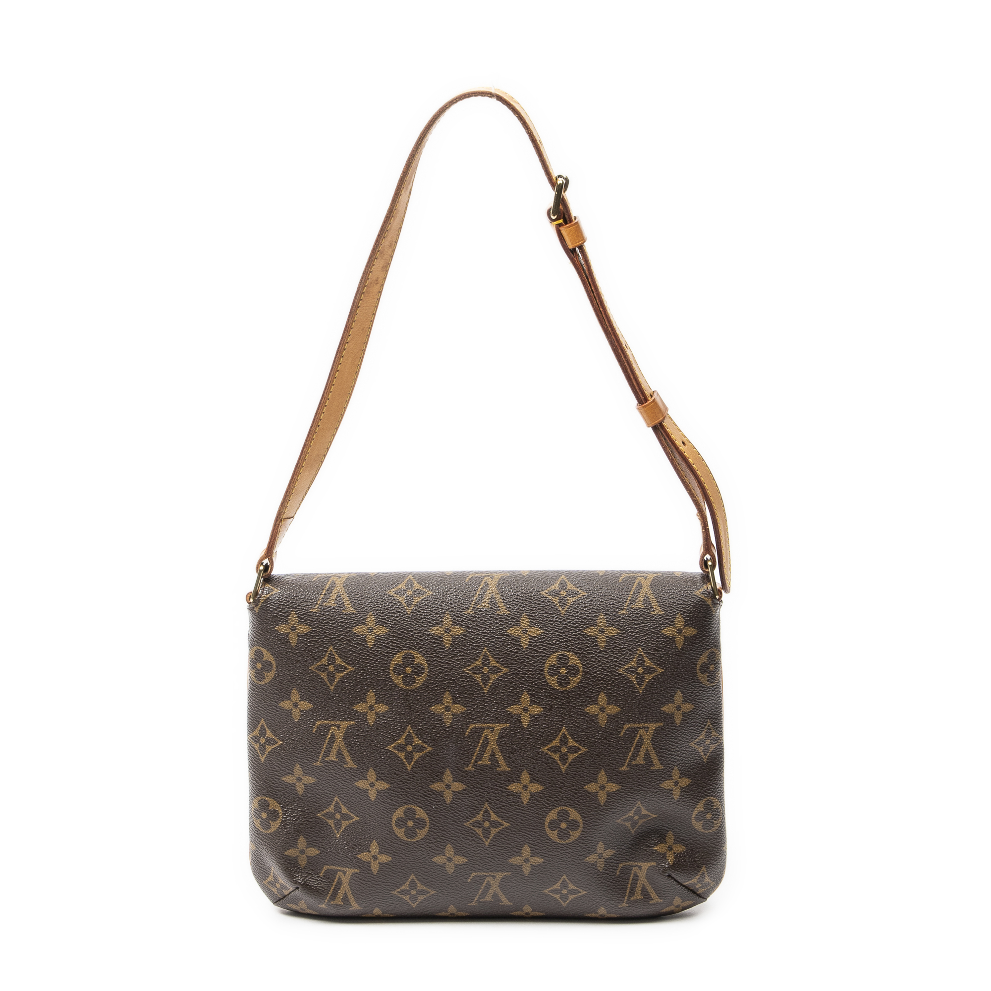 Louis Vuitton Shoulder Bag Musette Tango in Brown Monogram Canvas and Golden Brass hardware. The product is in Very Good Condition (AB).