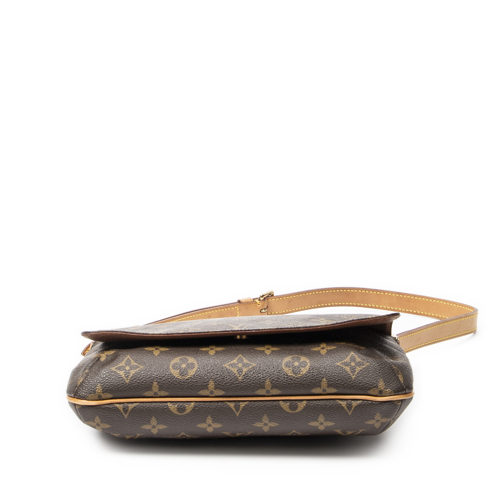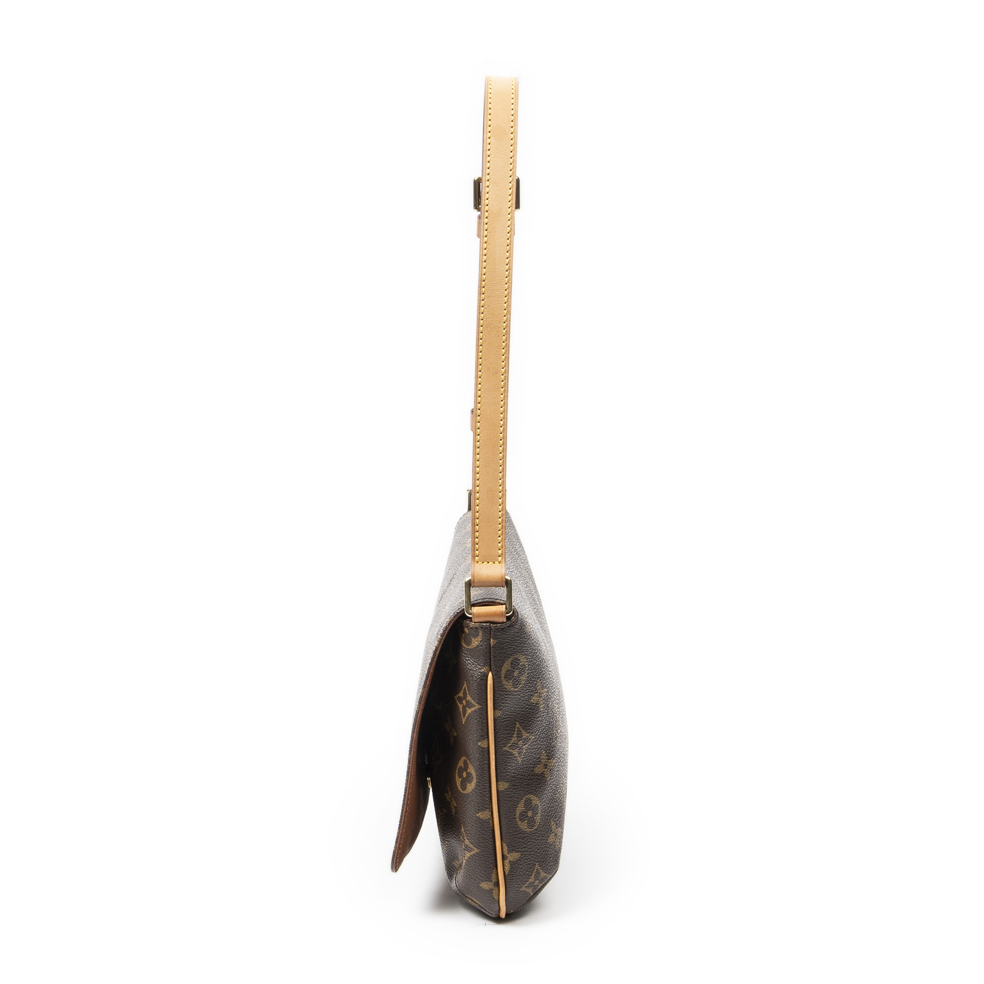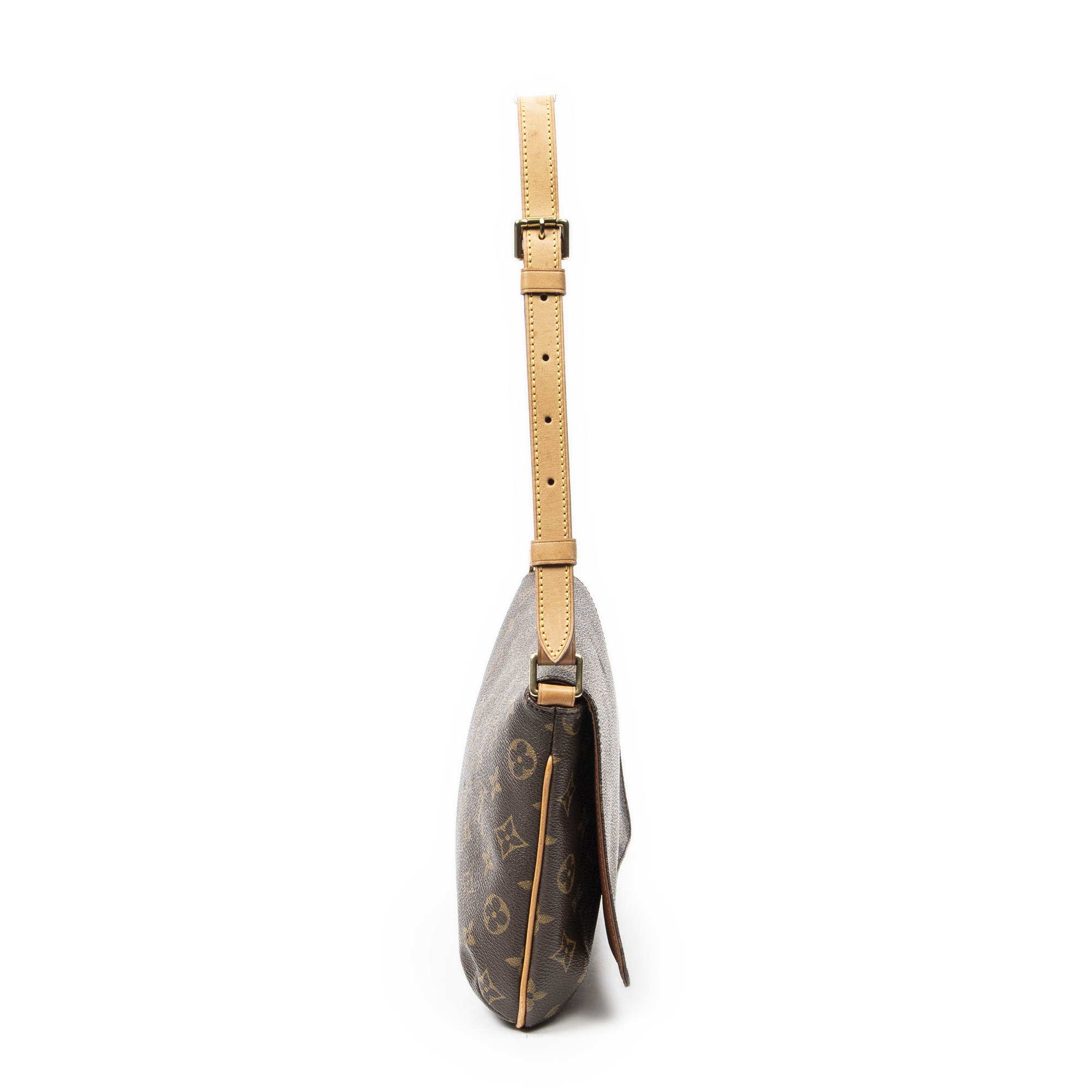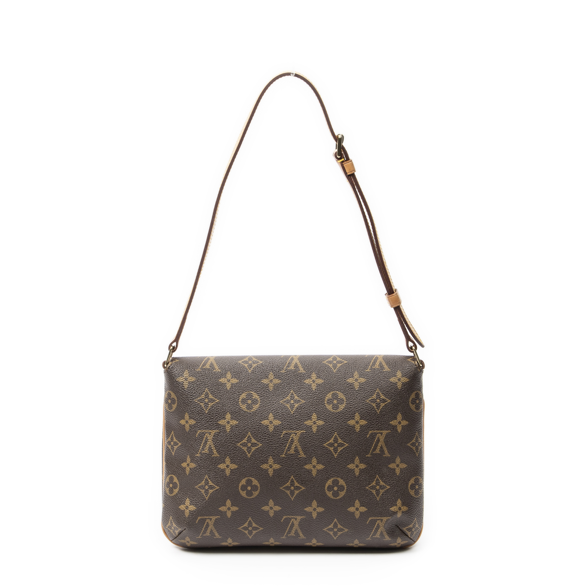 Louis Vuitton Shoulder Bag Musette Tango in Brown Monogram Canvas and Golden Brass hardware. The product is in Excellent Condition (A).