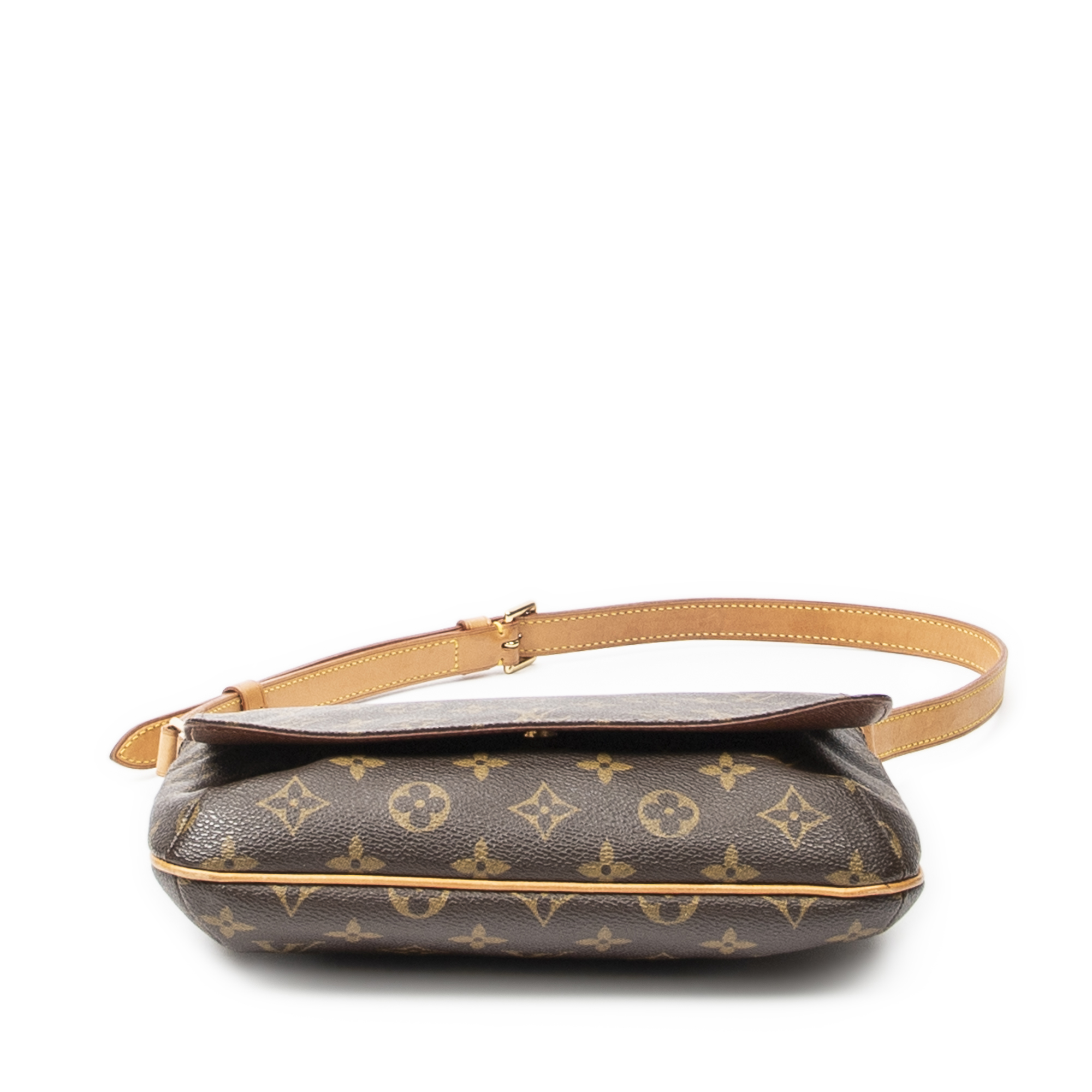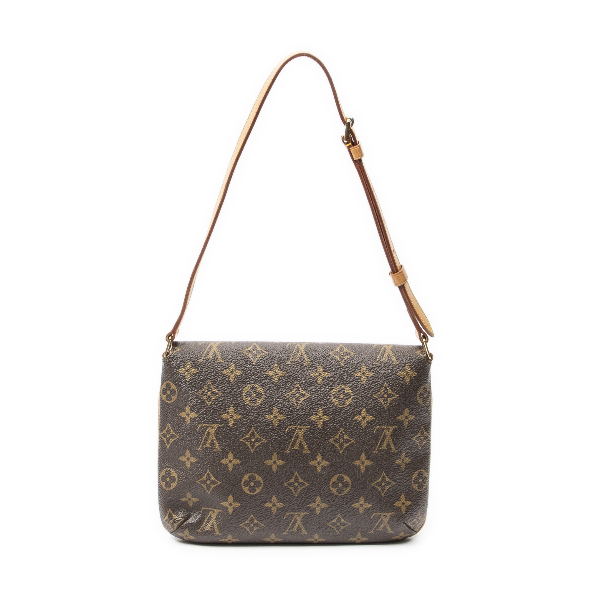 Louis Vuitton Shoulder Bag Musette Tango in Brown Monogram Canvas and Golden Brass hardware. The product is in Excellent Condition (A).