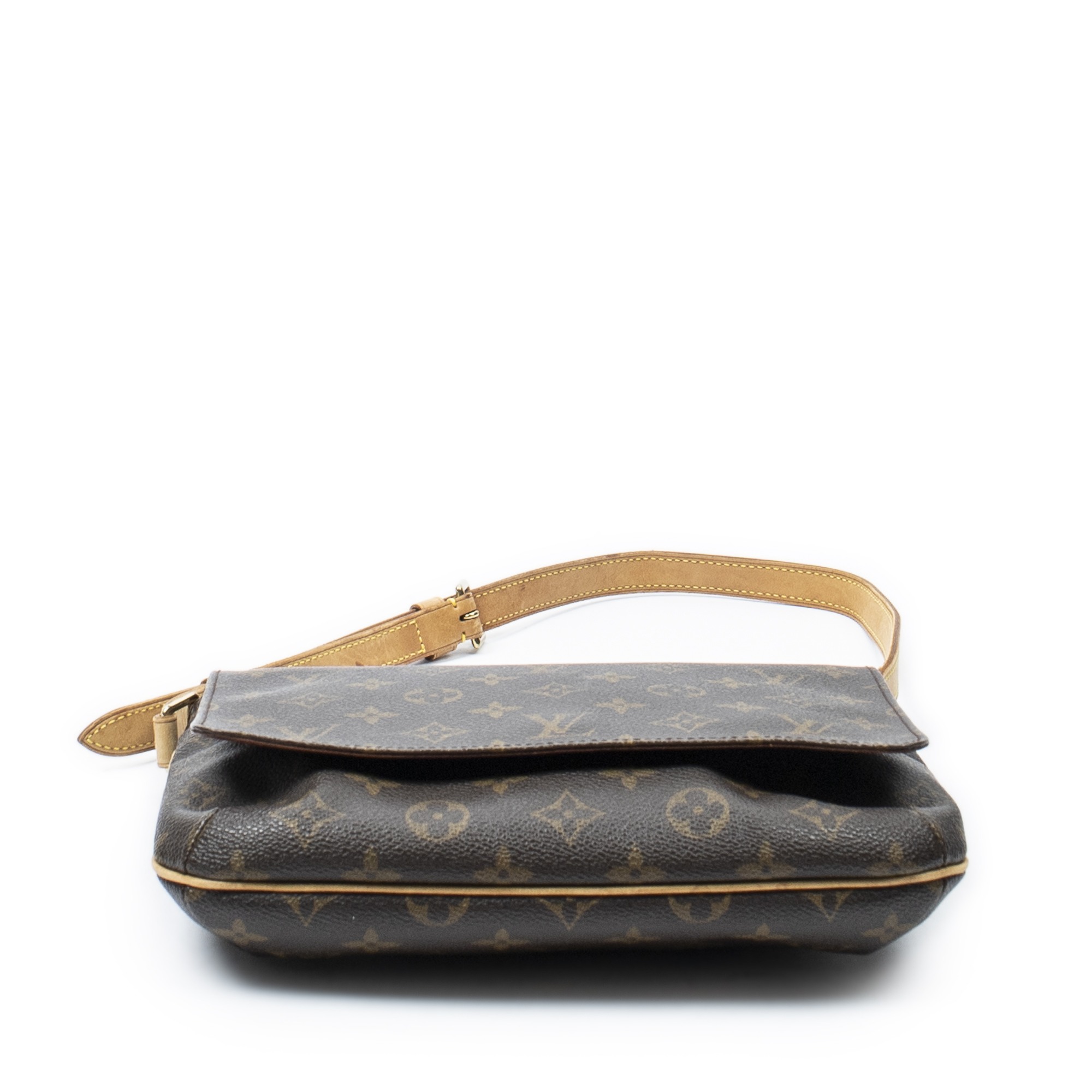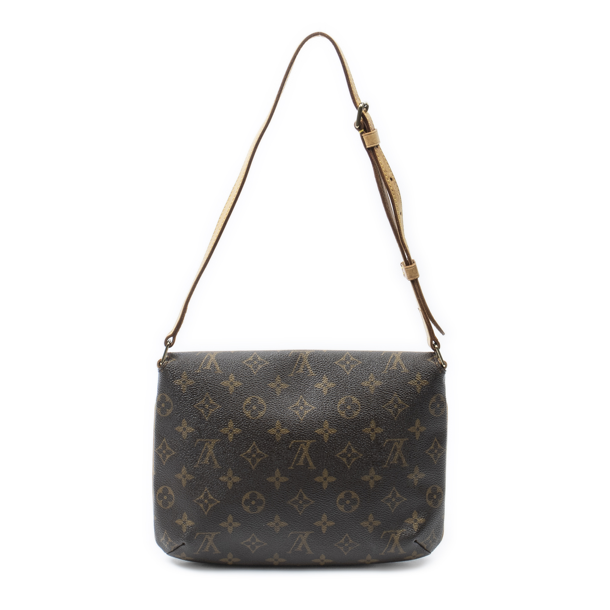 Louis Vuitton Shoulder Bag Musette Tango in Brown Monogram Canvas and Golden Brass hardware. The product is in Very Good Condition (AB).