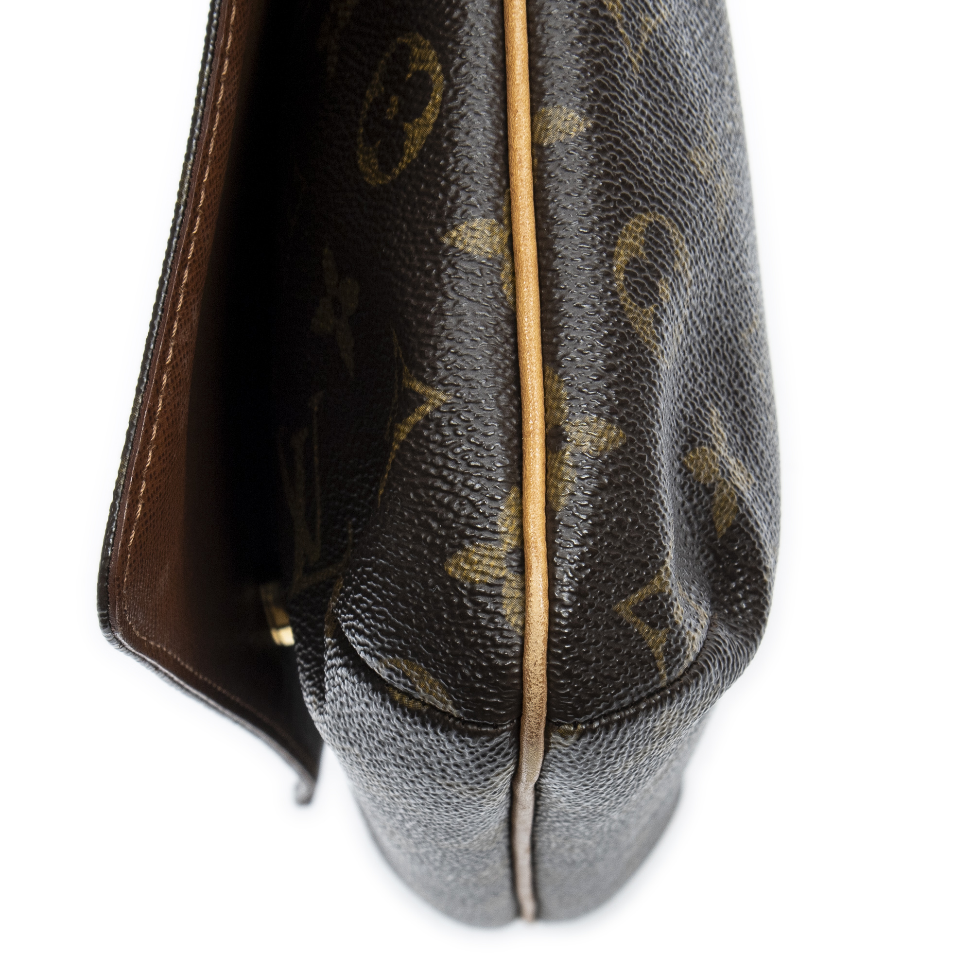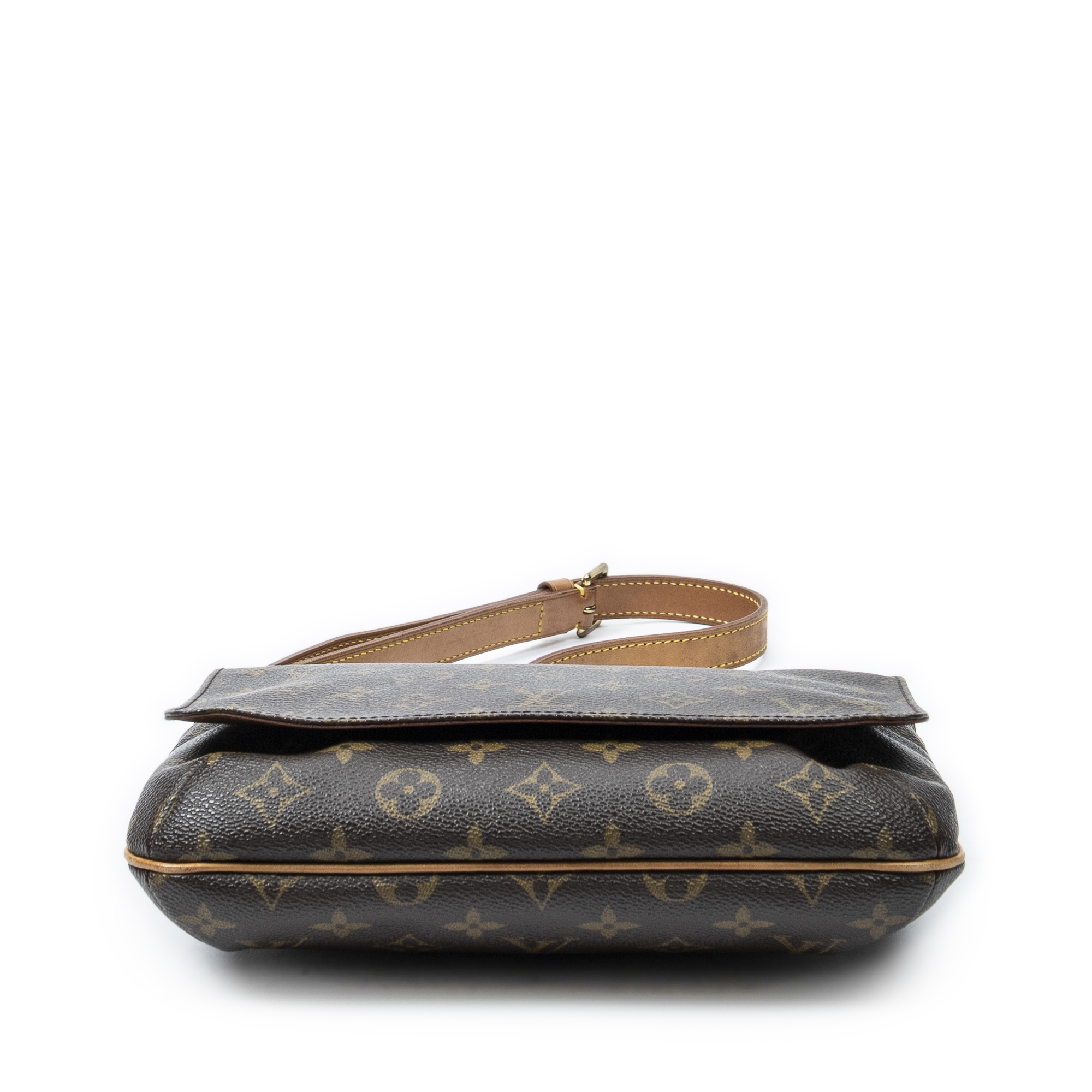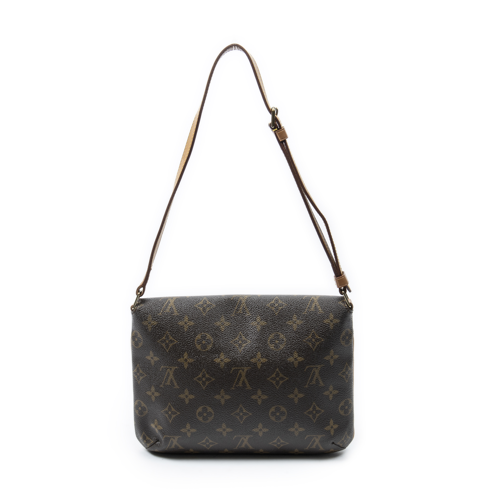 Louis Vuitton Shoulder Bag Musette Tango in Brown Monogram Canvas and Golden Brass hardware. The product is in Very Good Condition (AB).