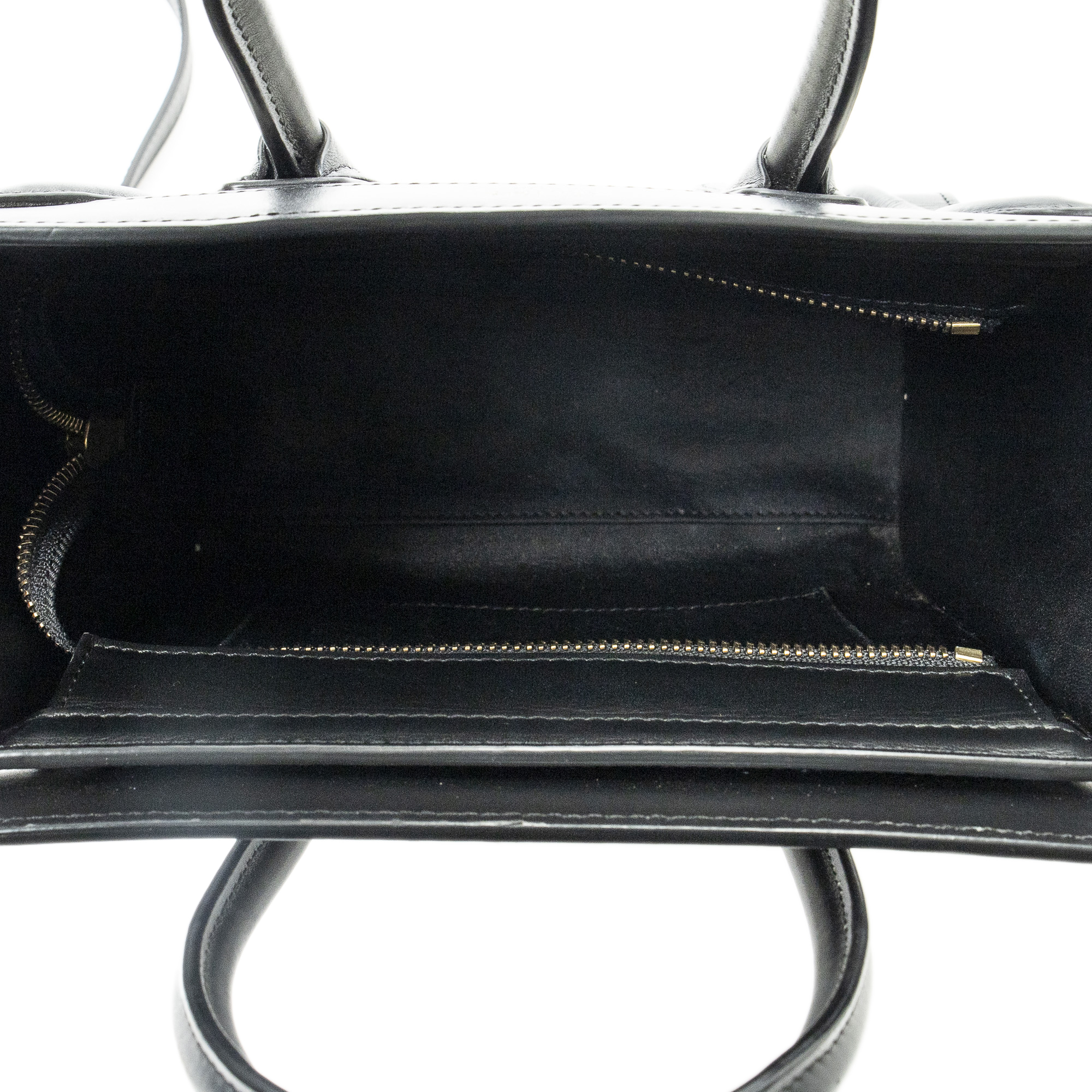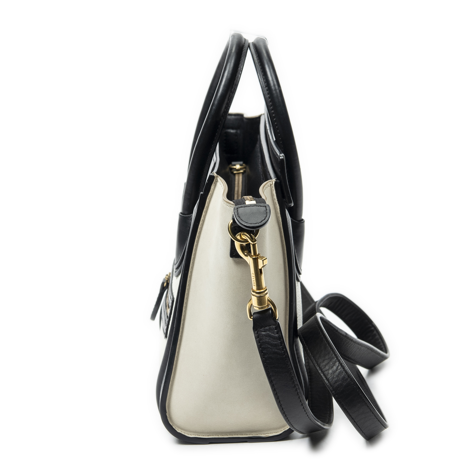 Celine Shoulder Bag Nano Bicolor Luggage in Ivory/Black Calfskin Leather and Gold hardware. The product is in Excellent Condition (A).