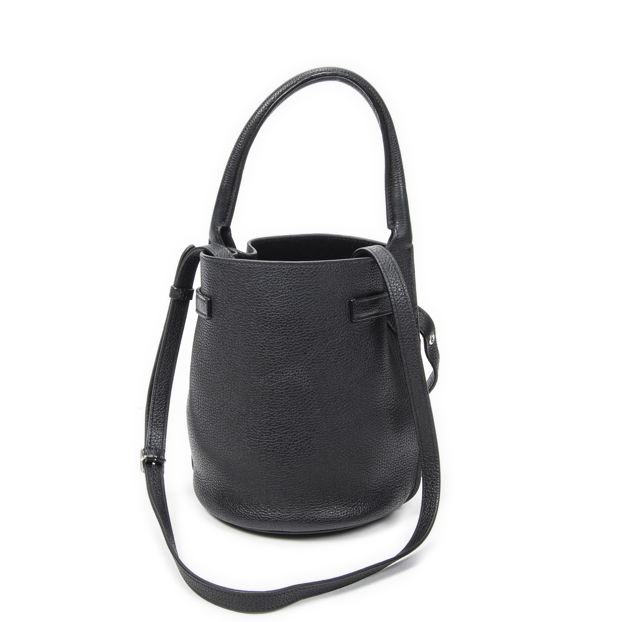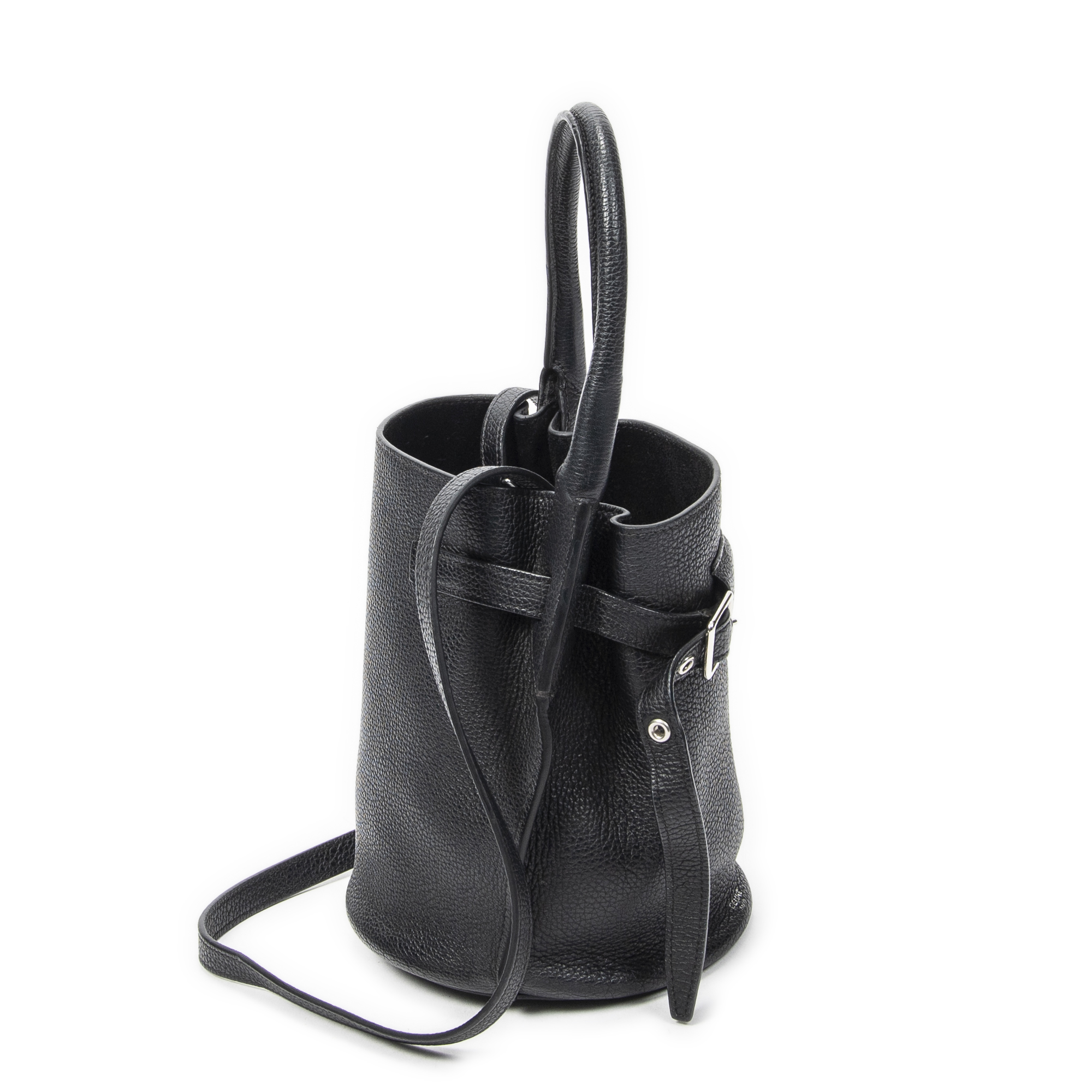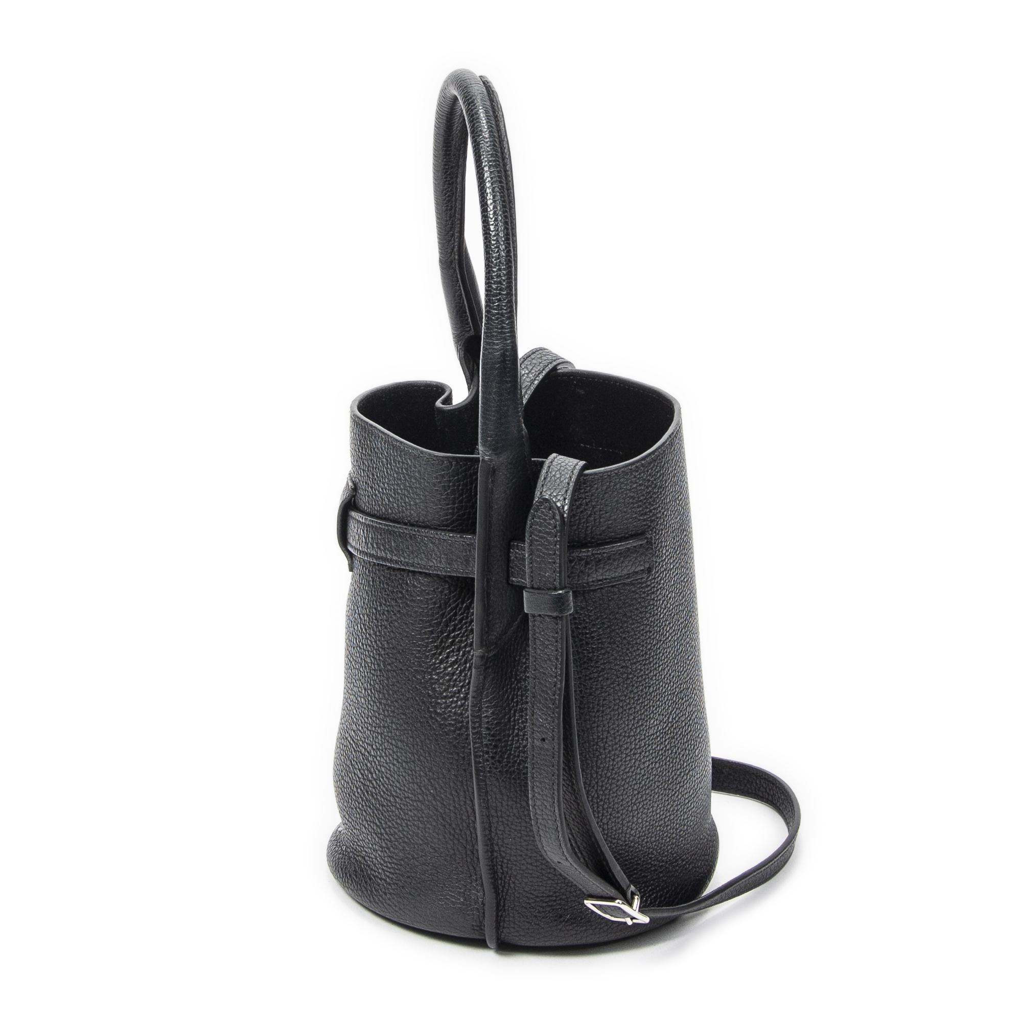 Celine Shoulder Bag Nano Bucket Big Bag in Black Grained Calfskin Leather and Silver hardware. The product is in Perfect Condition (AA).