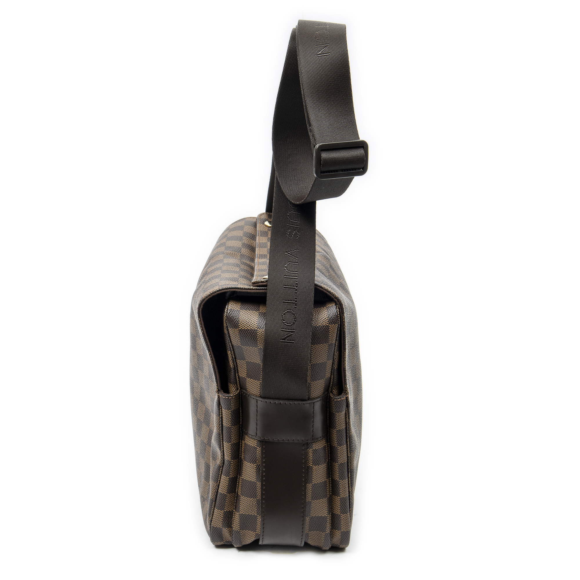 Louis Vuitton Shoulder Bag Naviglio in Brown Damier Ebene and Golden Brass hardware. The product is in Perfect Condition (AA).