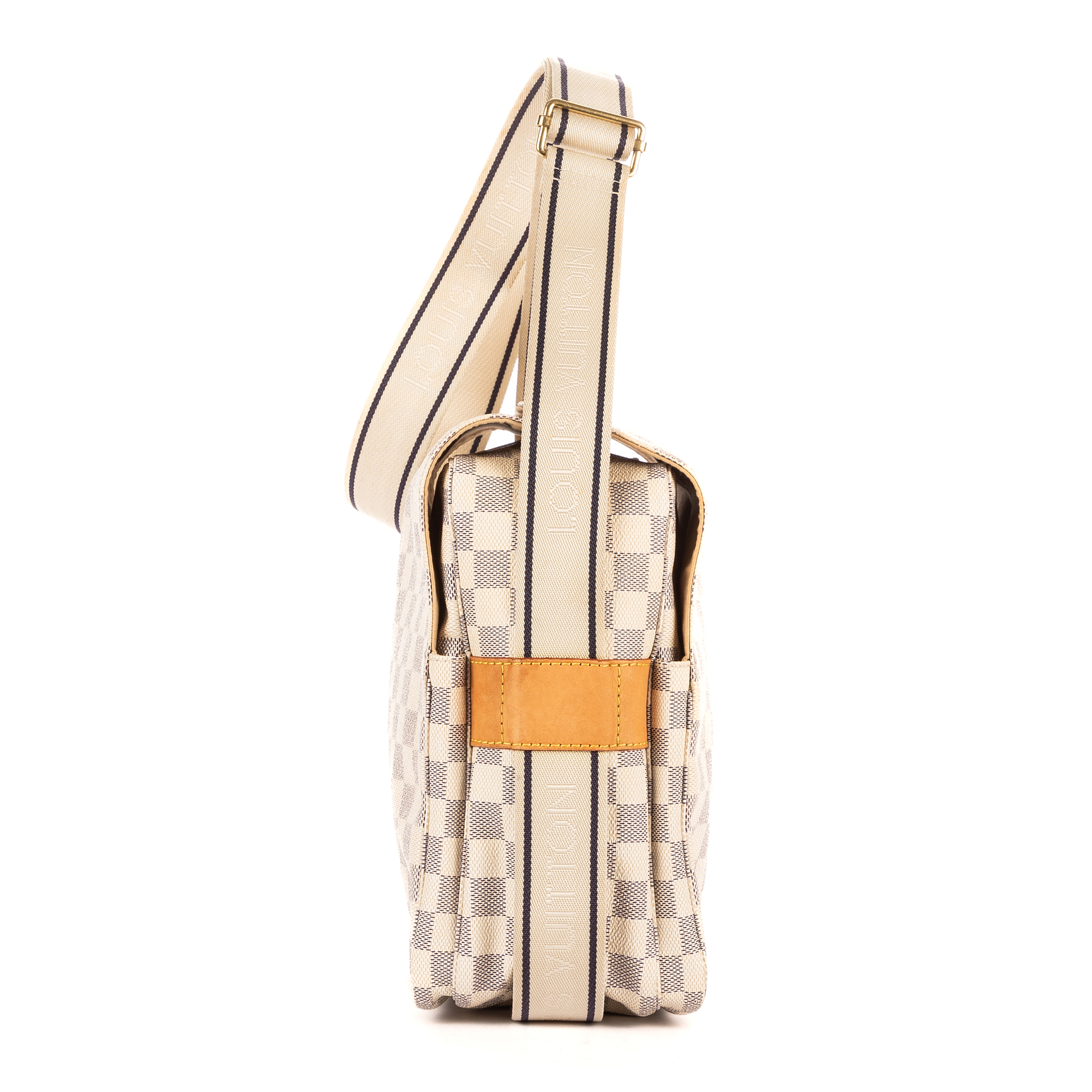 Louis Vuitton Shoulder Bag Naviglio in White Damier Azur and Golden Brass hardware. The product is in Perfect Condition (AA).