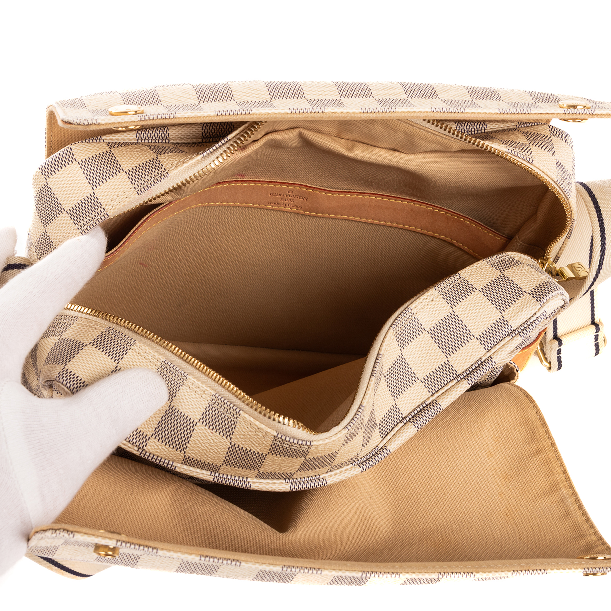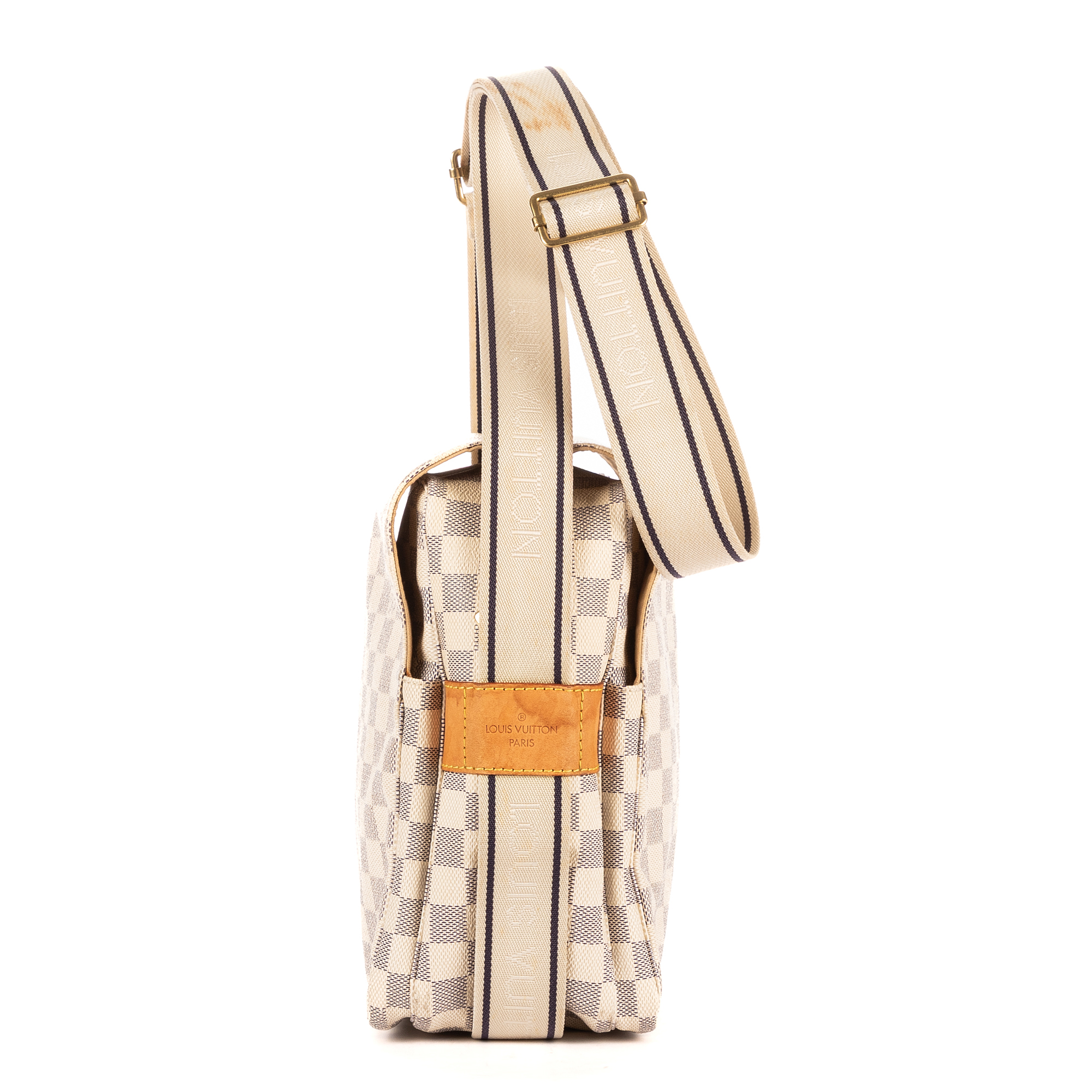 Description : Louis Vuitton Shoulder Bag Naviglio in White Damier Azur and Golden Brass hardware. The product is in Perfect Condition (AA). Dimensions: 28x24x12 cm SKU: EAH3321 Serial number: SR4058 Accessories Included: Dustbag Delivery: We have a 5 to 7 business days delivery policy, hassle-free and duties/tariffs included! BrandCo Paris finds rare and top condition items at great deals, they are worth your patience! Shop with confidence - All BrandCo Paris items are carefully selected and authenticated by our team of experts. All the items come with an authenticity certificate and packaging delivered by BrandCo Paris. Item Condition Grading Table N (Like New) AA (Perfect Condition) A (Excellent Condition) AB (Very Good Condition) B (Good/Fair)
