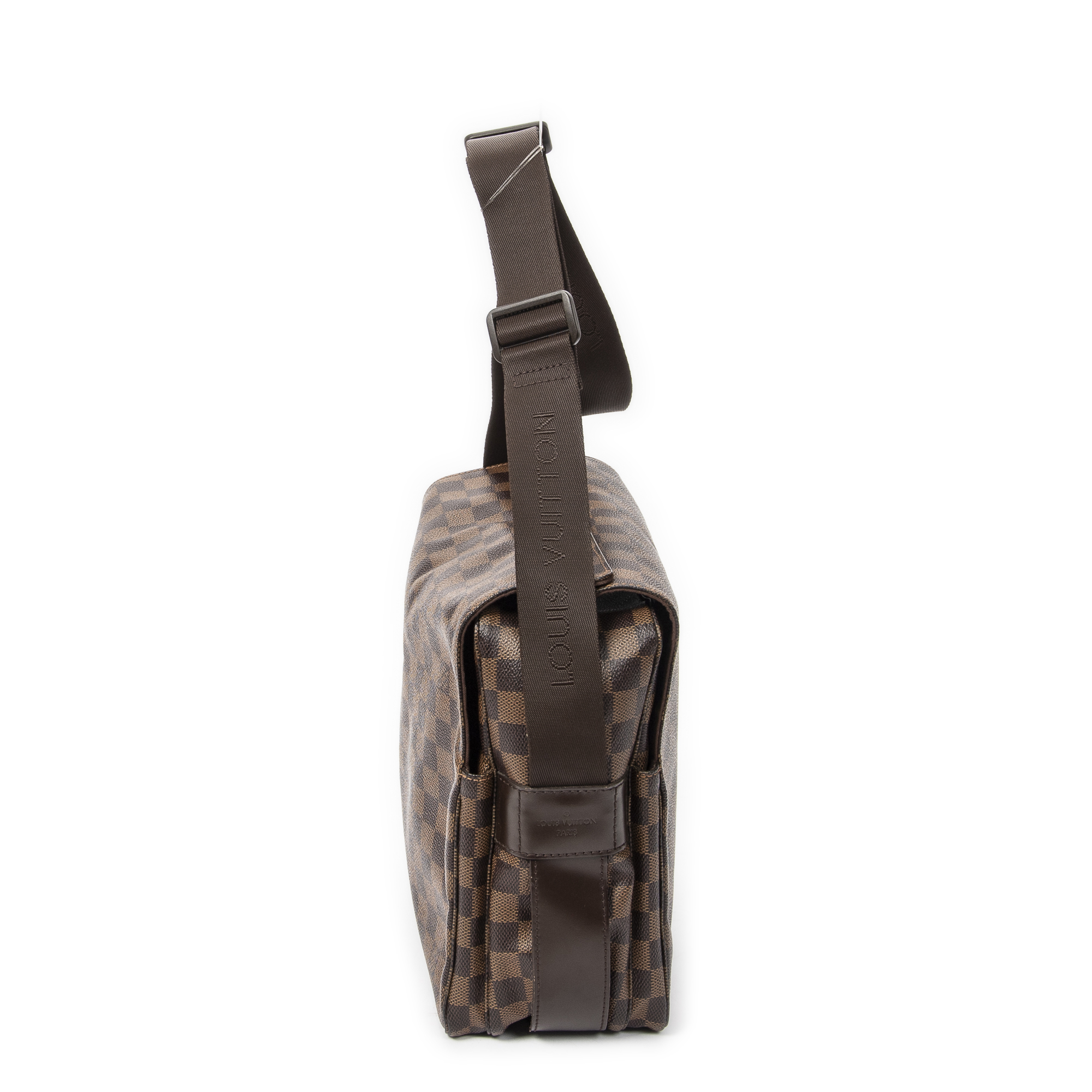 Louis Vuitton Shoulder Bag Naviglio in Brown Damier Ebene and Golden Brass hardware. The product is in Excellent Condition (A).