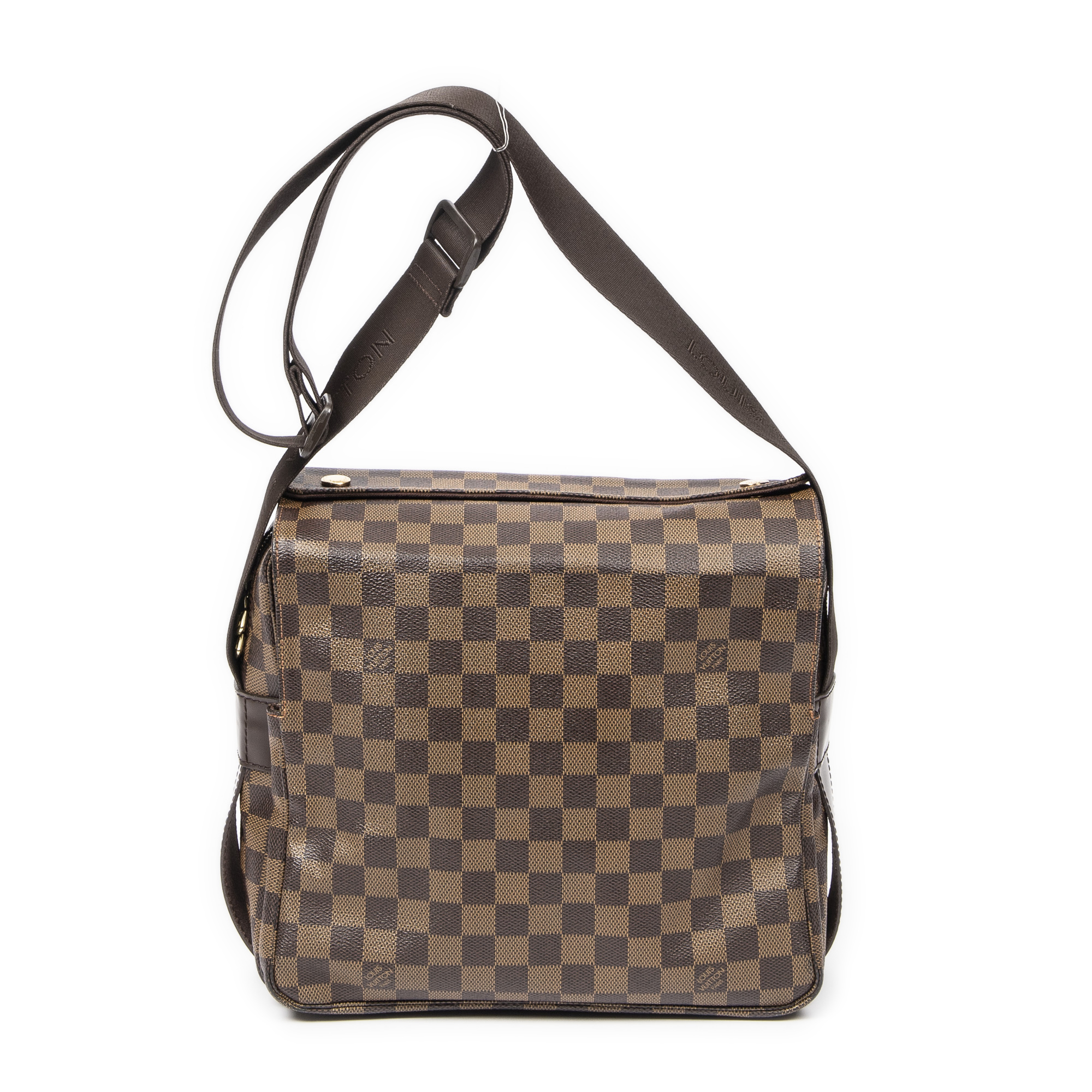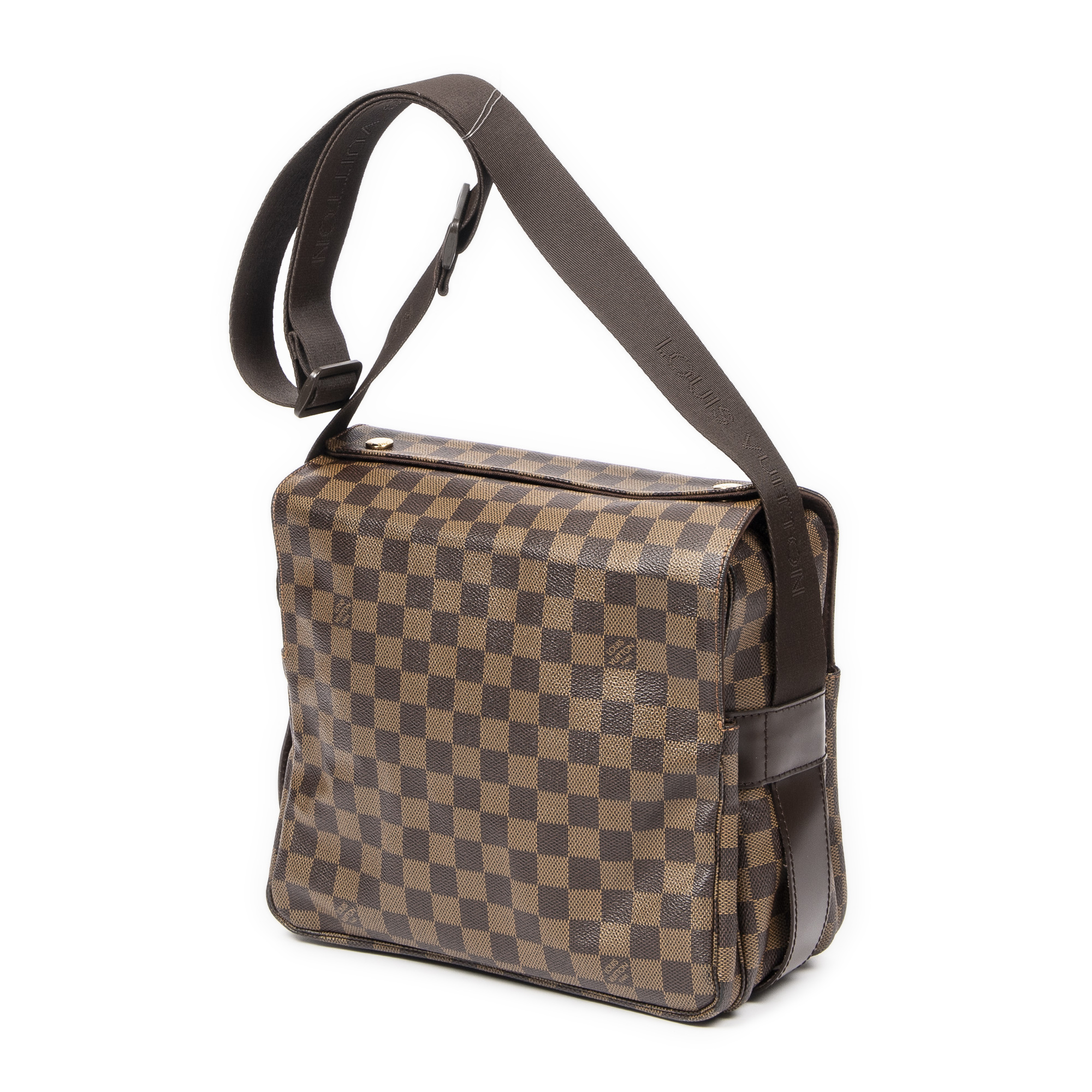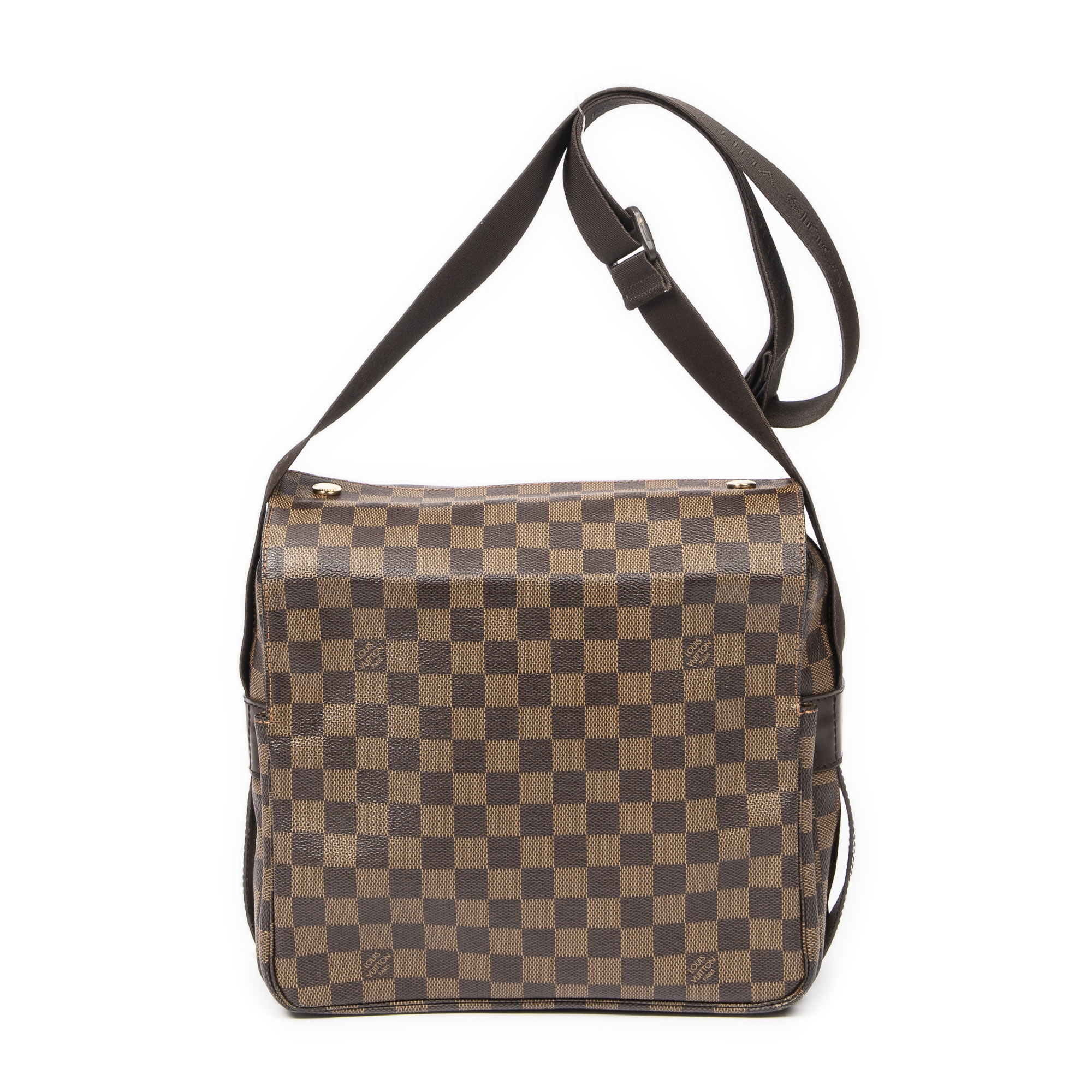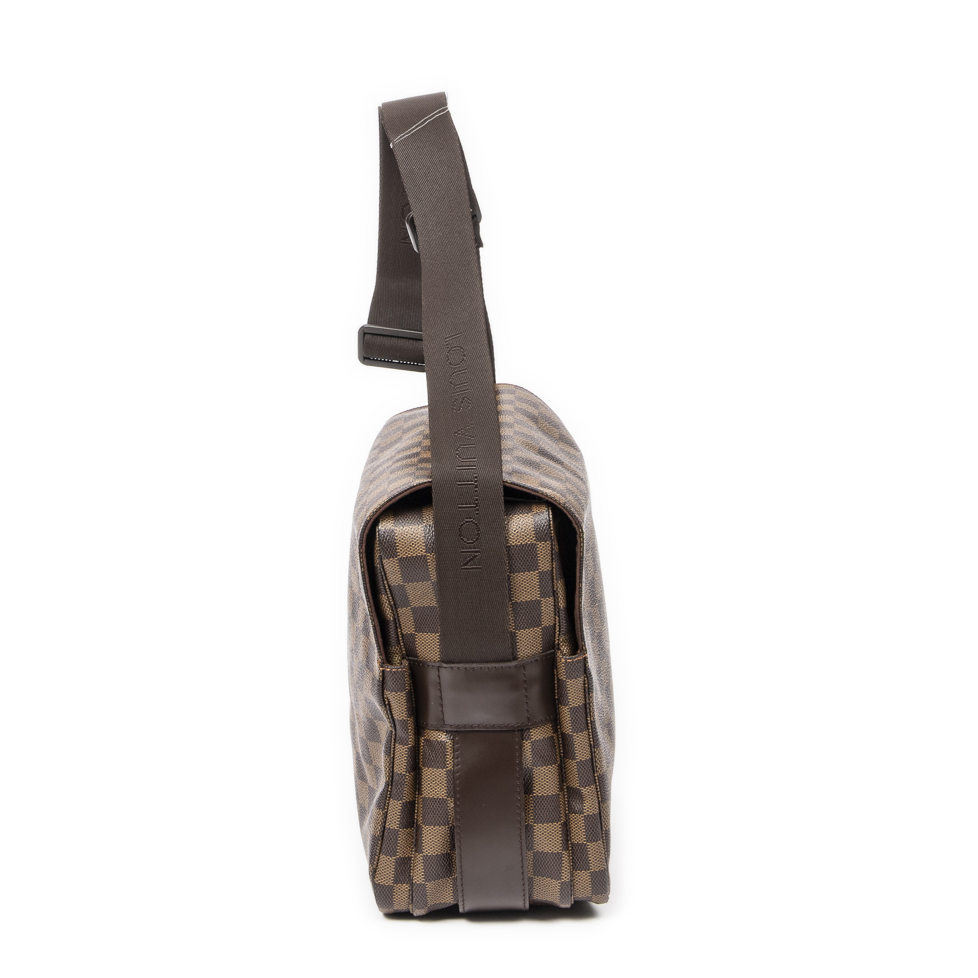 Louis Vuitton Shoulder Bag Naviglio in Brown Damier Ebene and Golden Brass hardware. The product is in Excellent Condition (A).