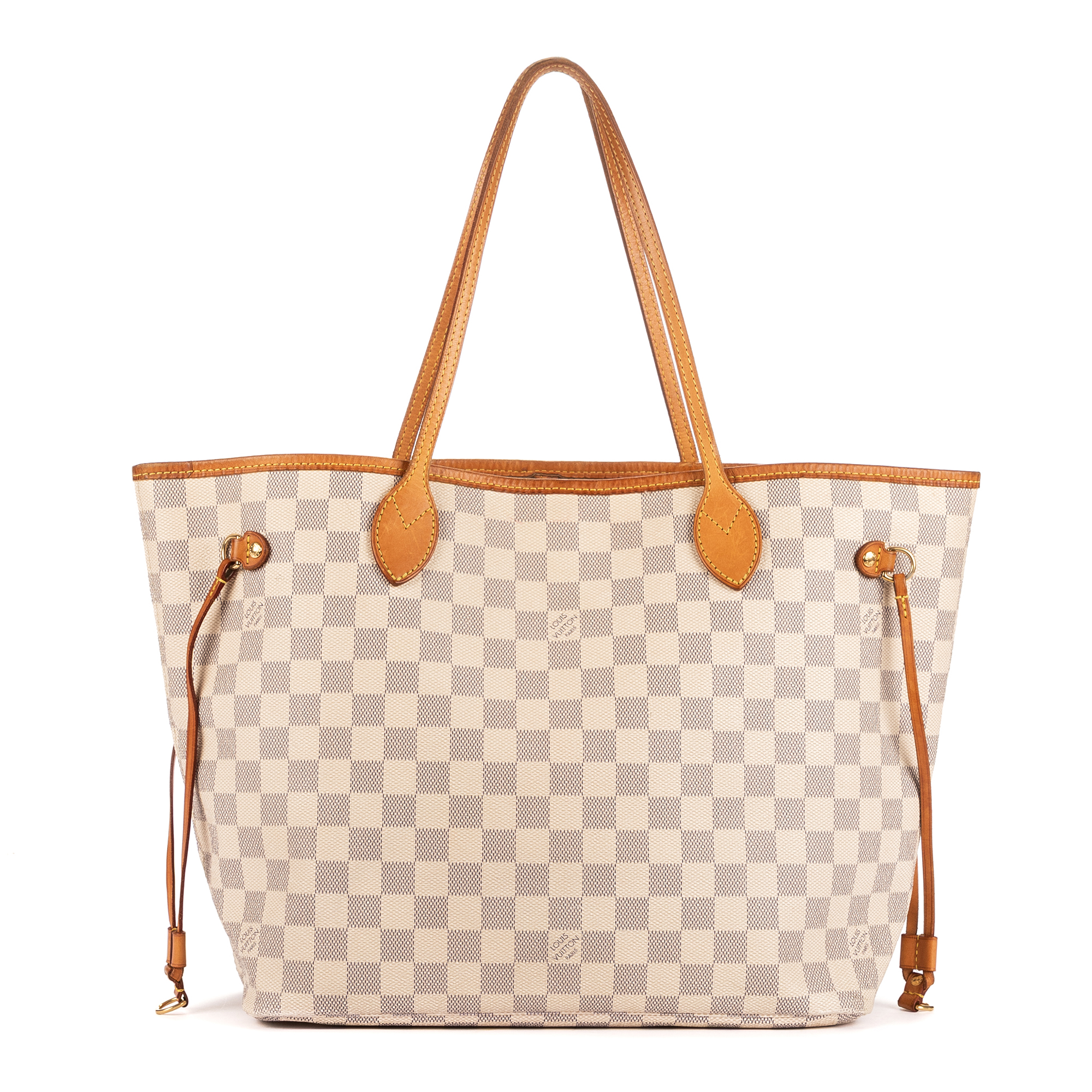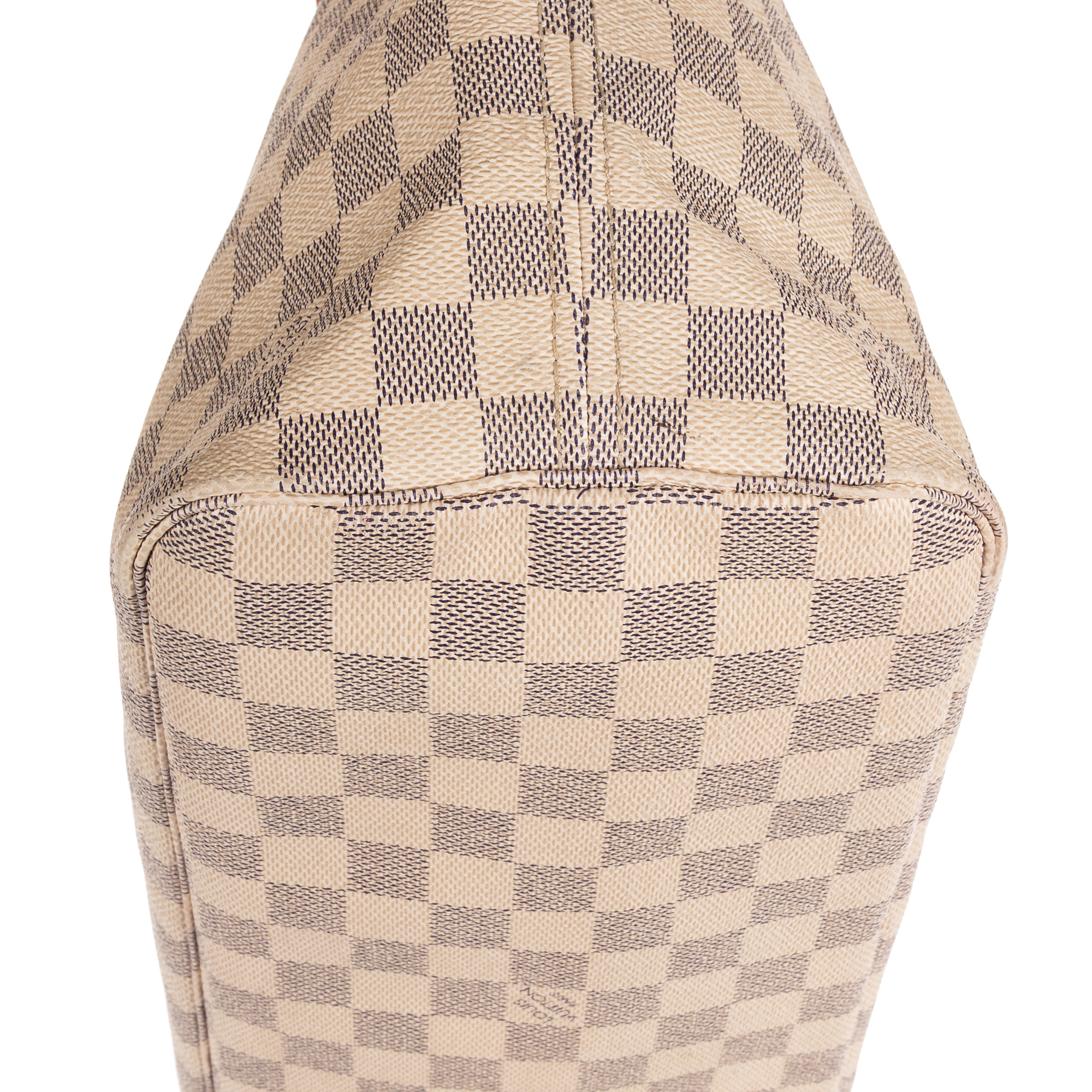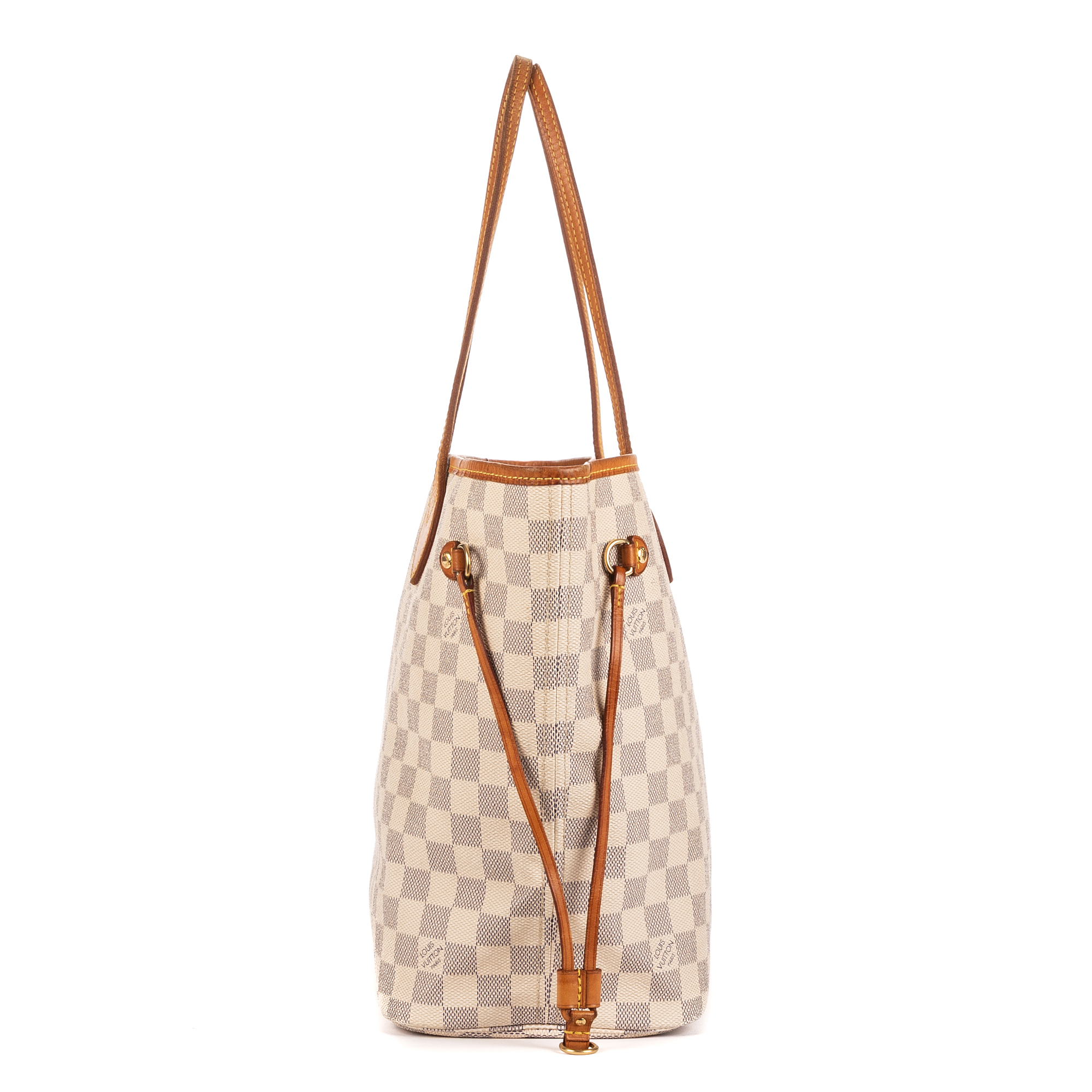 Louis Vuitton Handbag Neverfull MM in White Damier Azur and Golden Brass hardware. The product is in Very Good Condition (AB).