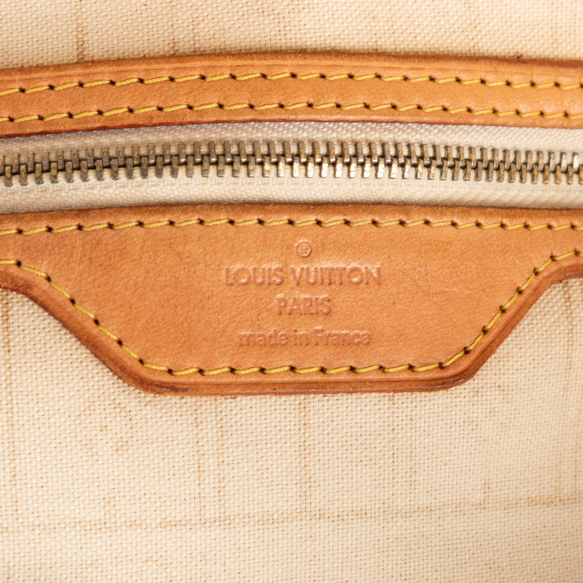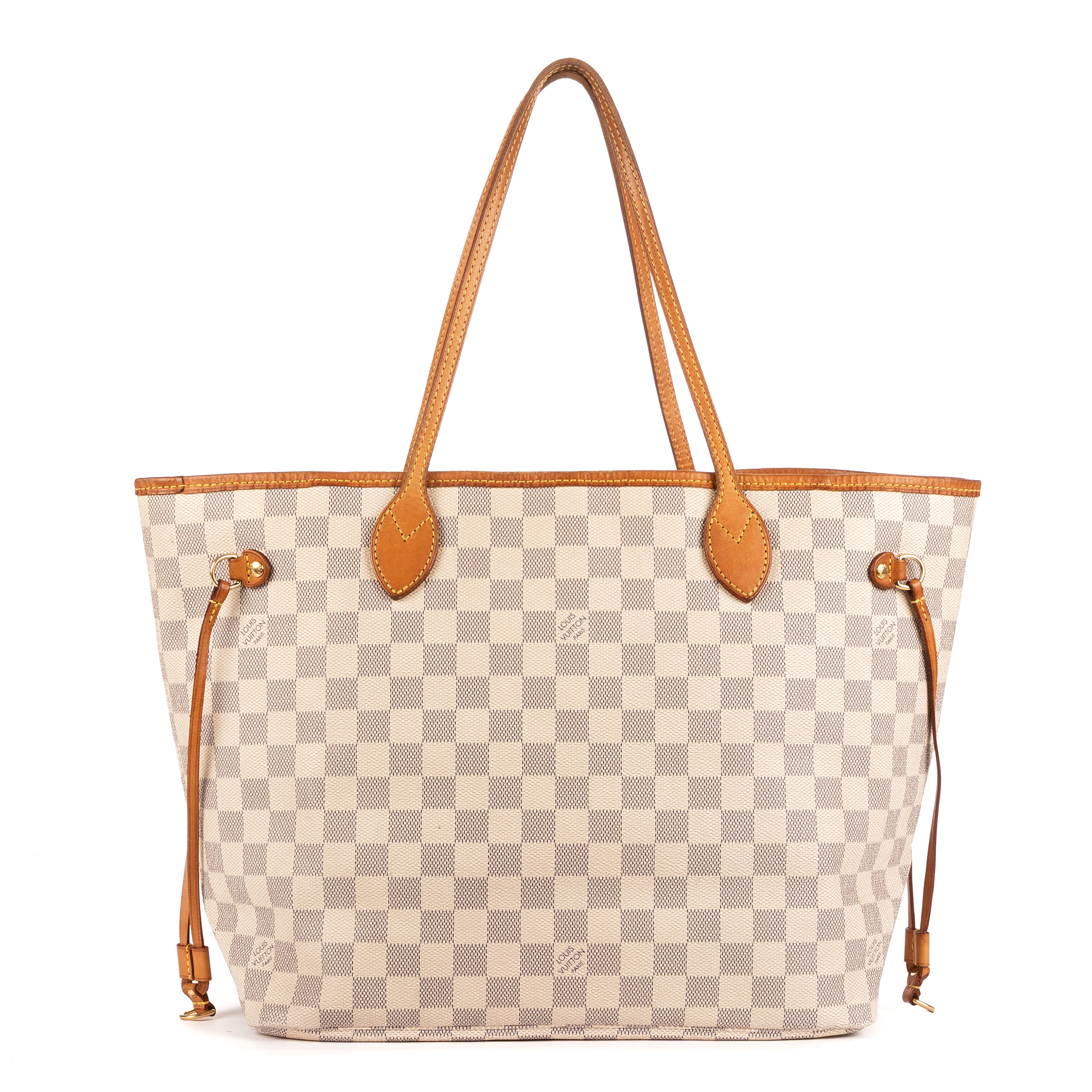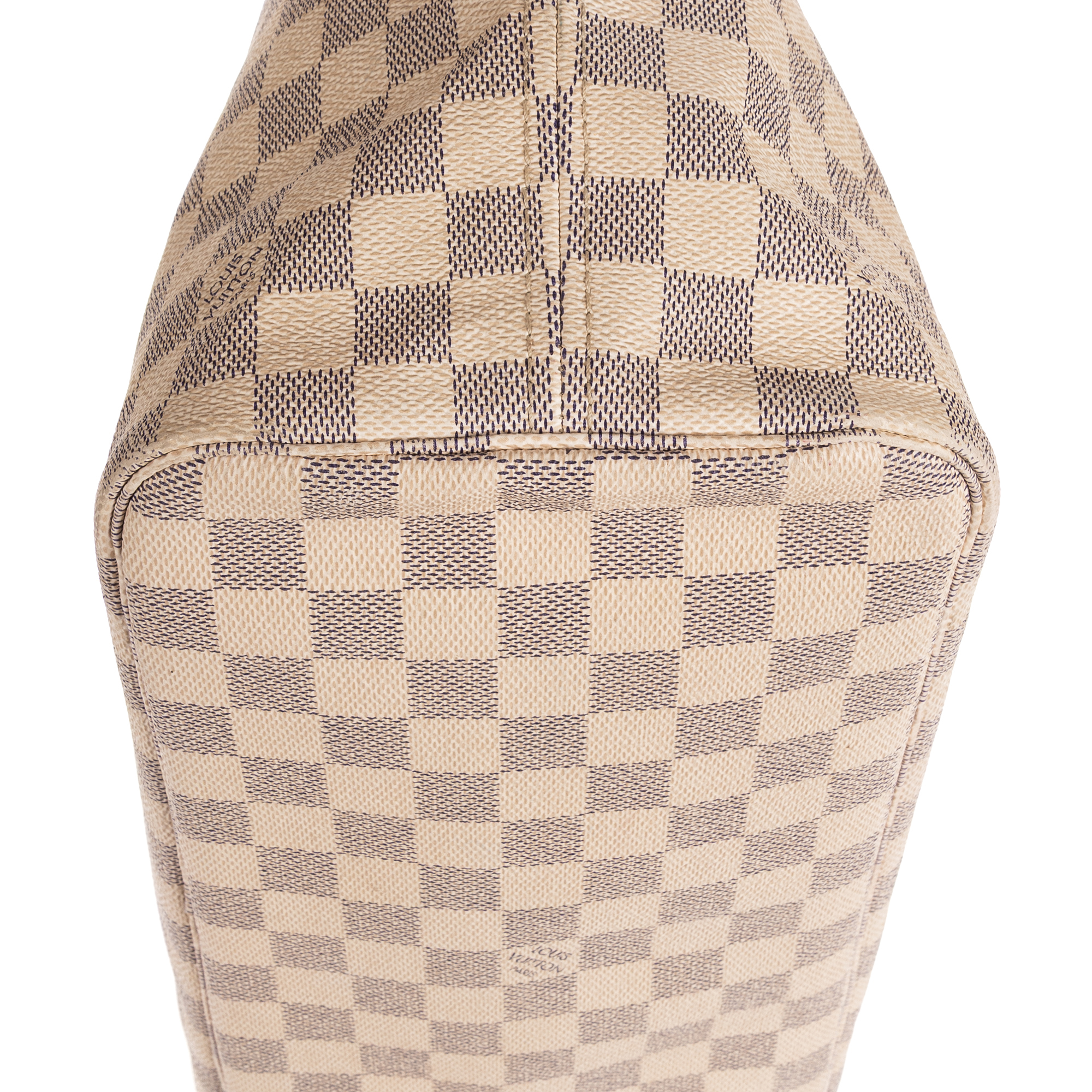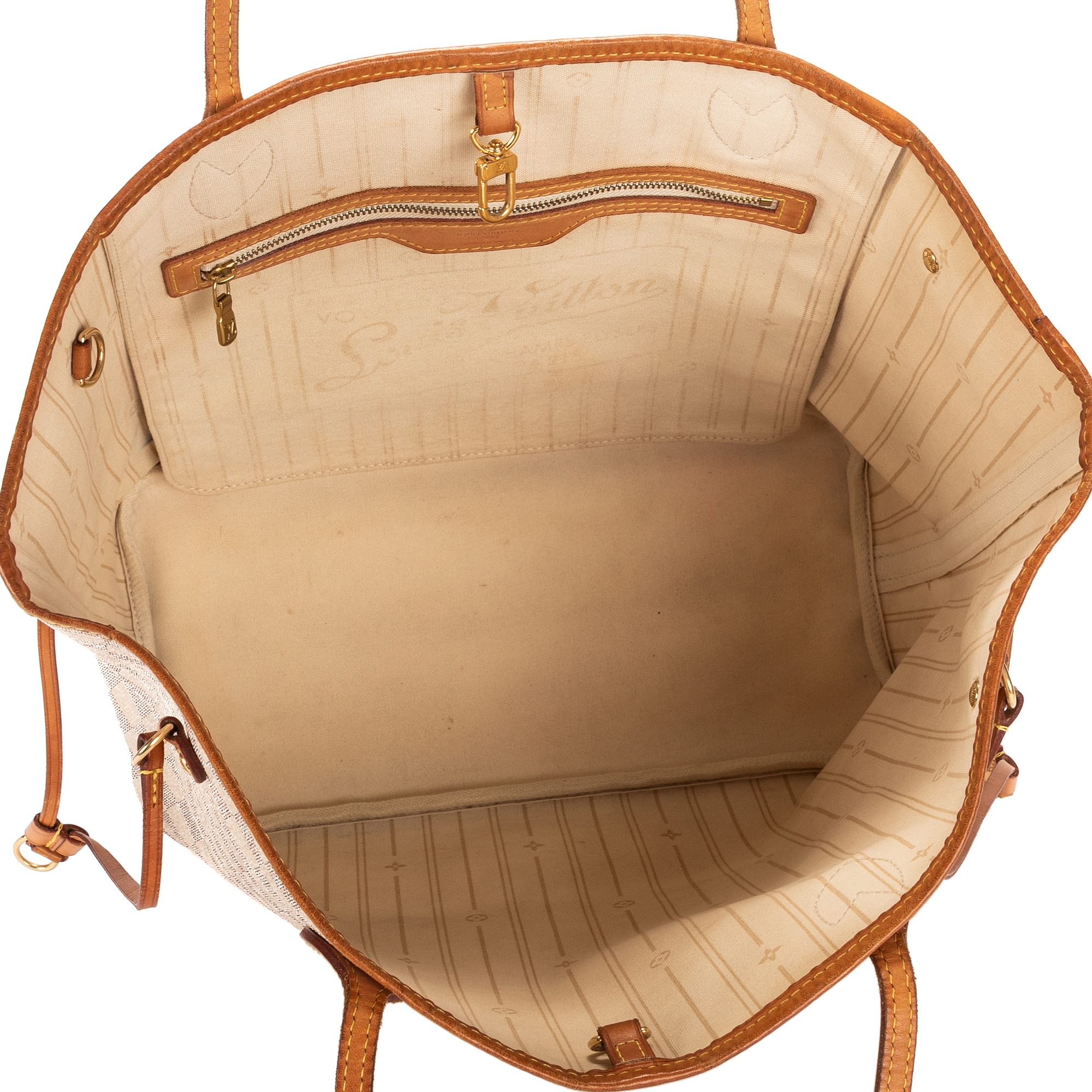 Louis Vuitton Handbag Neverfull MM in White Damier Azur and Golden Brass hardware. The product is in Very Good Condition (AB).