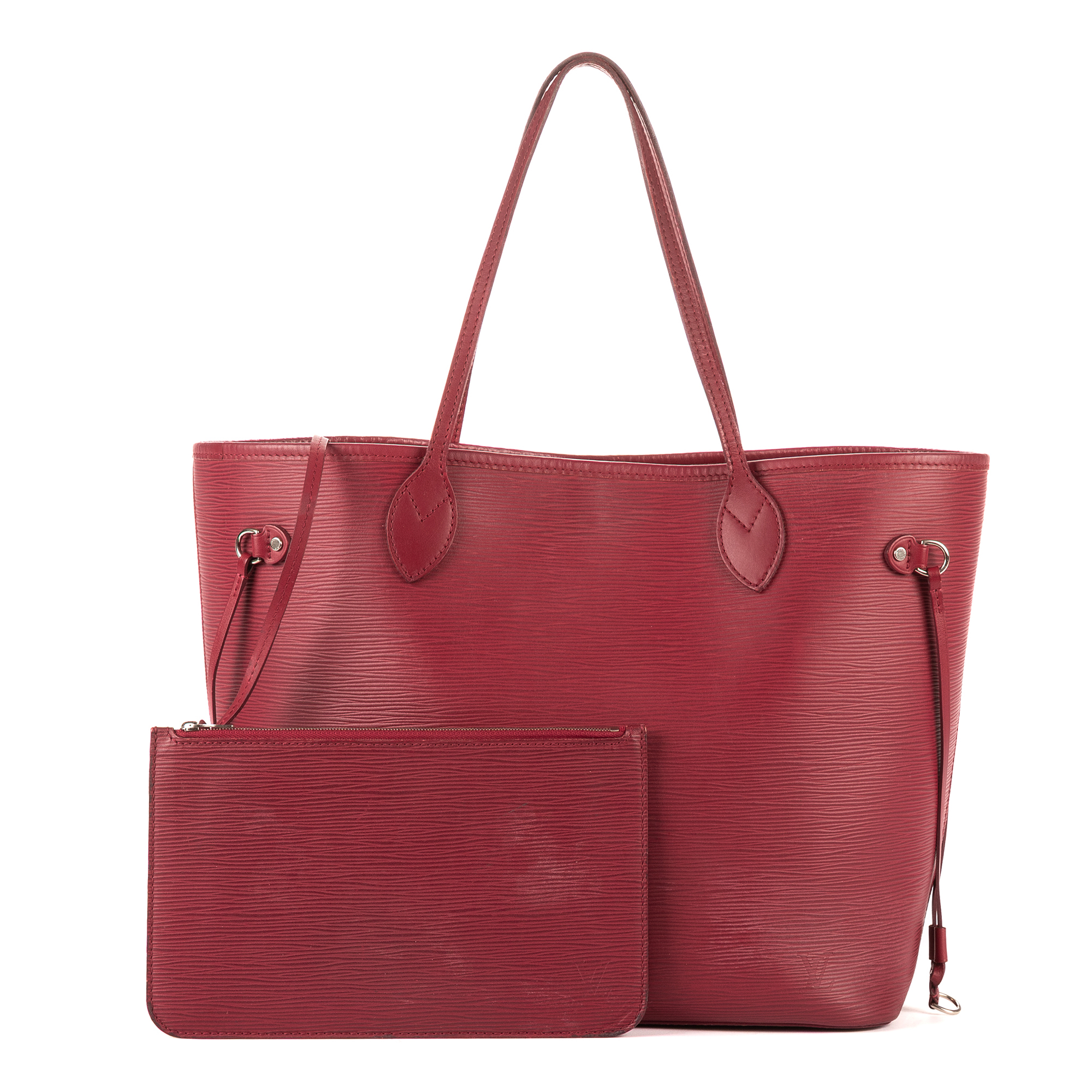 Louis Vuitton Shoulder Bag Neverfull in Red Fuchsia Epi and Silver Brass hardware. The product is in Perfect Condition (AA).