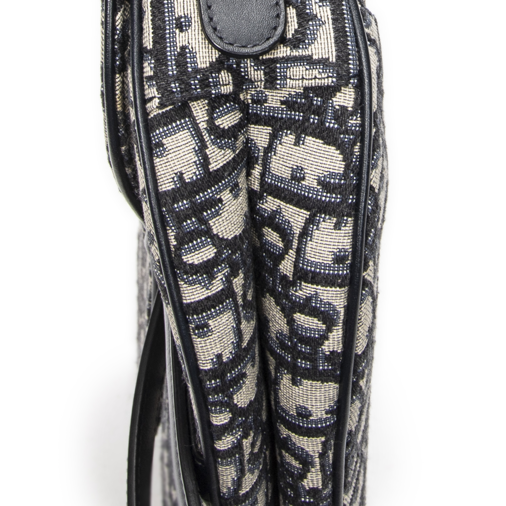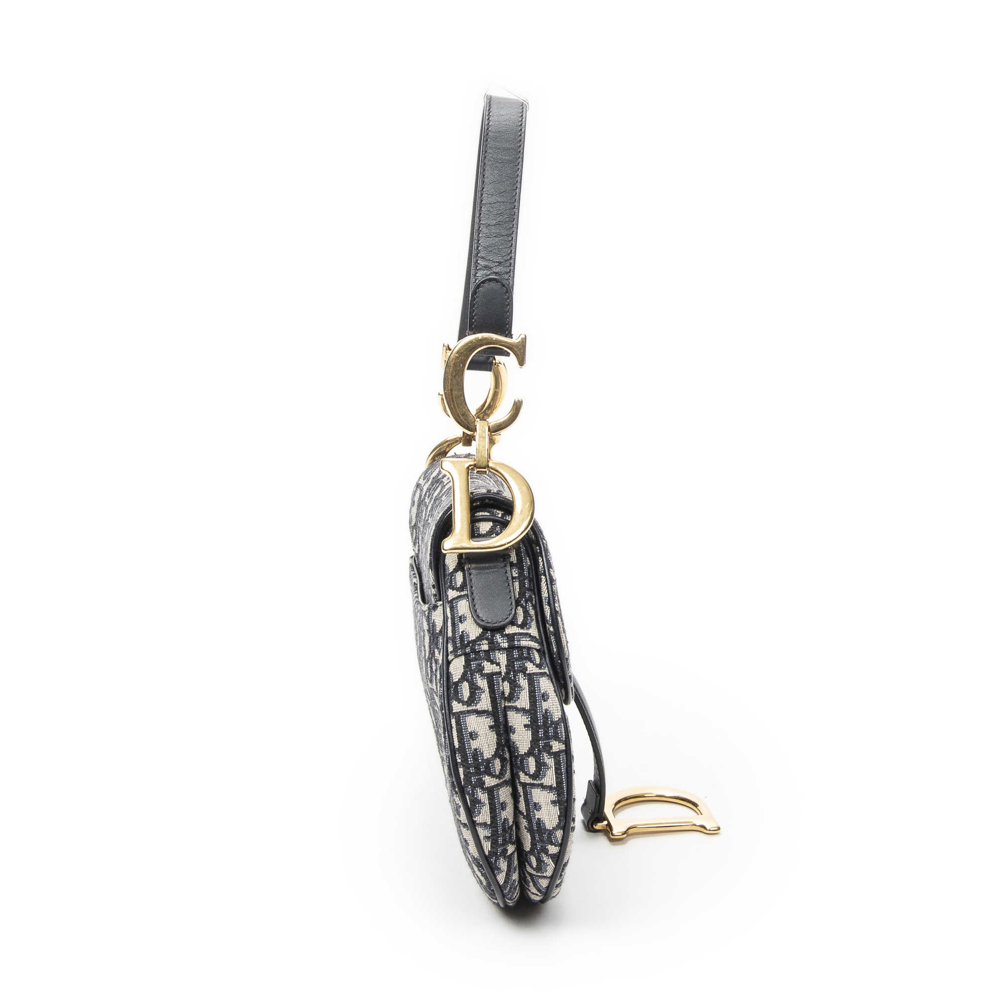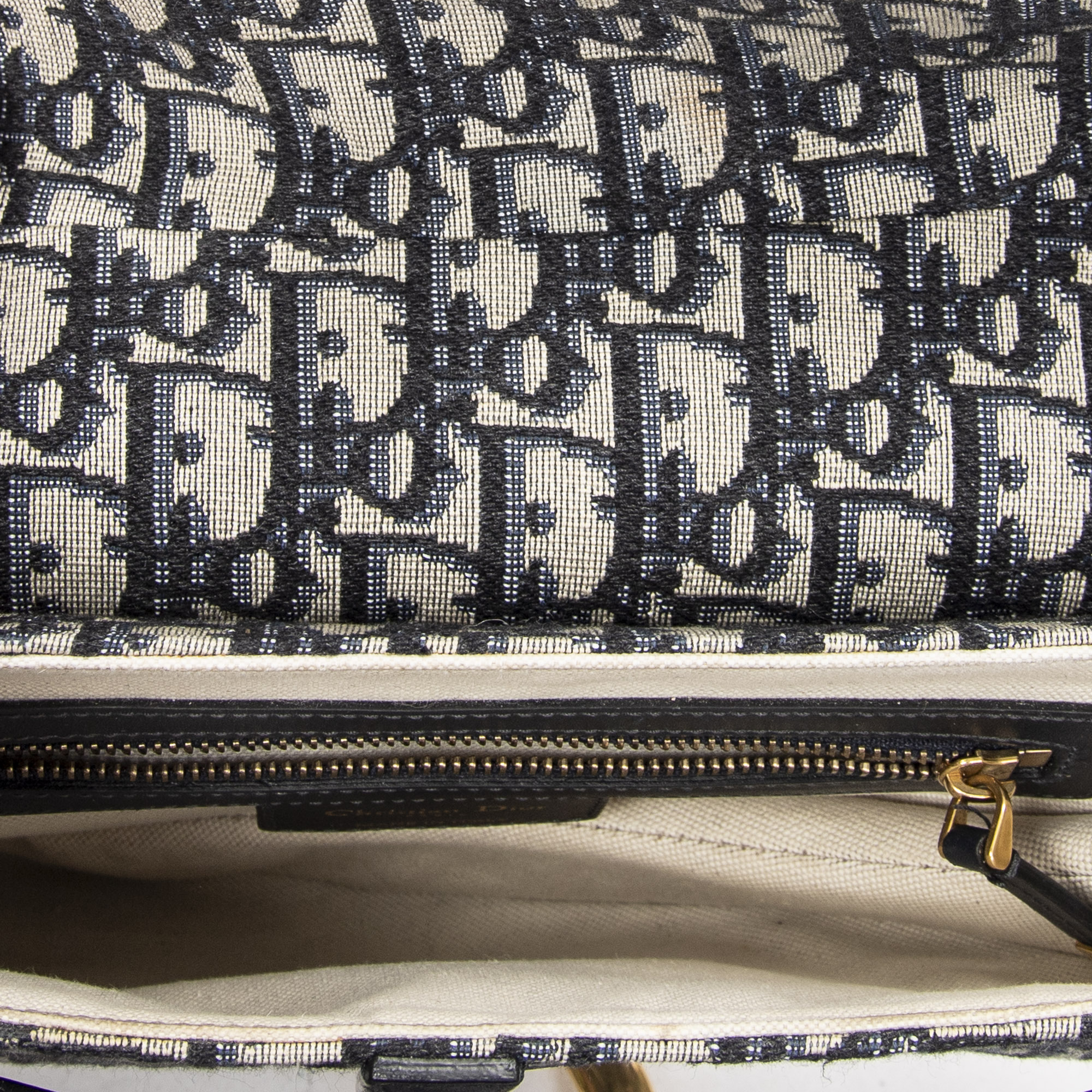 Dior Shoulder Bag New Saddle Bag in Navy/Beige Oblique Jacquard Canvas and Gold hardware. The product is in Excellent Condition (A).