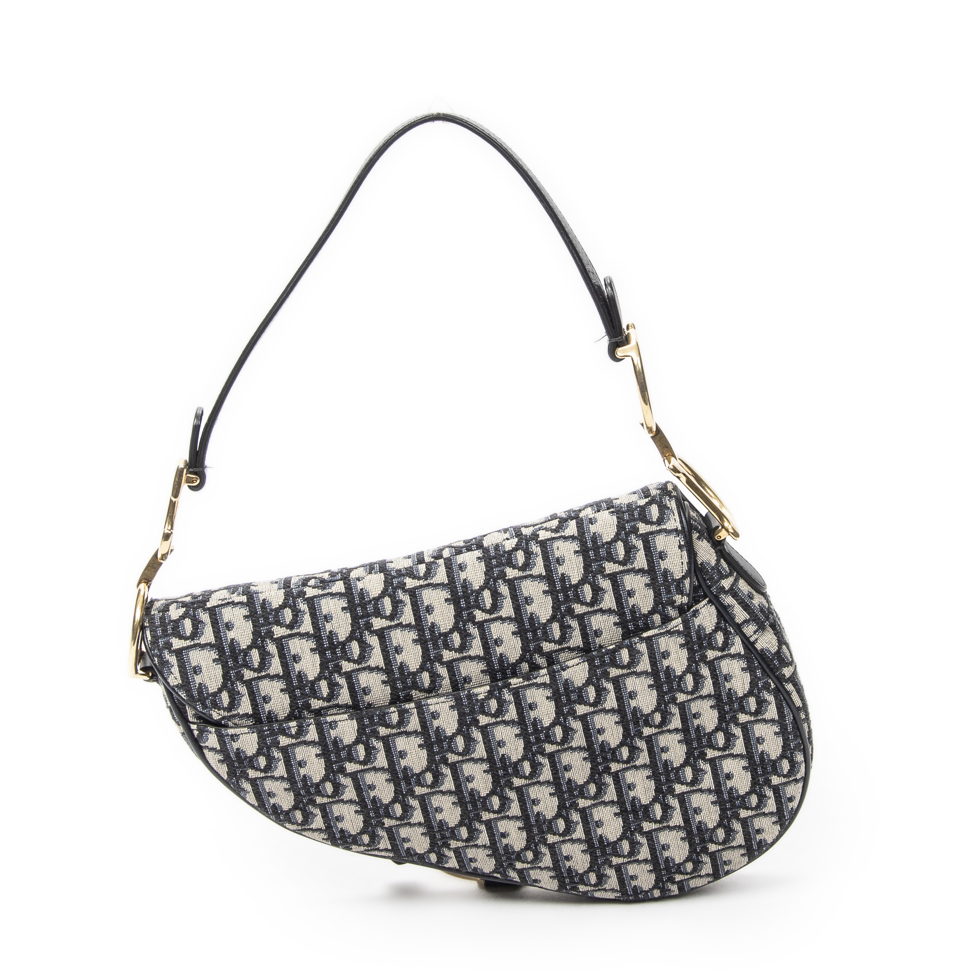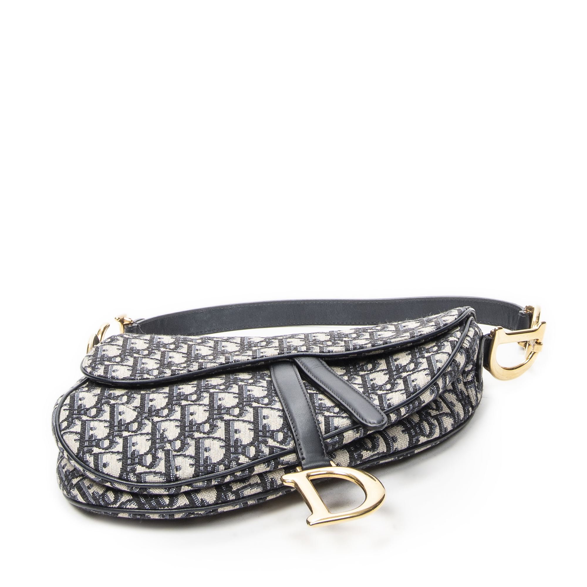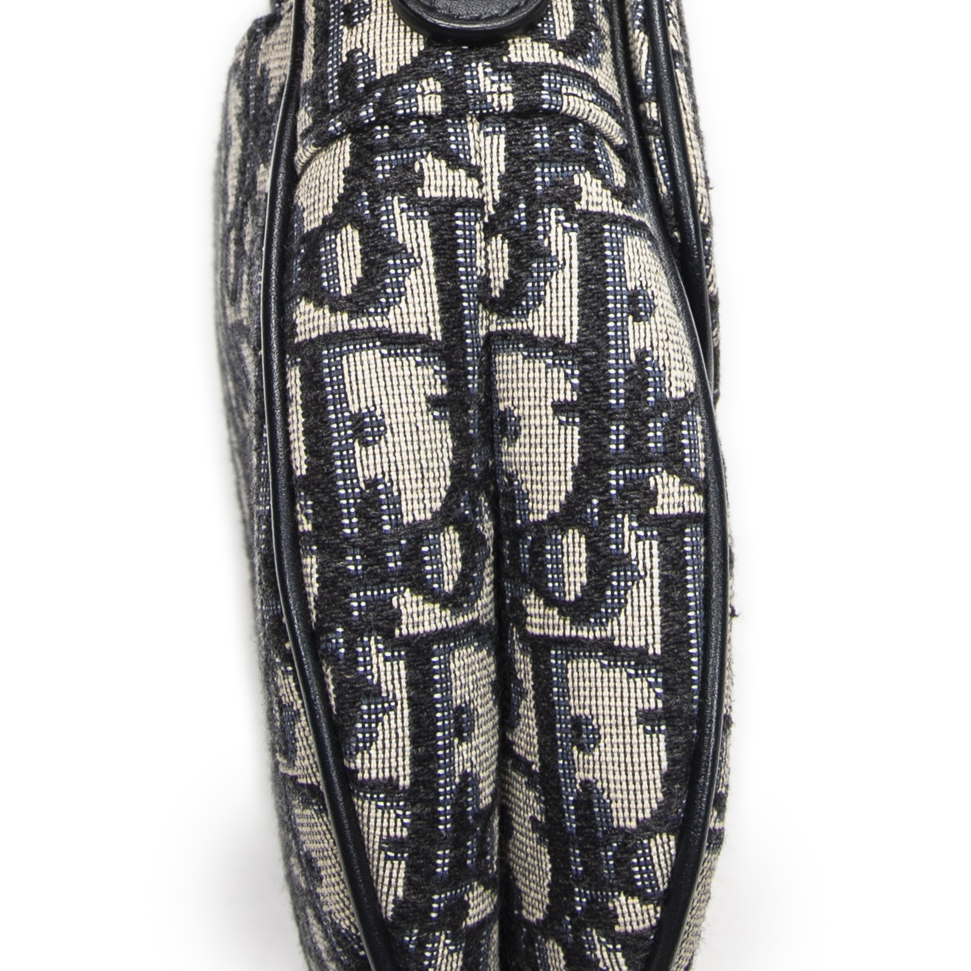 Dior Shoulder Bag New Saddle Bag in Navy/Beige Oblique Jacquard Canvas and Gold hardware. The product is in Excellent Condition (A).