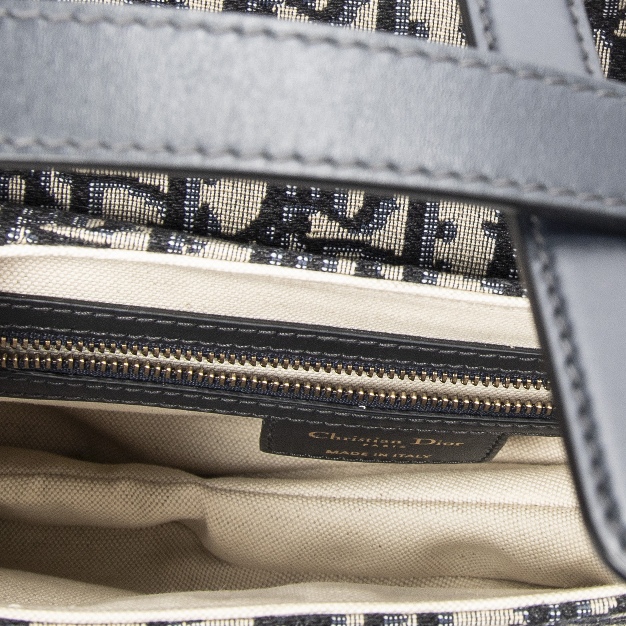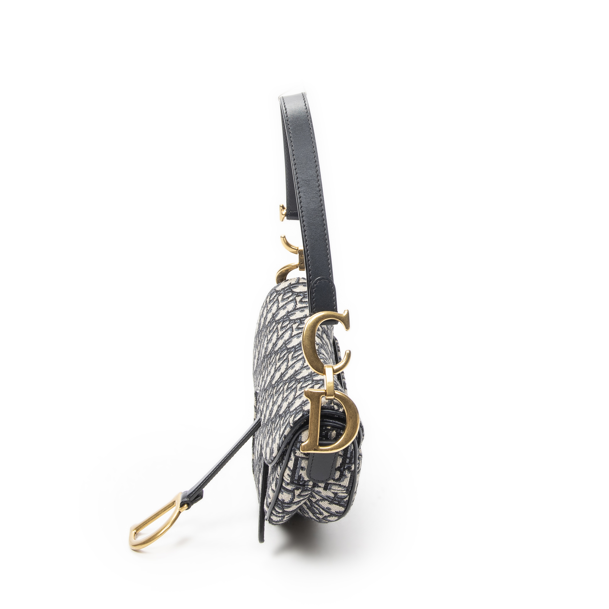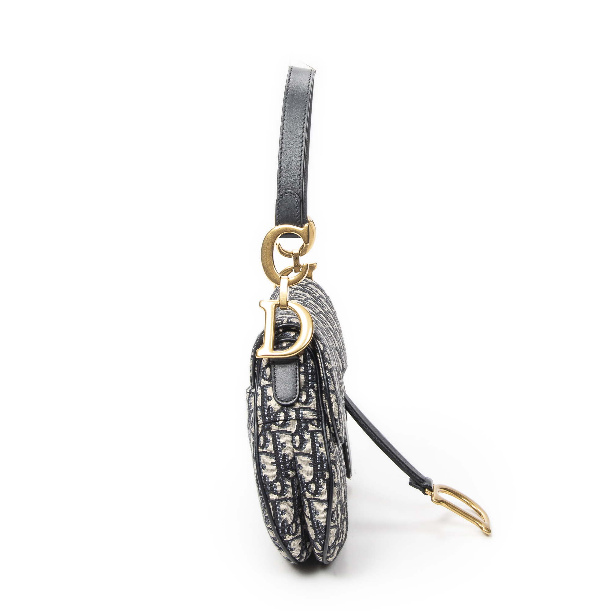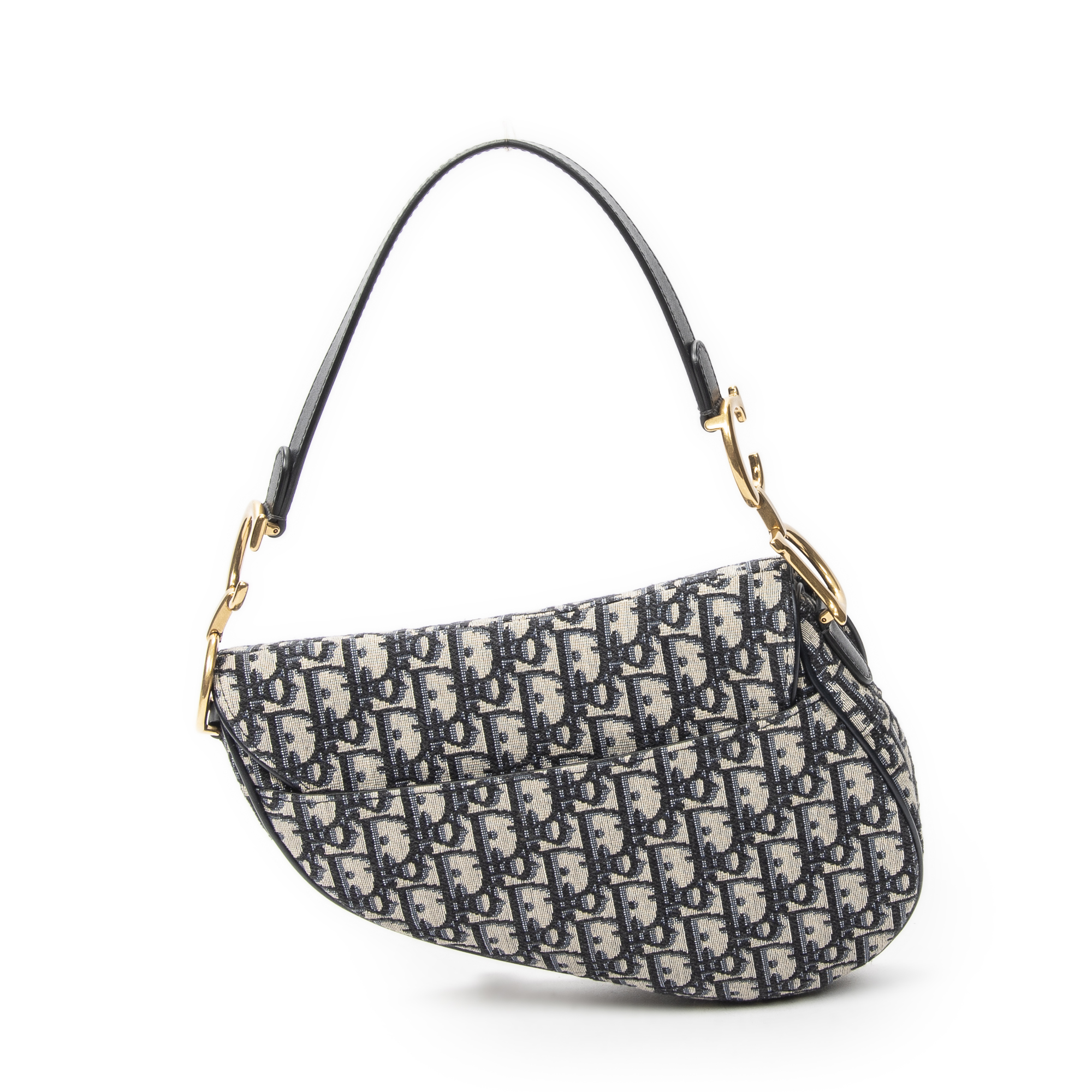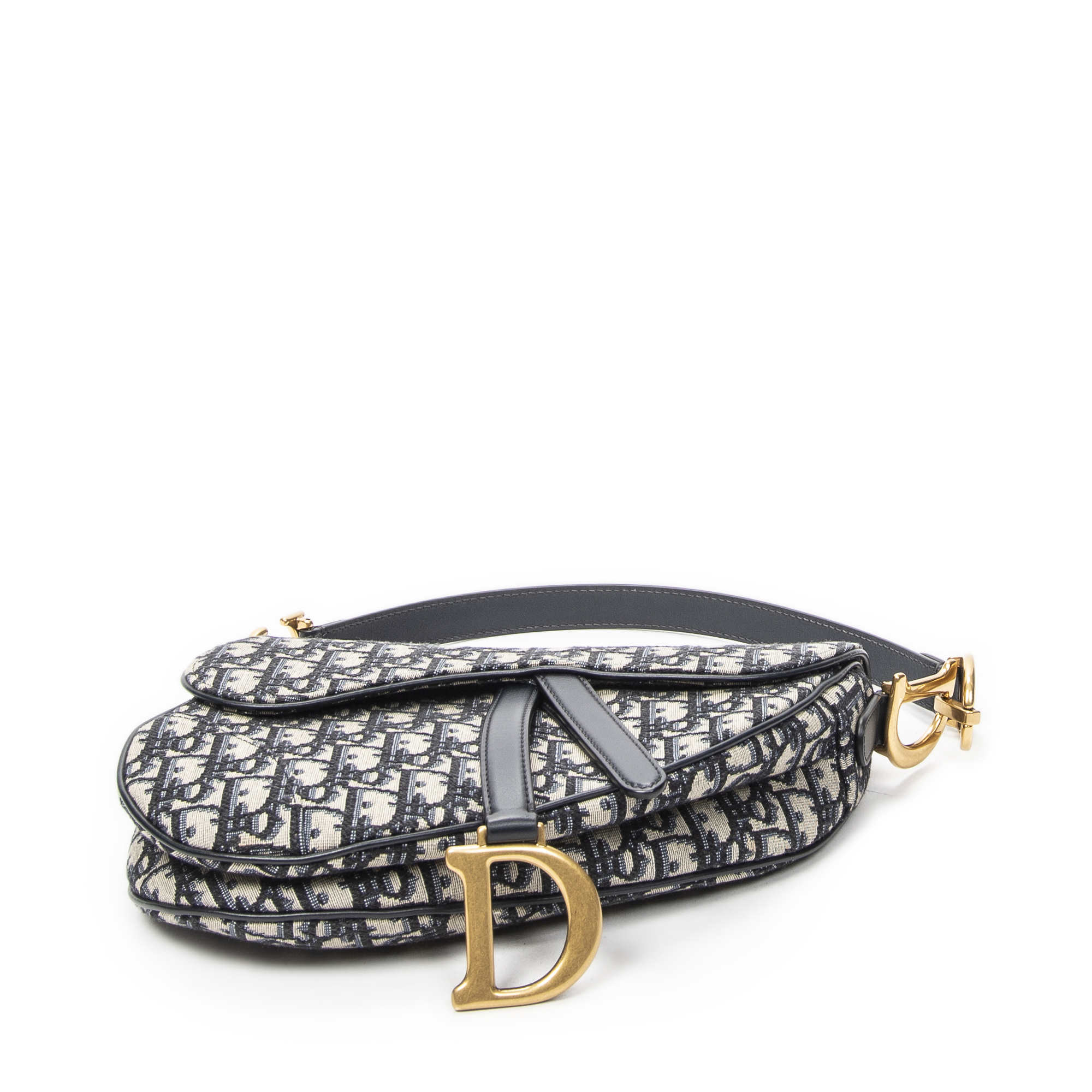 Dior Shoulder Bag New Saddle Bag in Navy/Beige Oblique Jacquard Canvas and Gold hardware. The product is in Excellent Condition (A).