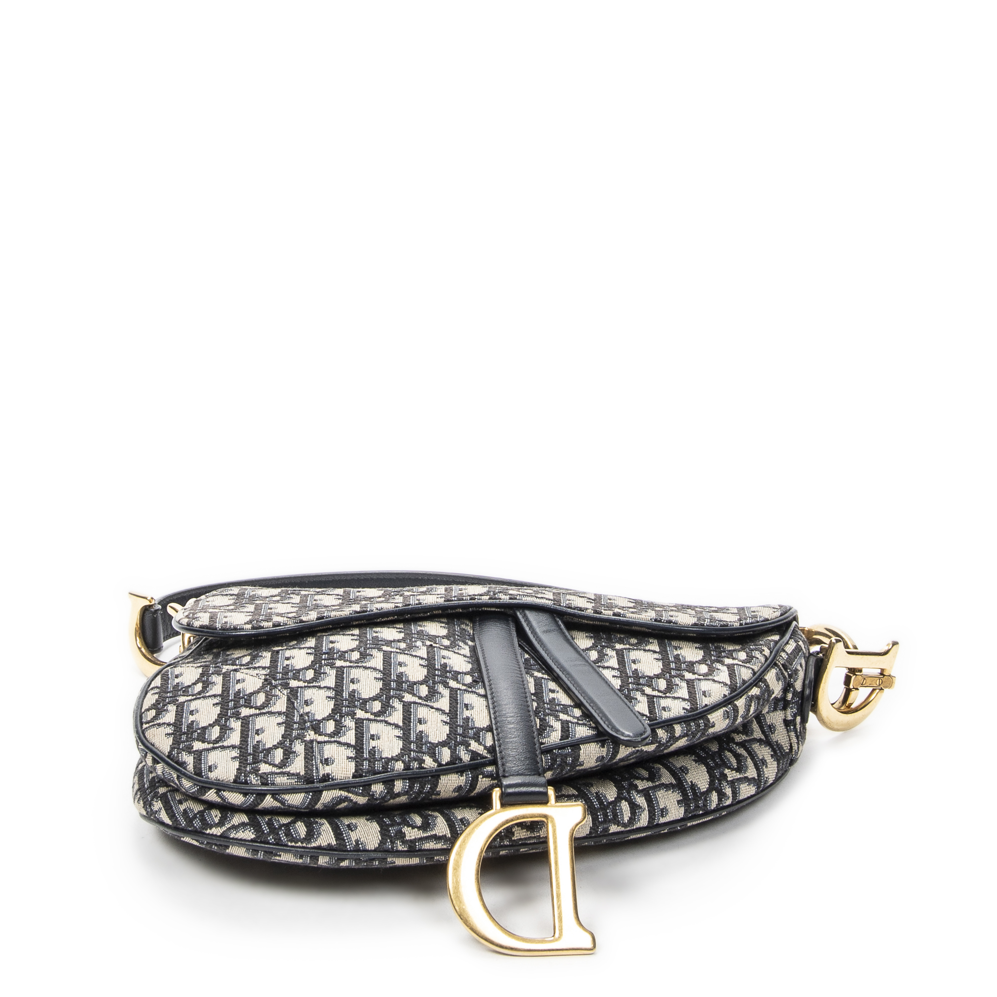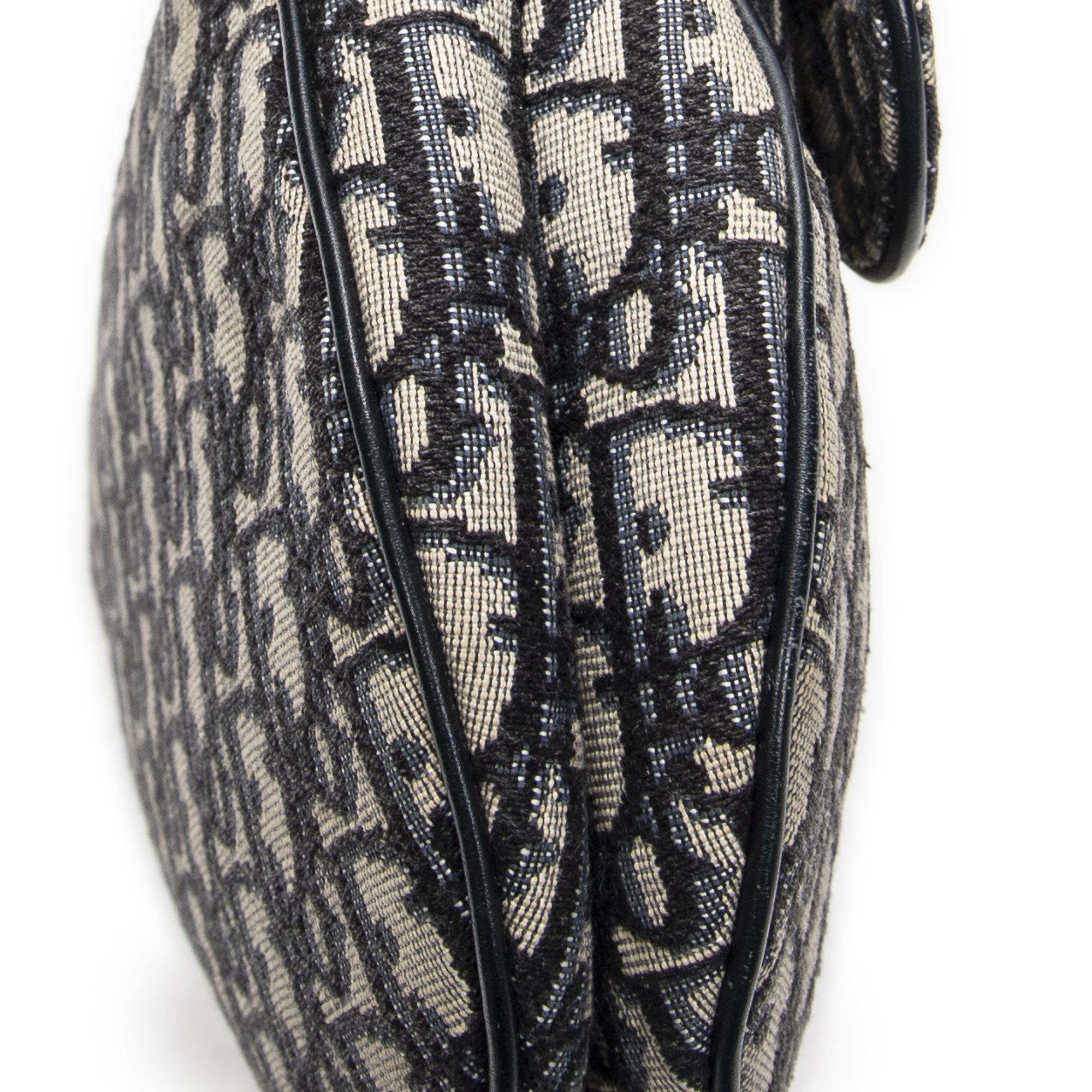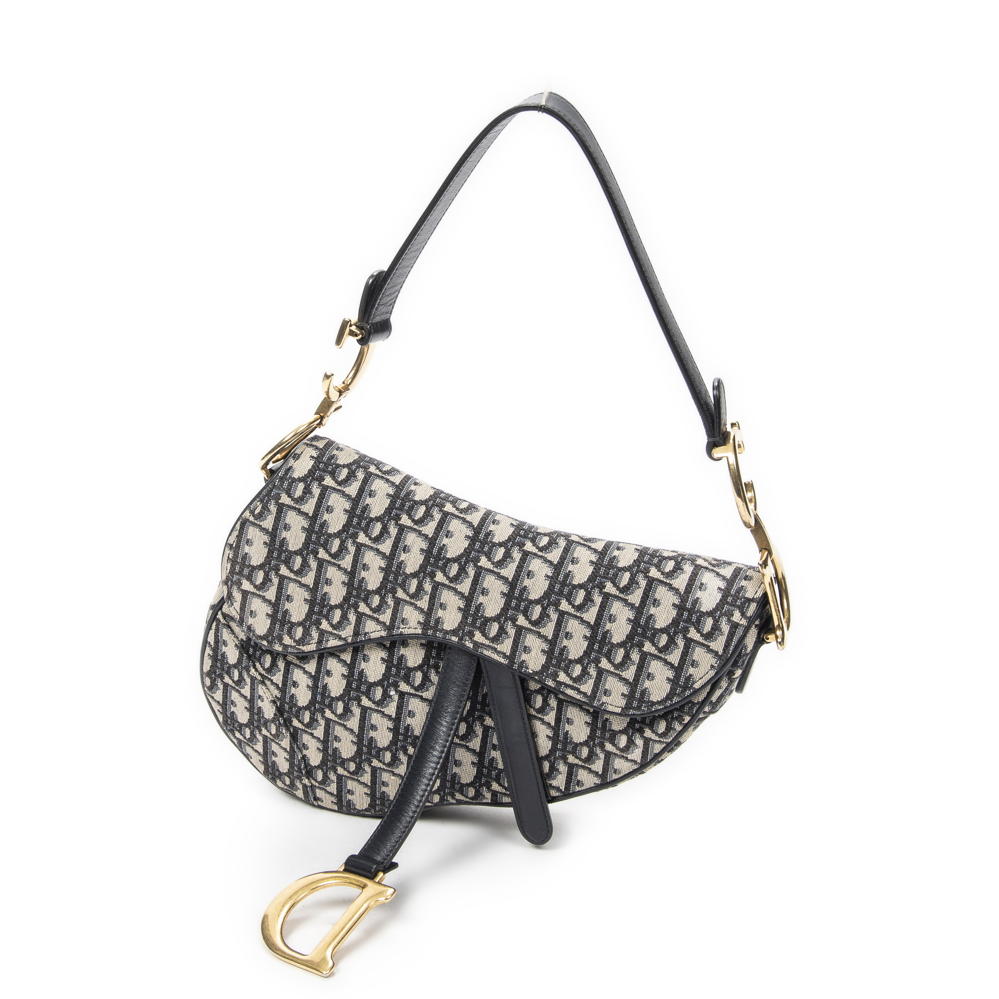 Dior Shoulder Bag New Saddle Bag in Navy/Beige Oblique Jacquard Canvas and Gold hardware. The product is in Excellent Condition (A).