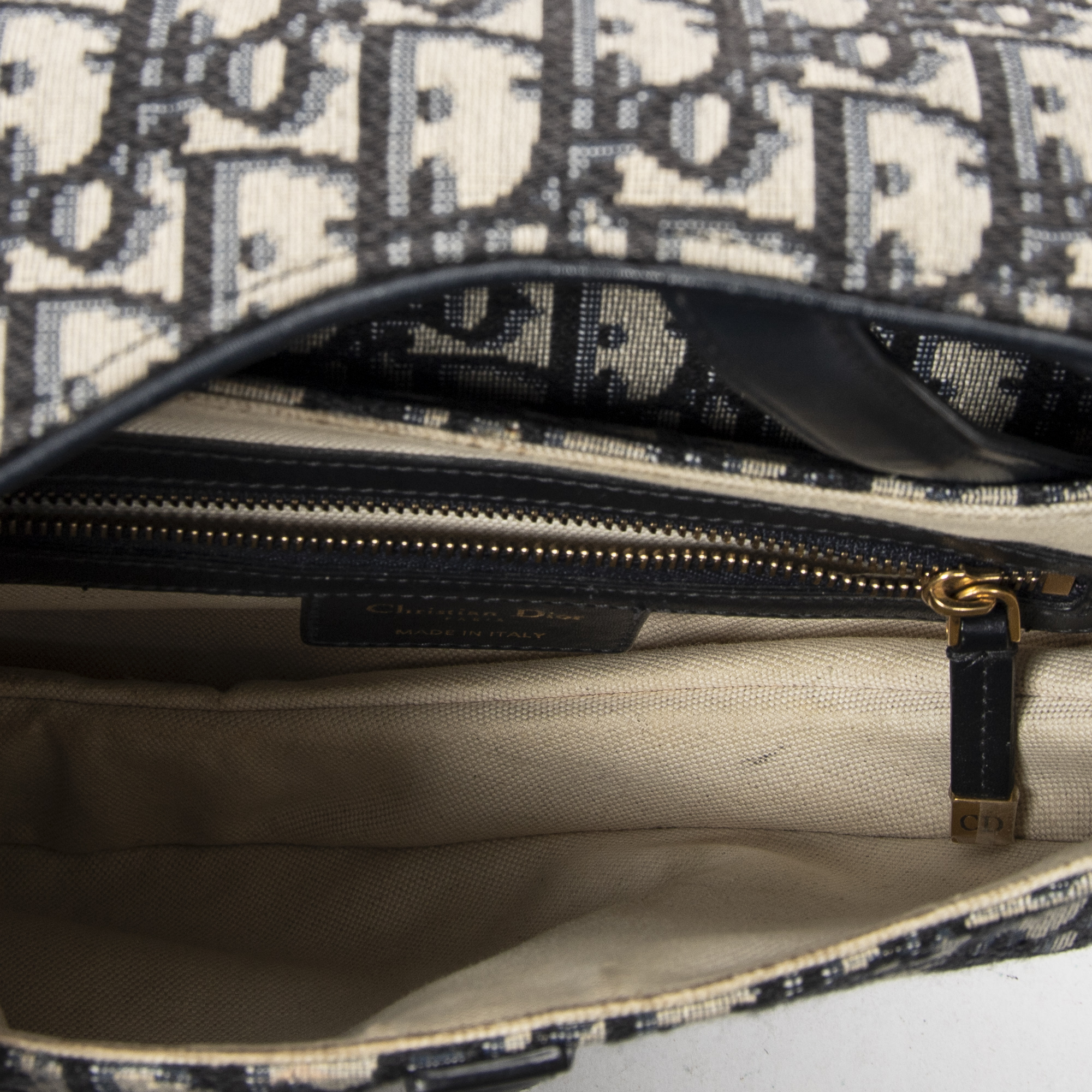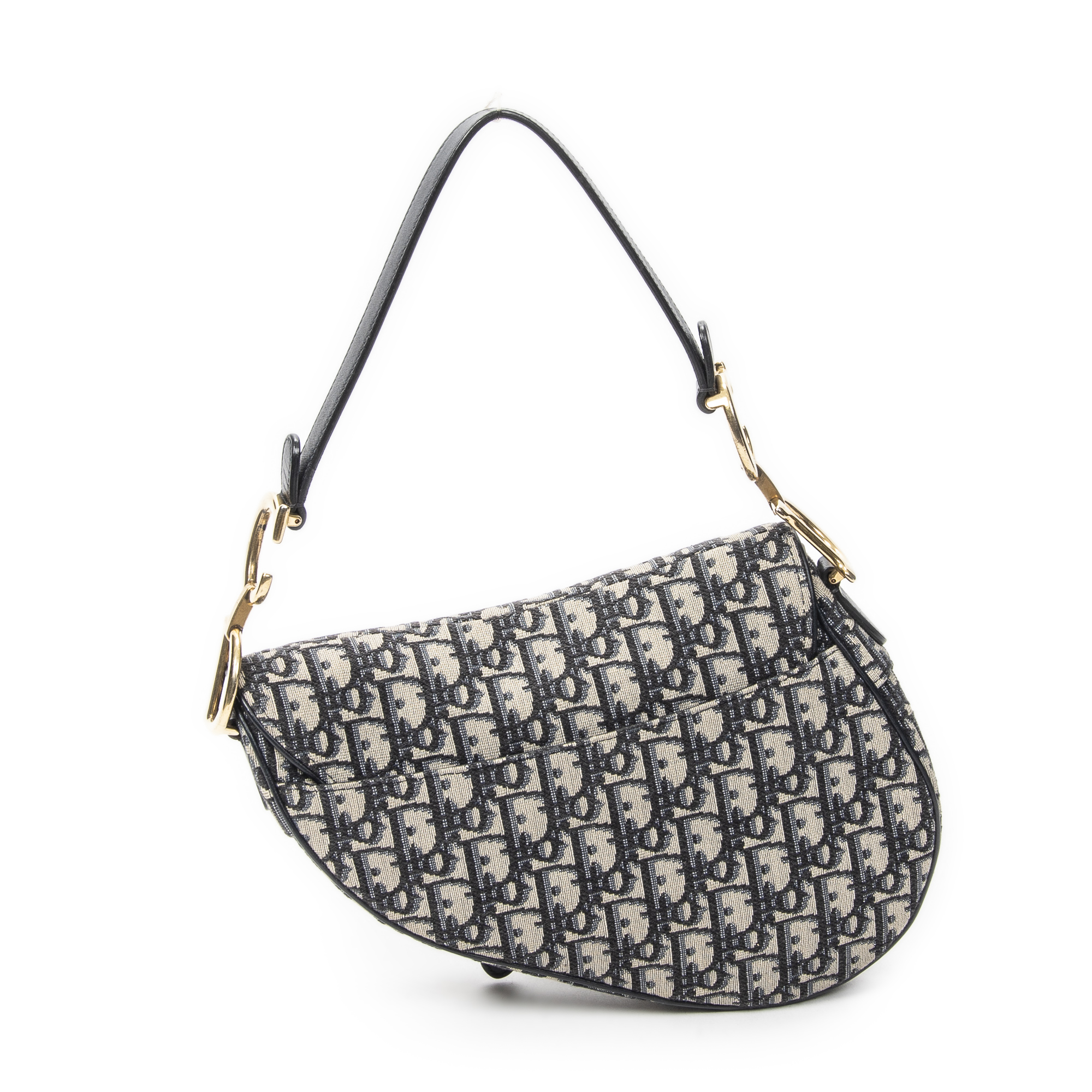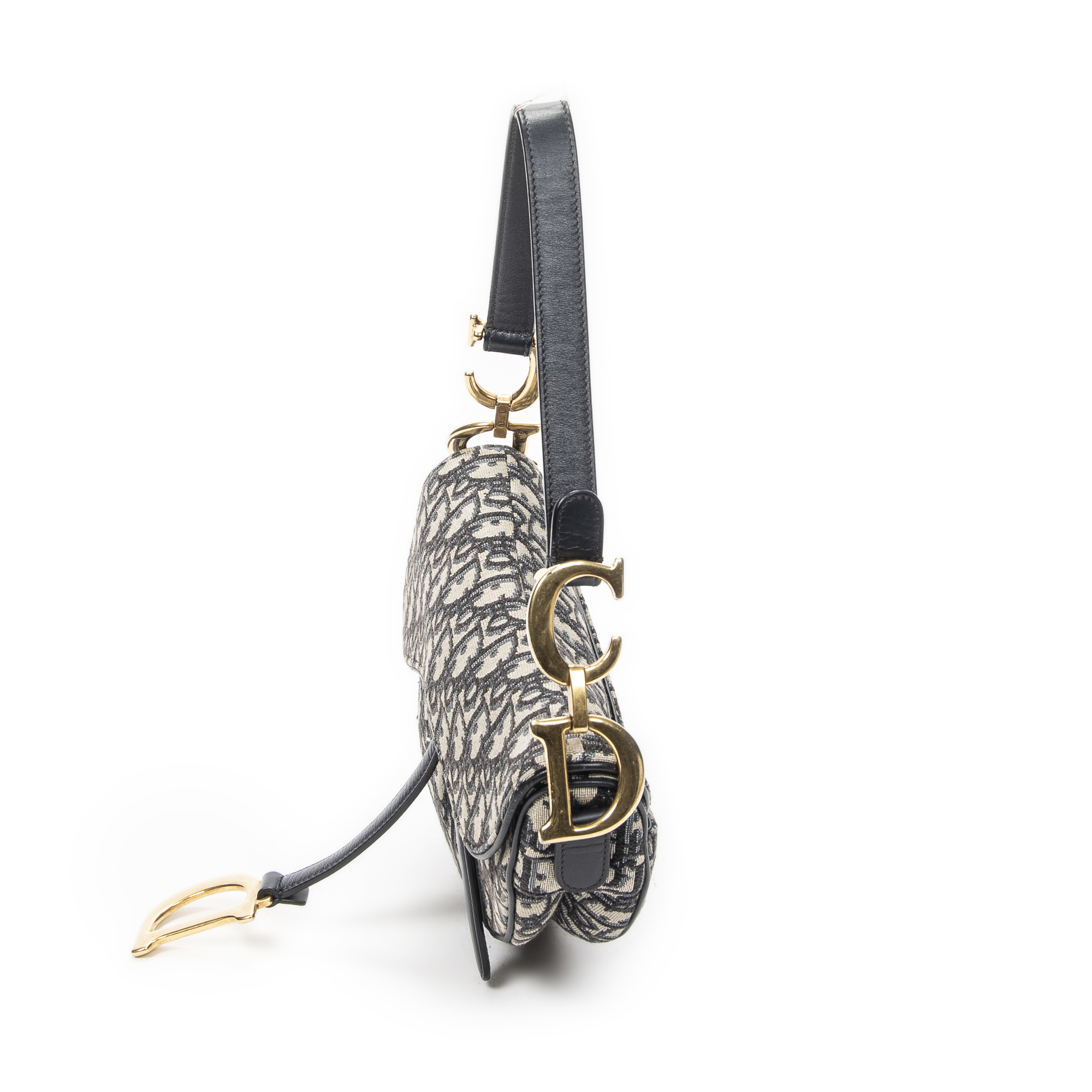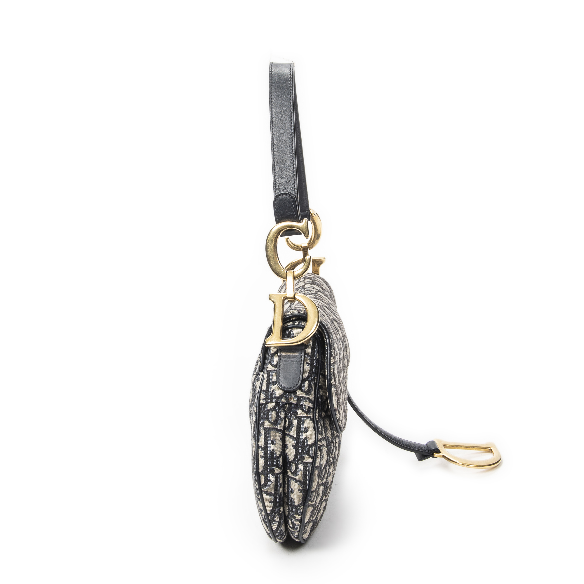 Dior Shoulder Bag New Saddle Bag in Navy/Beige Oblique Jacquard Canvas and Gold hardware. The product is in Excellent Condition (A).