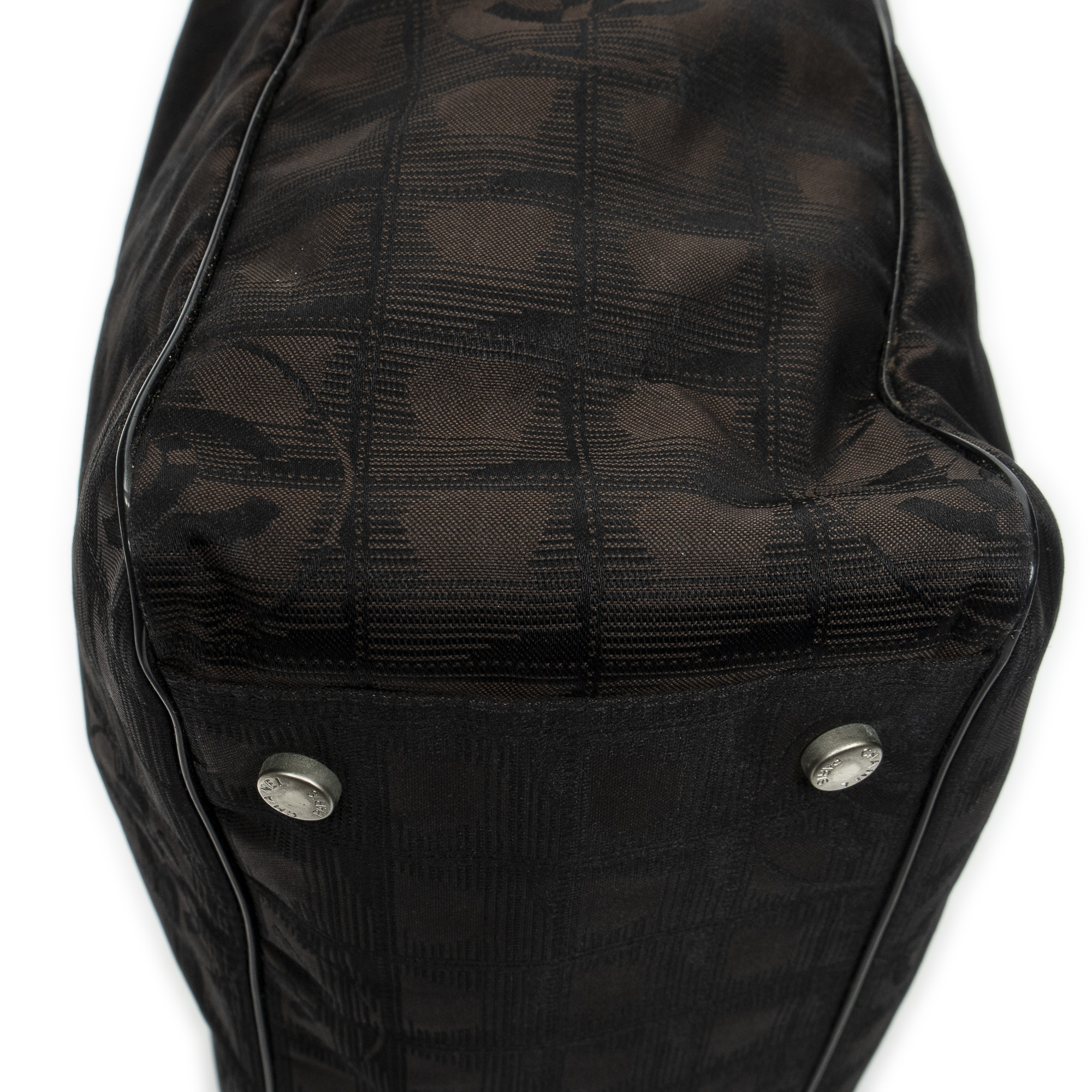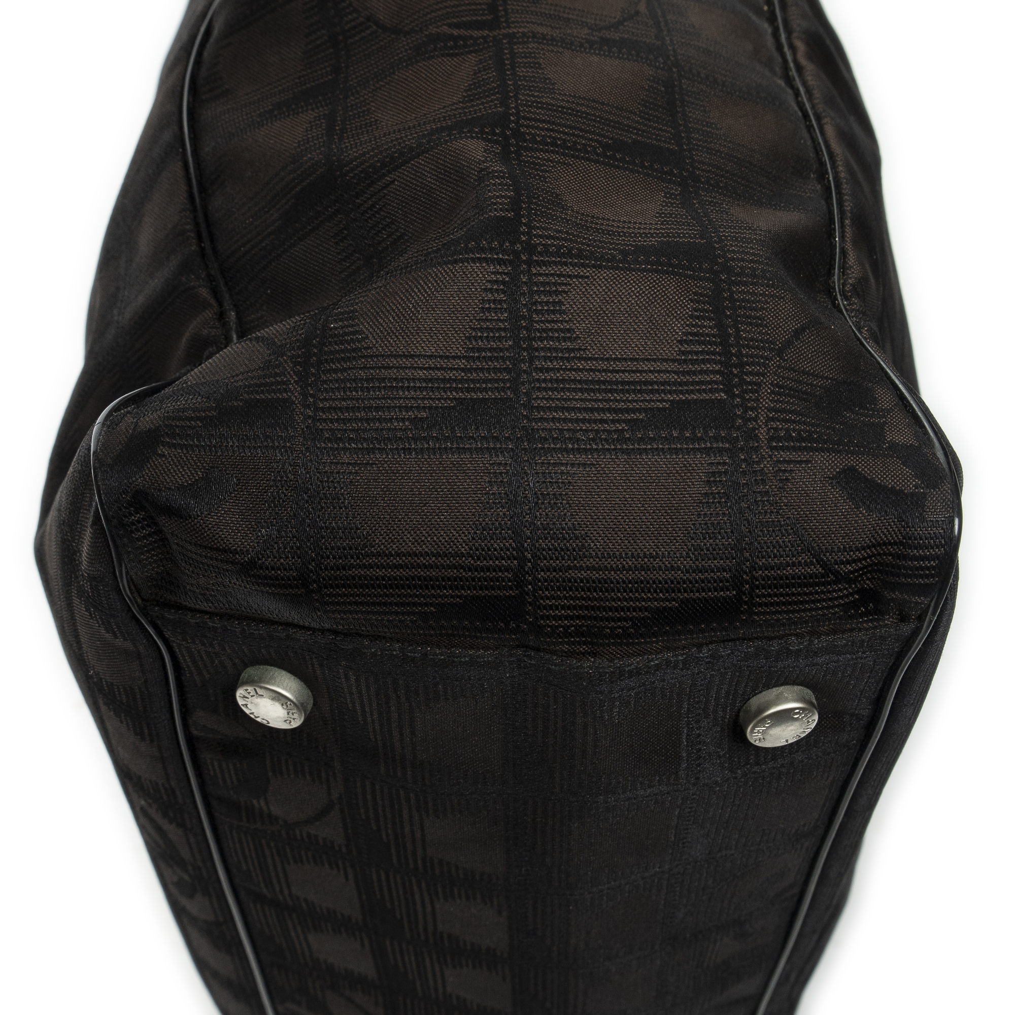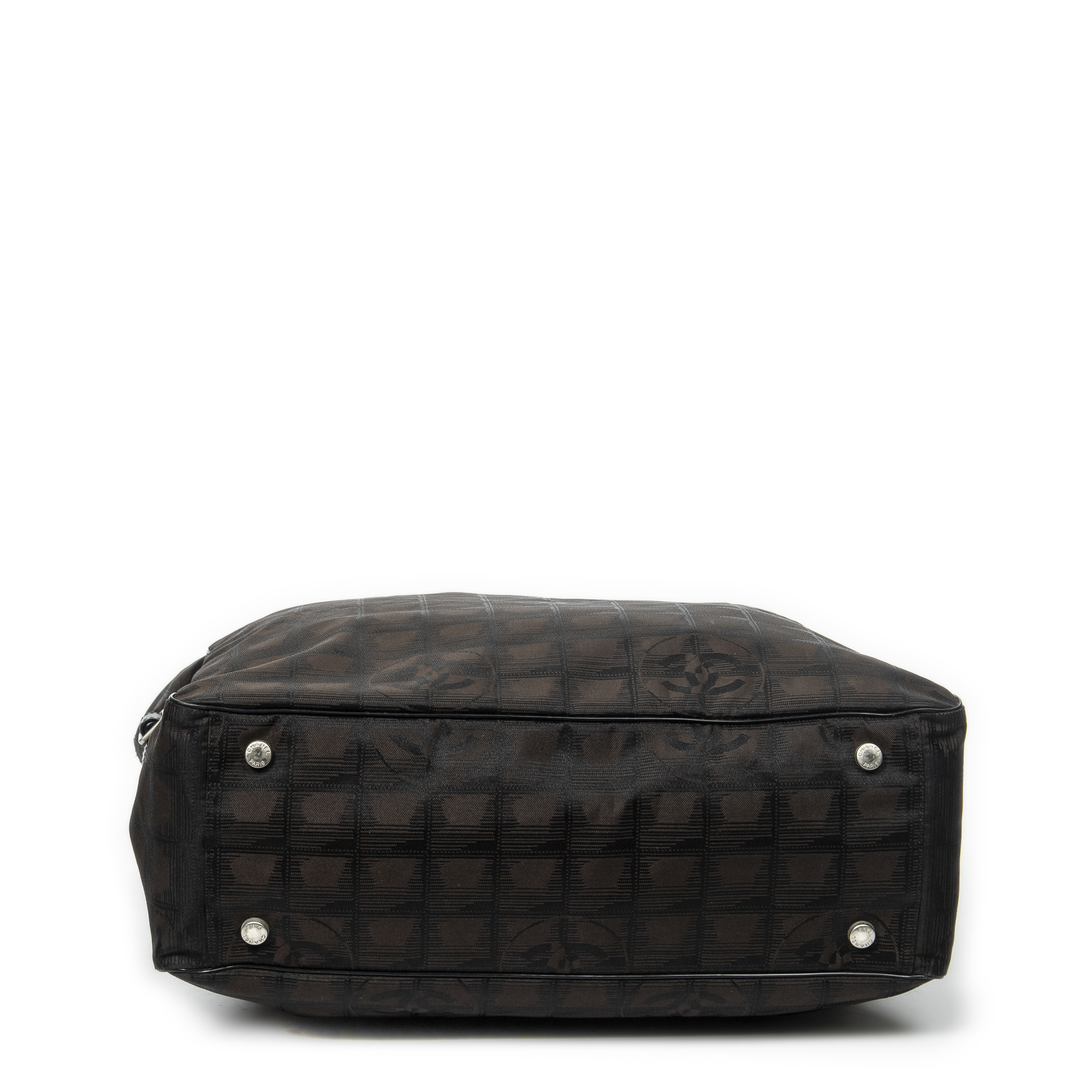 Chanel Shoulder Bag New Travel Line Tote in Brown/Black Travel Line Nylon Canvas and Silver hardware. The product is in Very Good Condition (AB).
