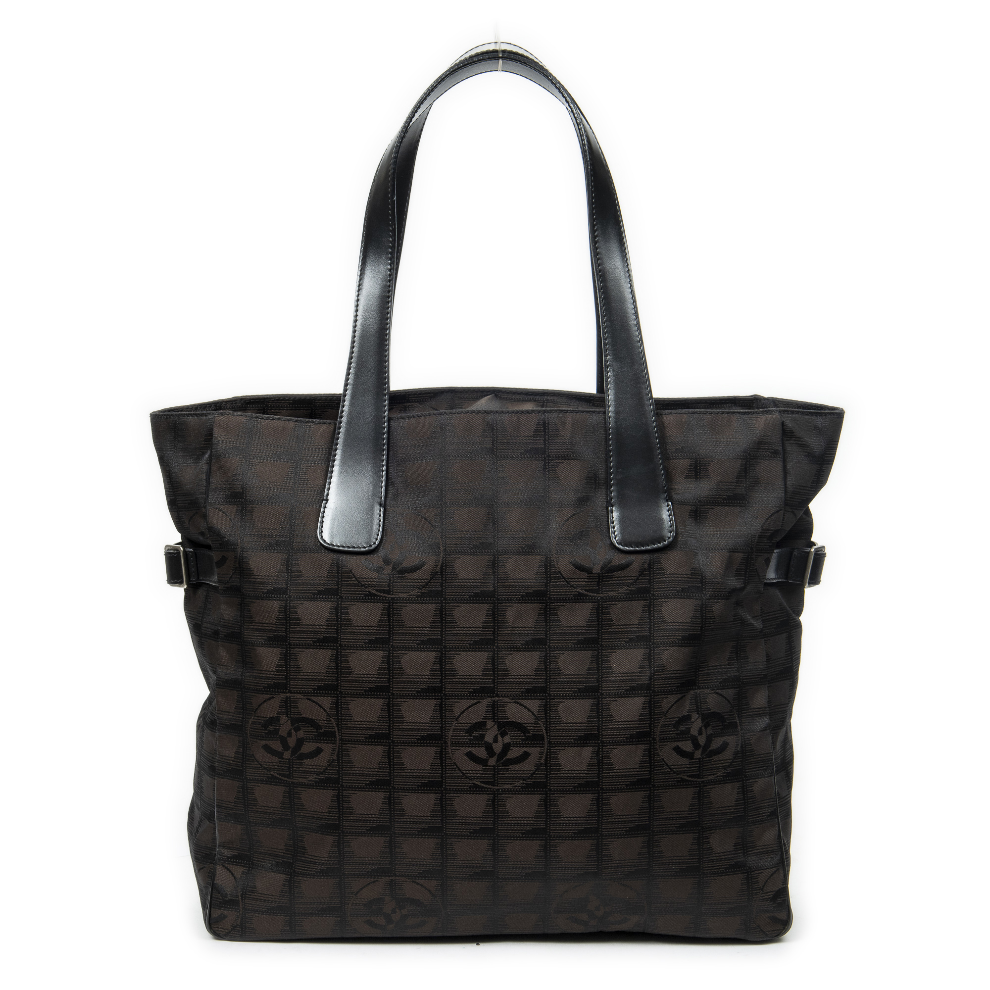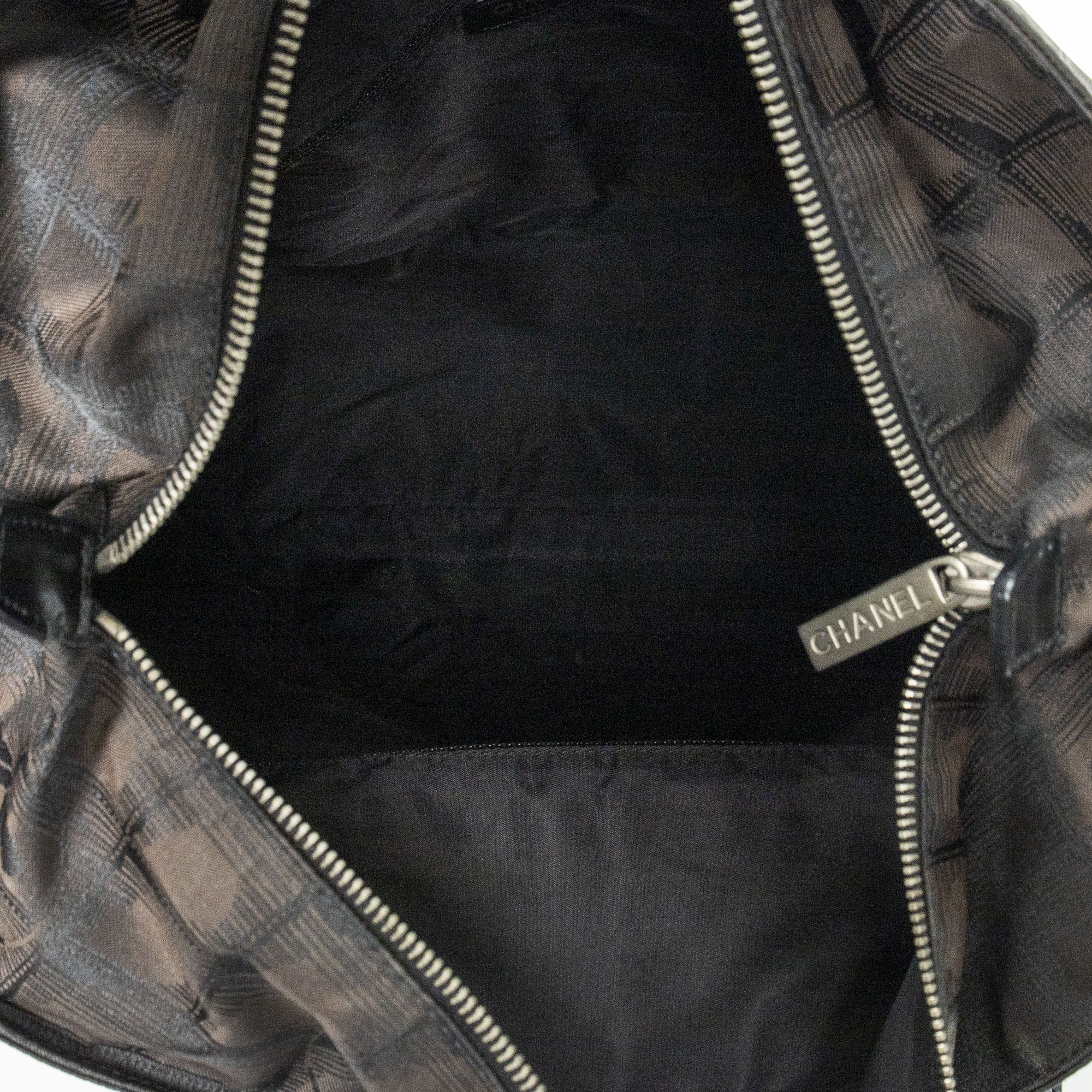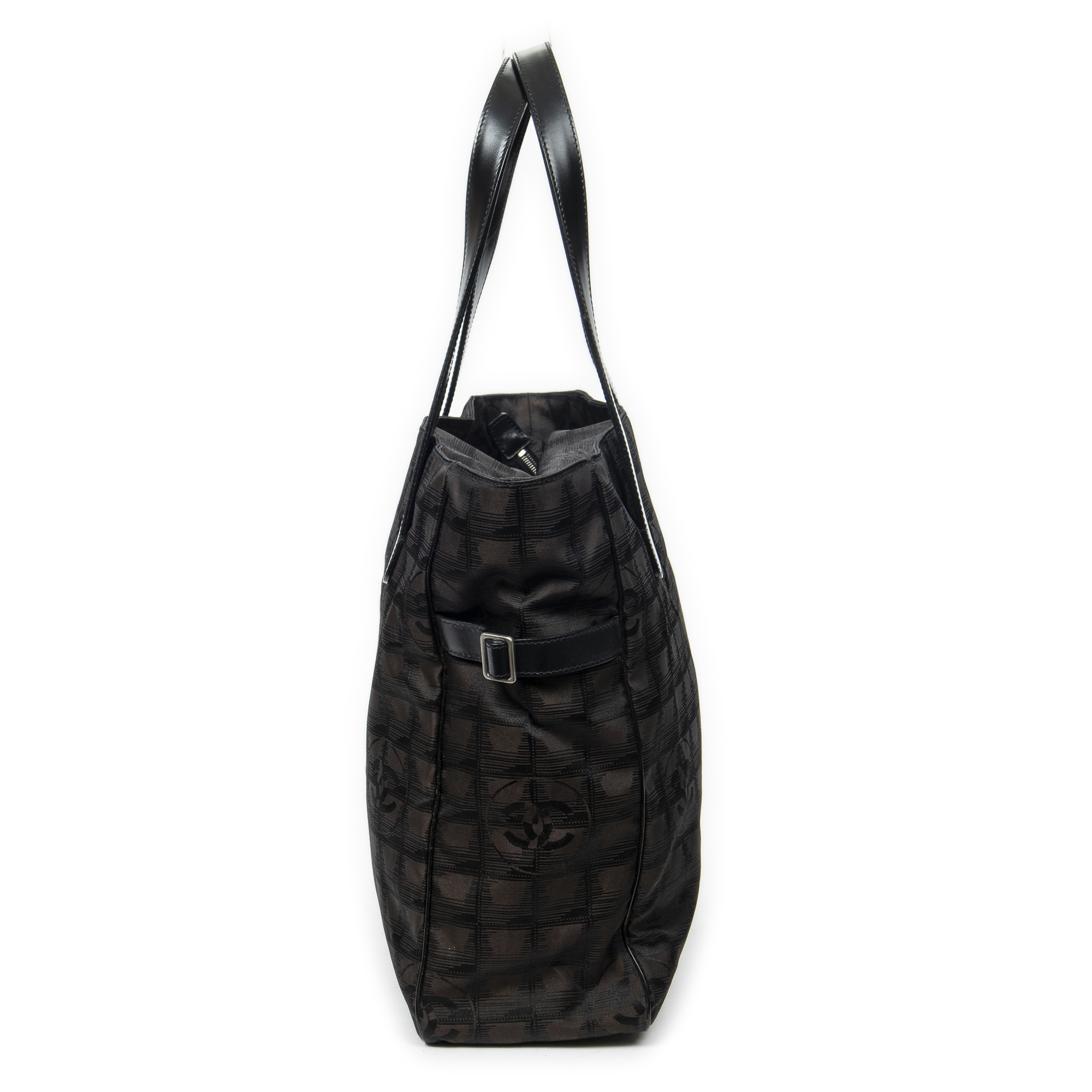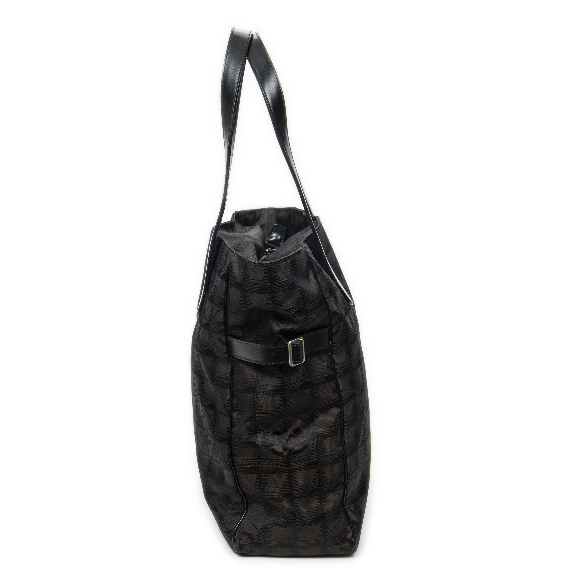 Chanel Shoulder Bag New Travel Line Tote in Brown/Black Travel Line Nylon Canvas and Silver hardware. The product is in Very Good Condition (AB).