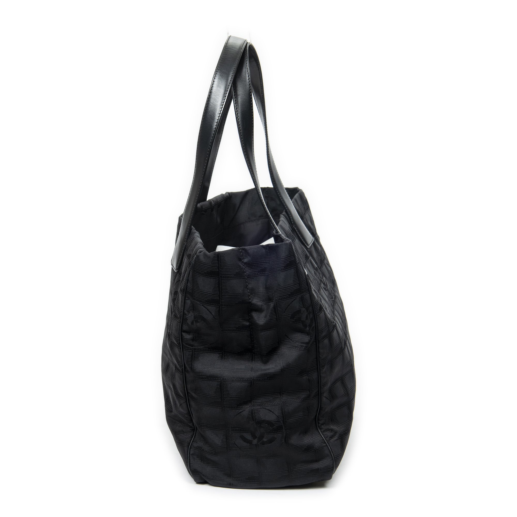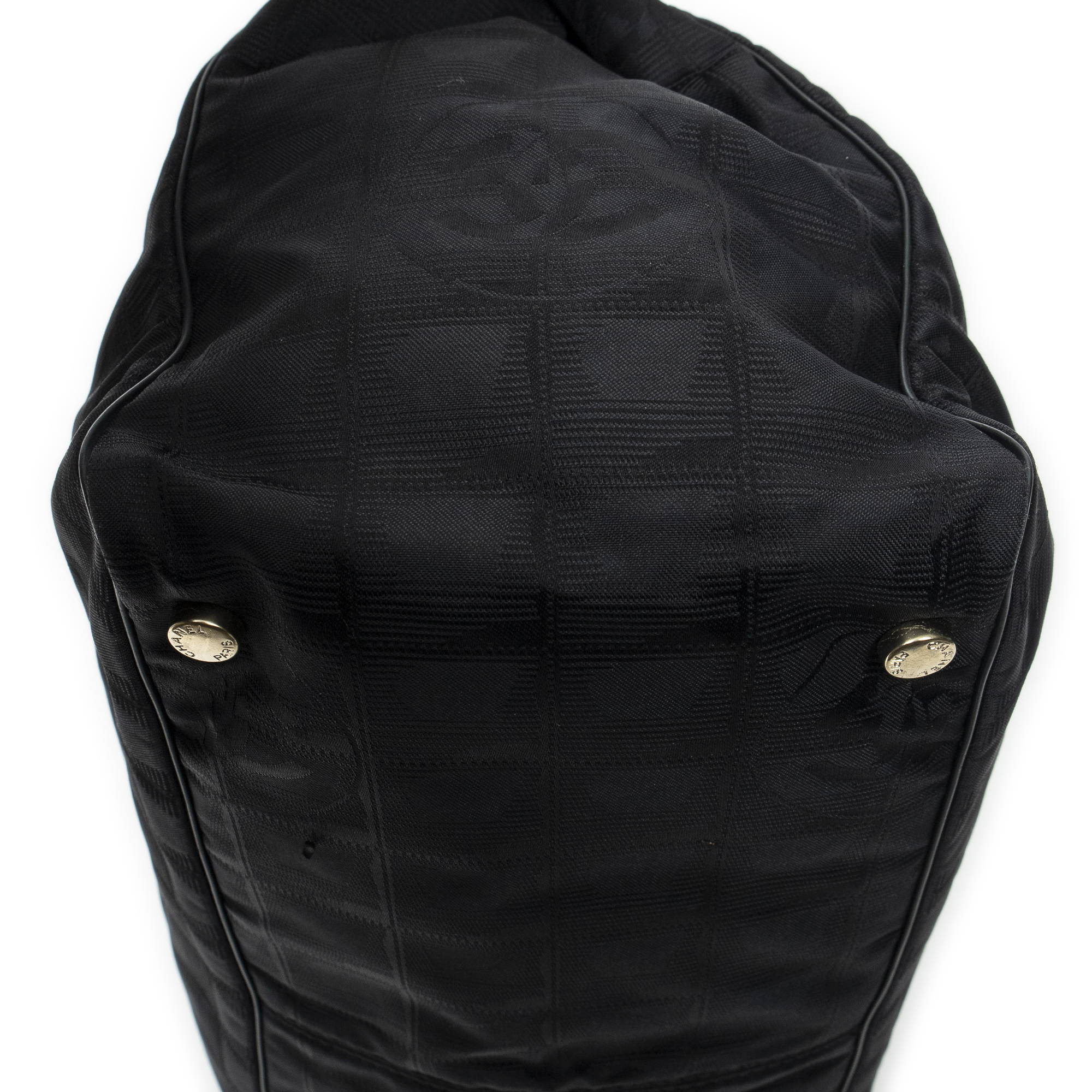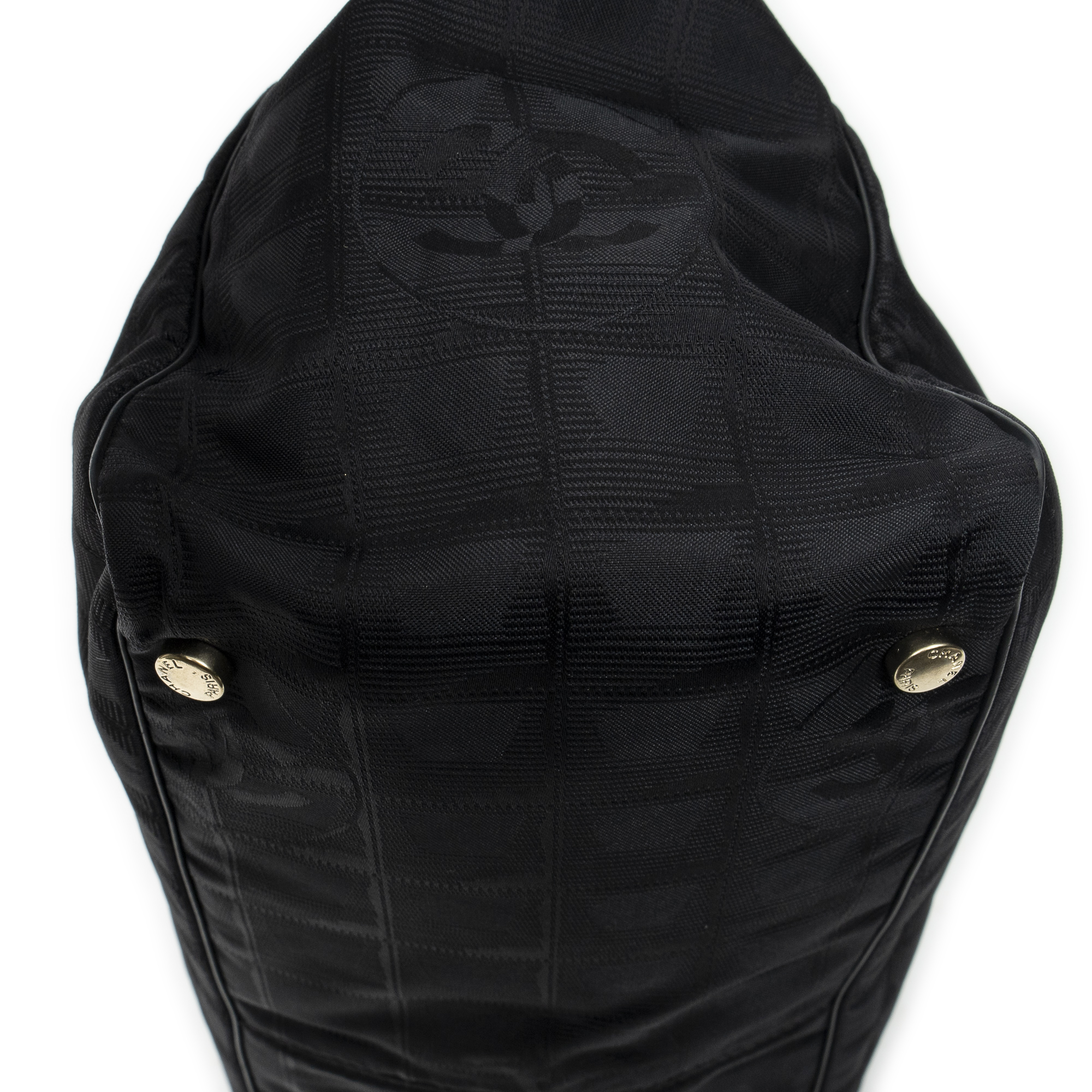 Chanel Shoulder Bag New Travel Line Tote in Black Travel Line Nylon Canvas and Silver hardware. The product is in Excellent Condition (A).