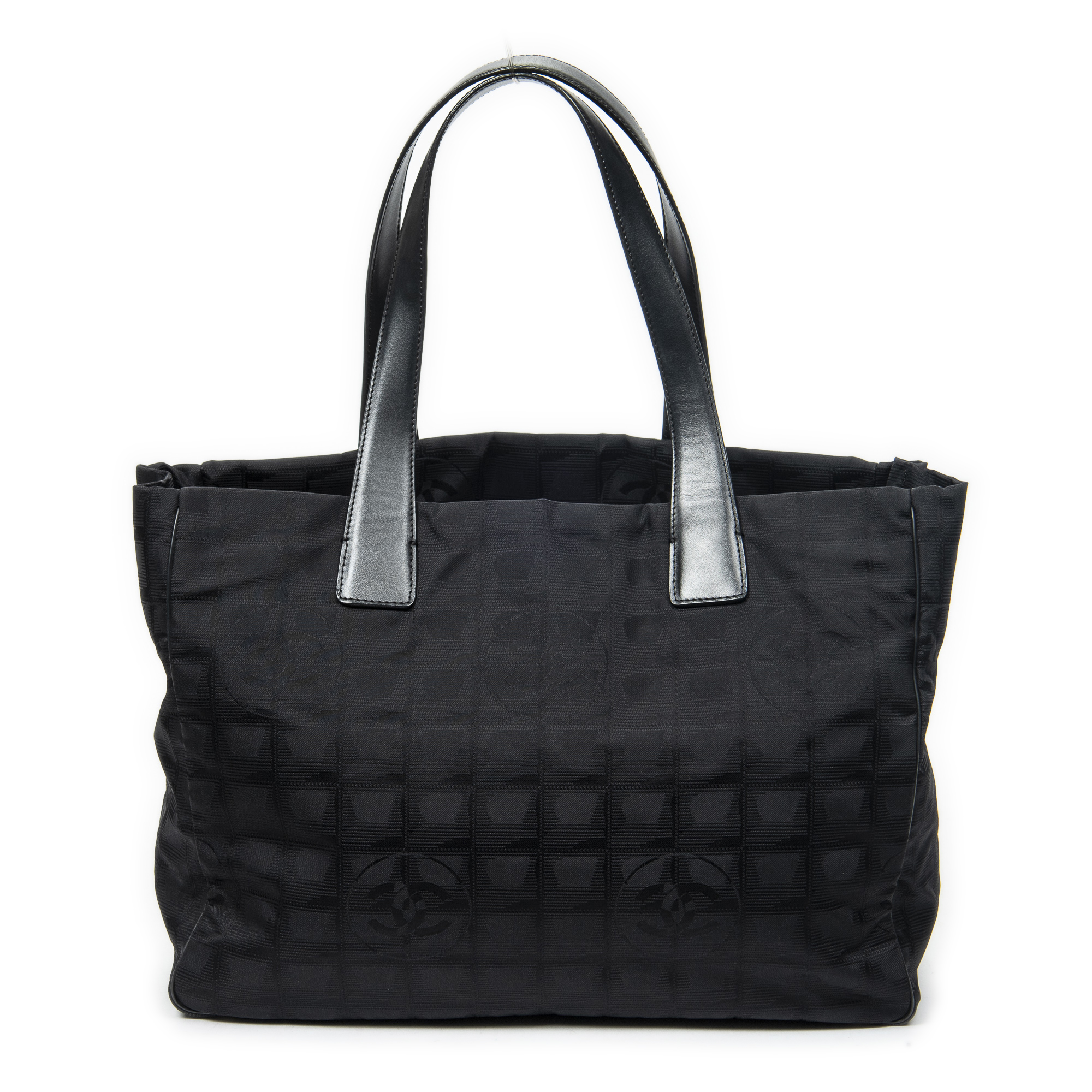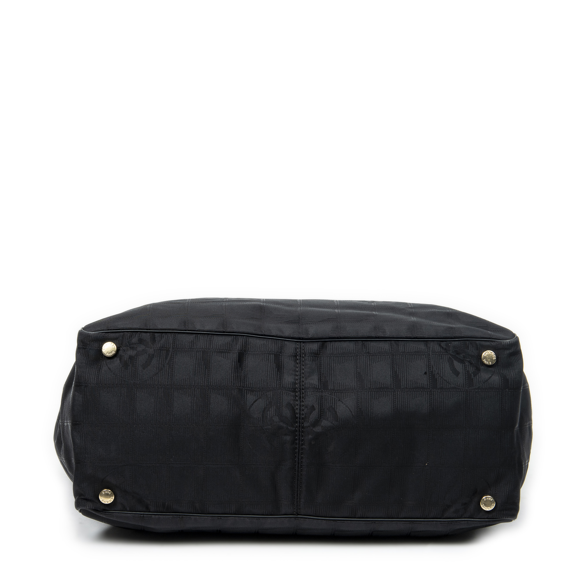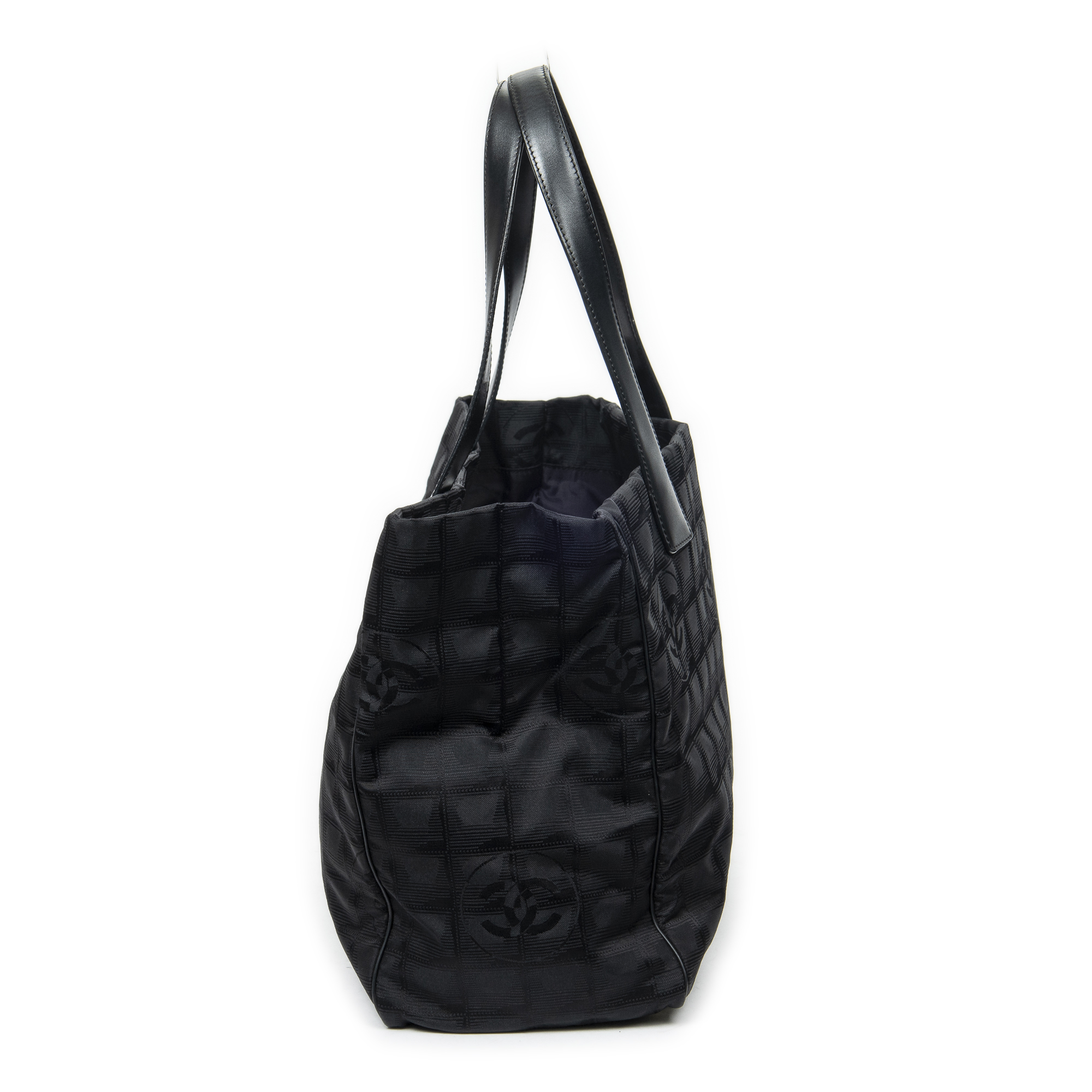 Chanel Shoulder Bag New Travel Line Tote in Black Travel Line Nylon Canvas and Silver hardware. The product is in Excellent Condition (A).