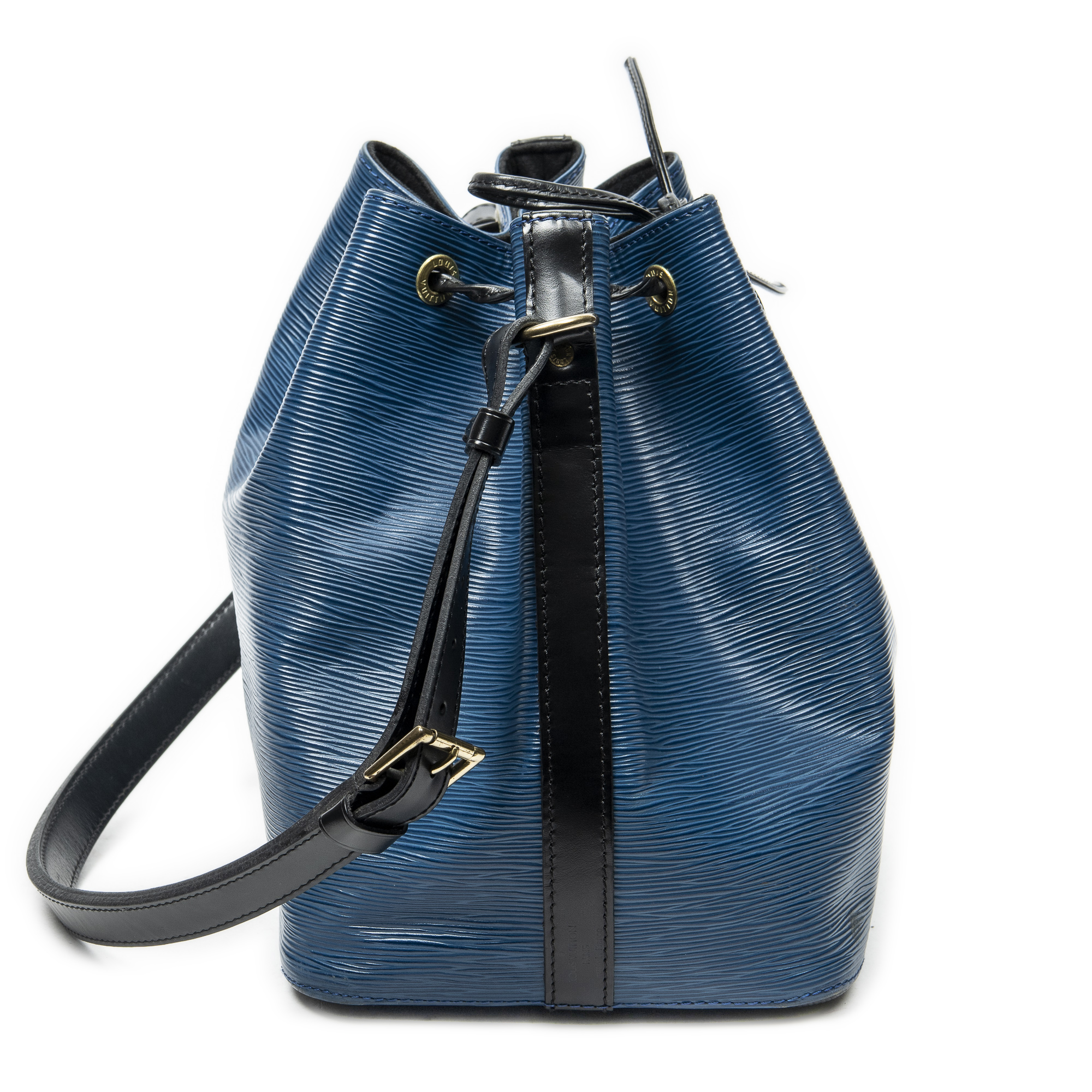 Louis Vuitton Shoulder Bag Noe Bicolor PM in Blue/Black Epi and Golden Brass hardware. The product is in Very Good Condition (AB).