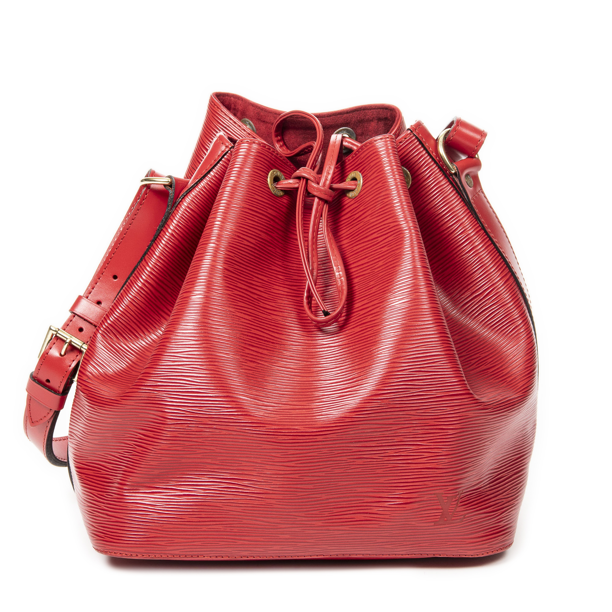 Louis Vuitton Shoulder Bag Noe PM in Red Epi and Golden Brass hardware. The product is in Excellent Condition (A).