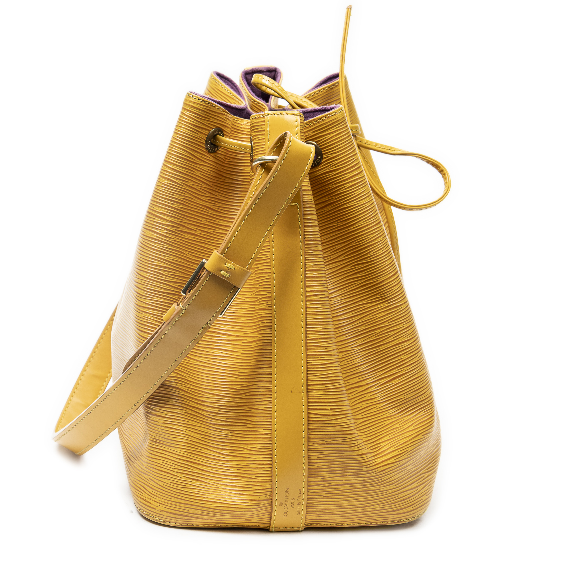 Louis Vuitton Shoulder Bag Noe PM in Yellow Epi and Golden Brass hardware. The product is in Very Good Condition (AB).