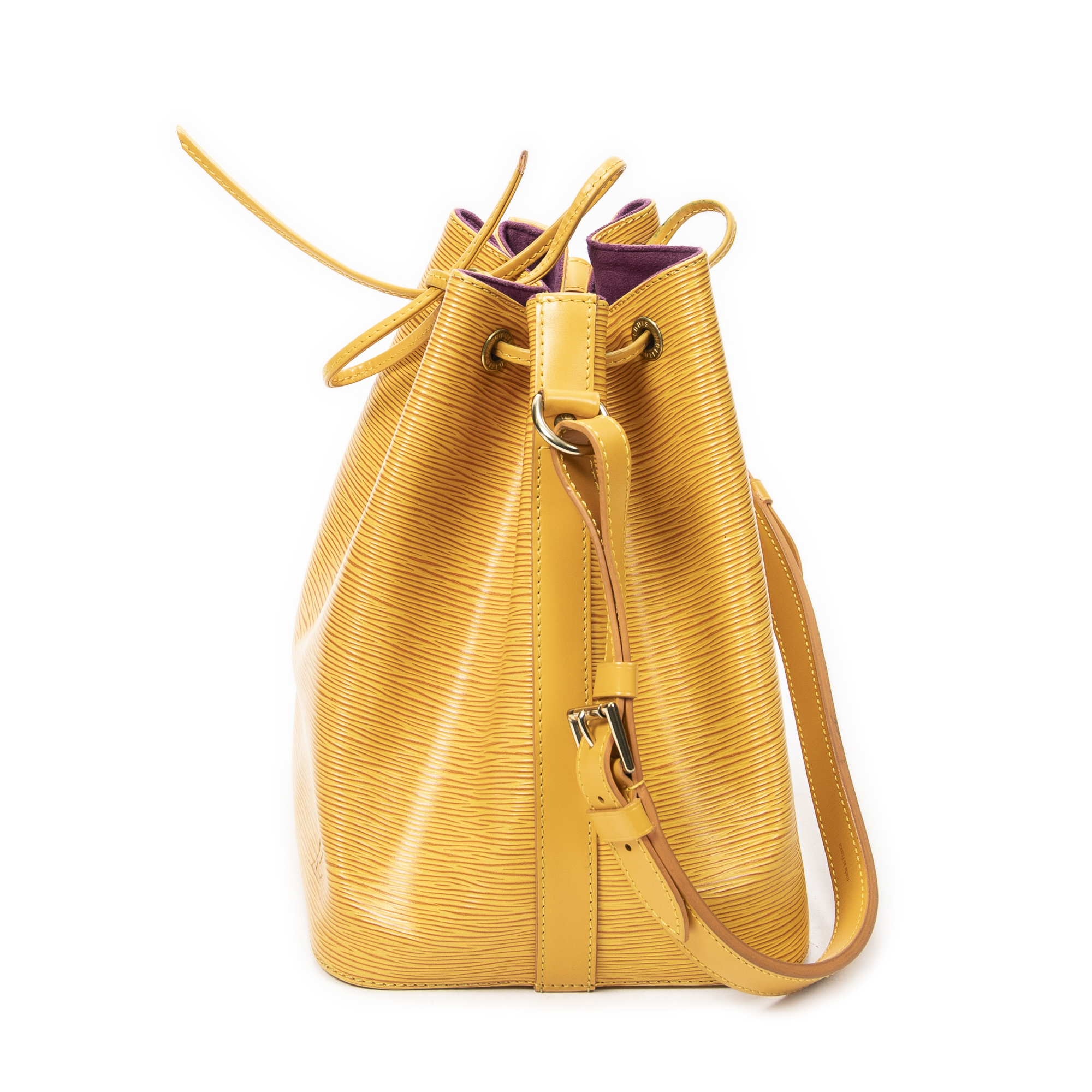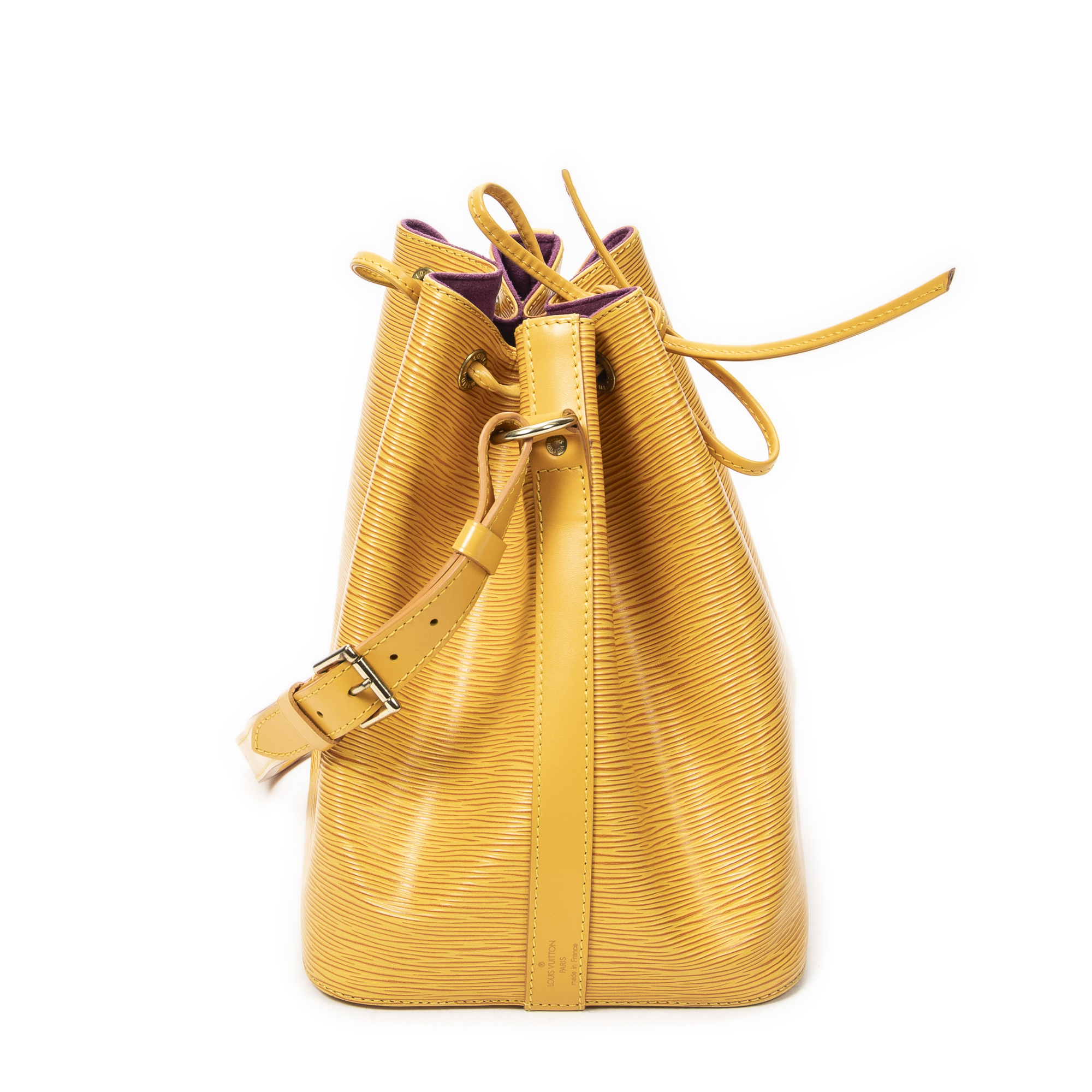 Louis Vuitton Shoulder Bag Noe PM in Yellow Epi and Golden Brass hardware. The product is in Excellent Condition (A).