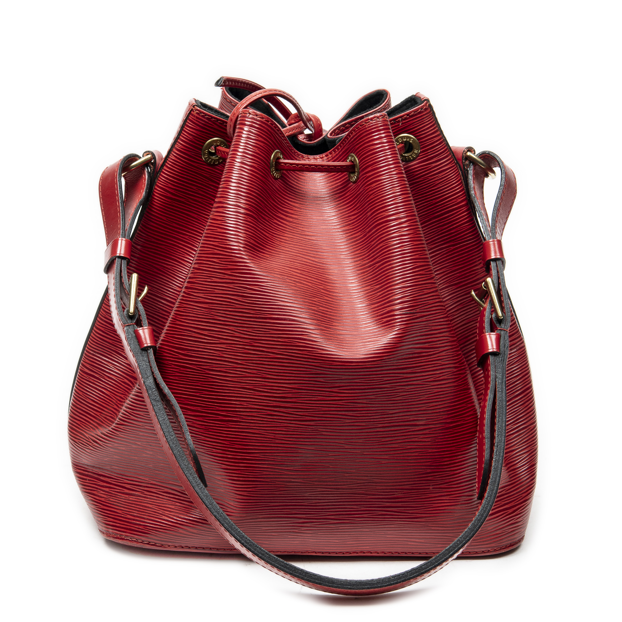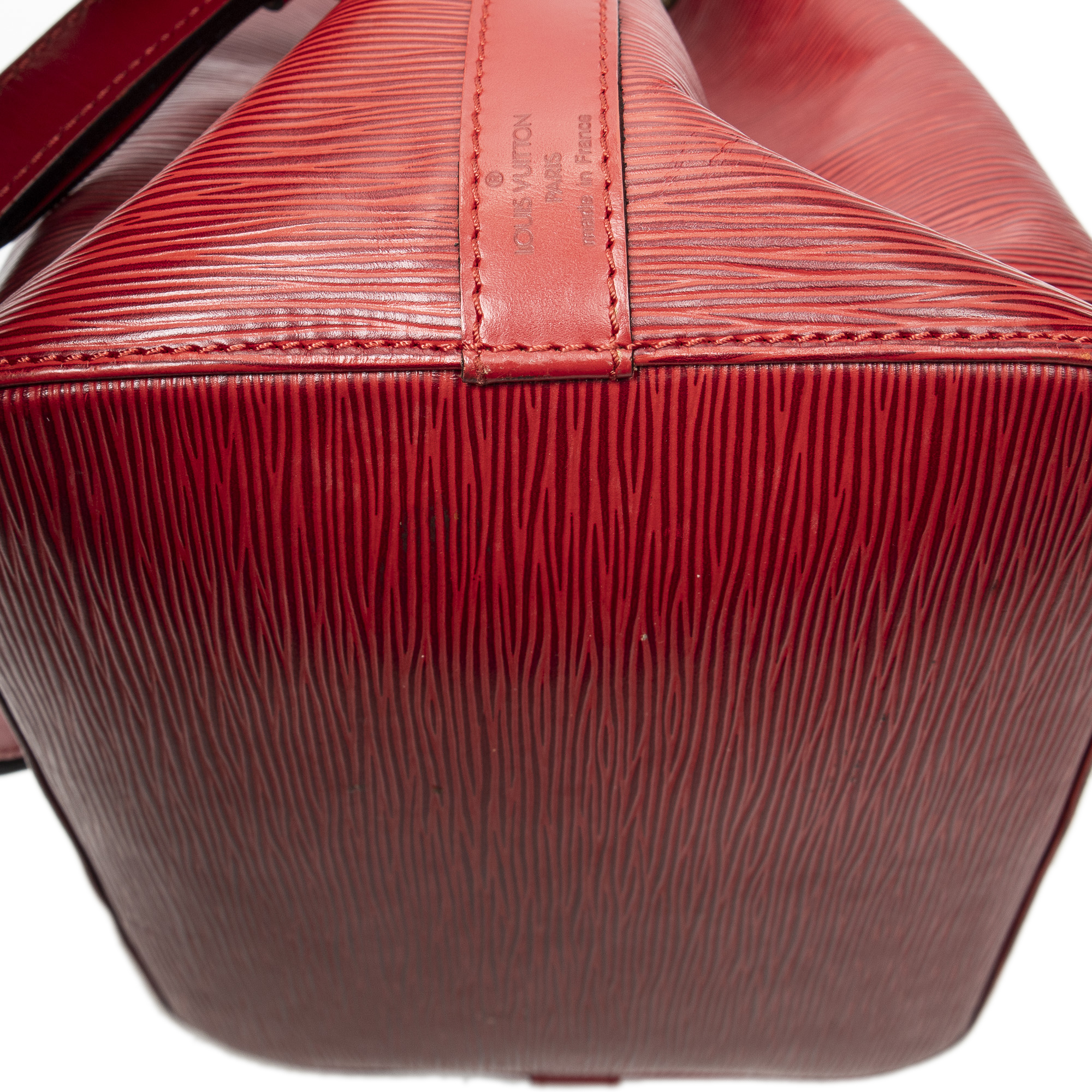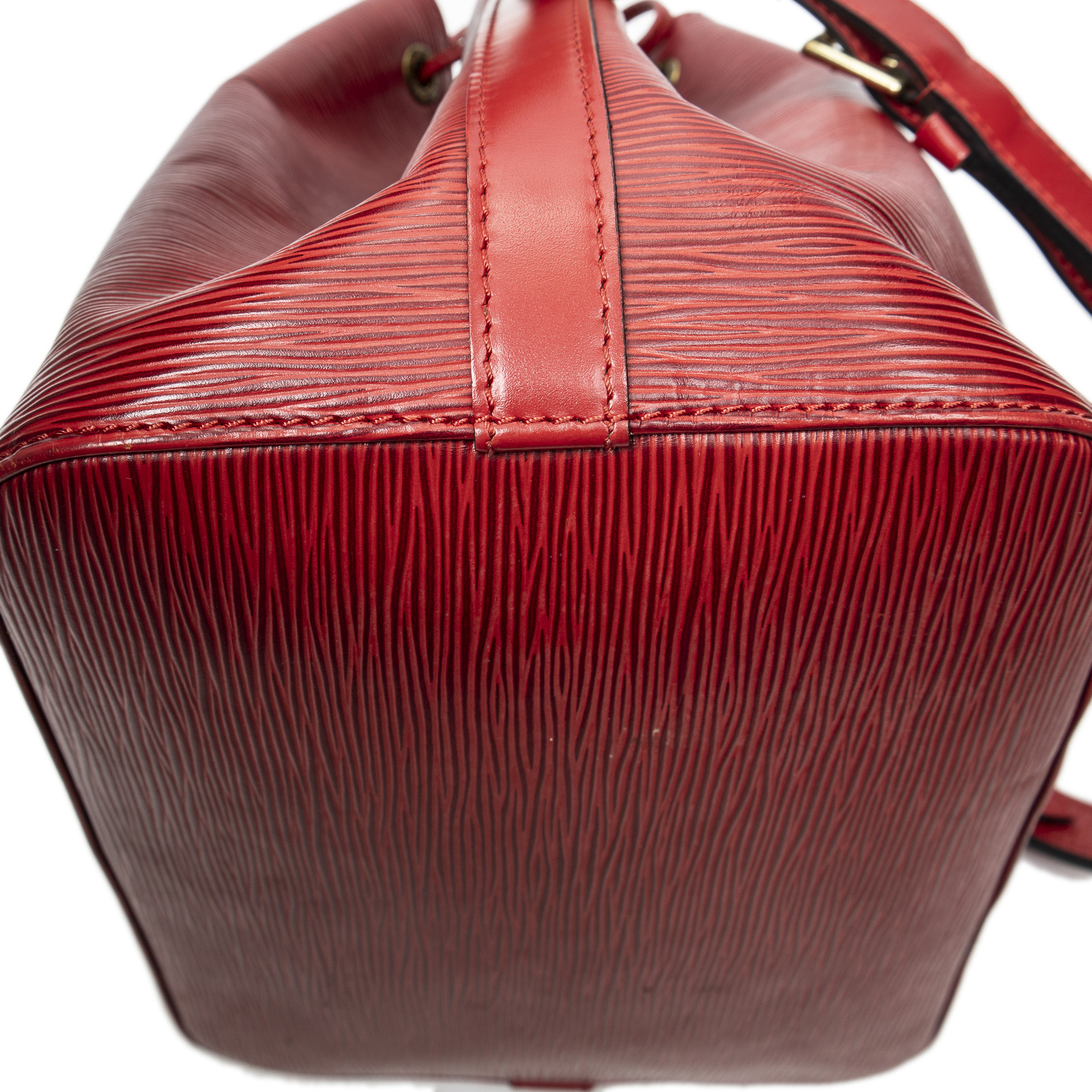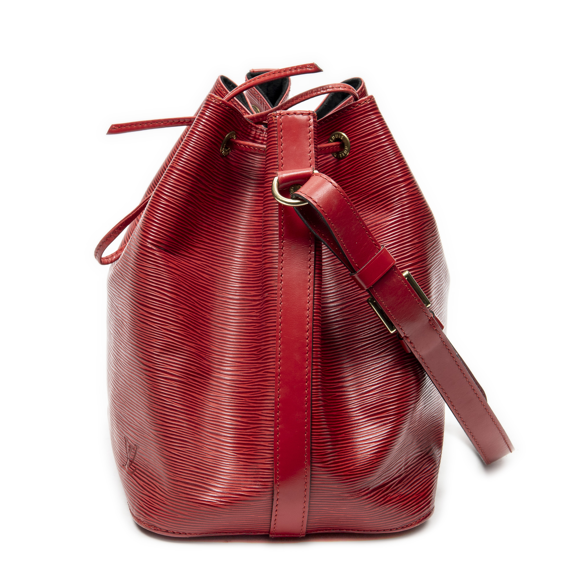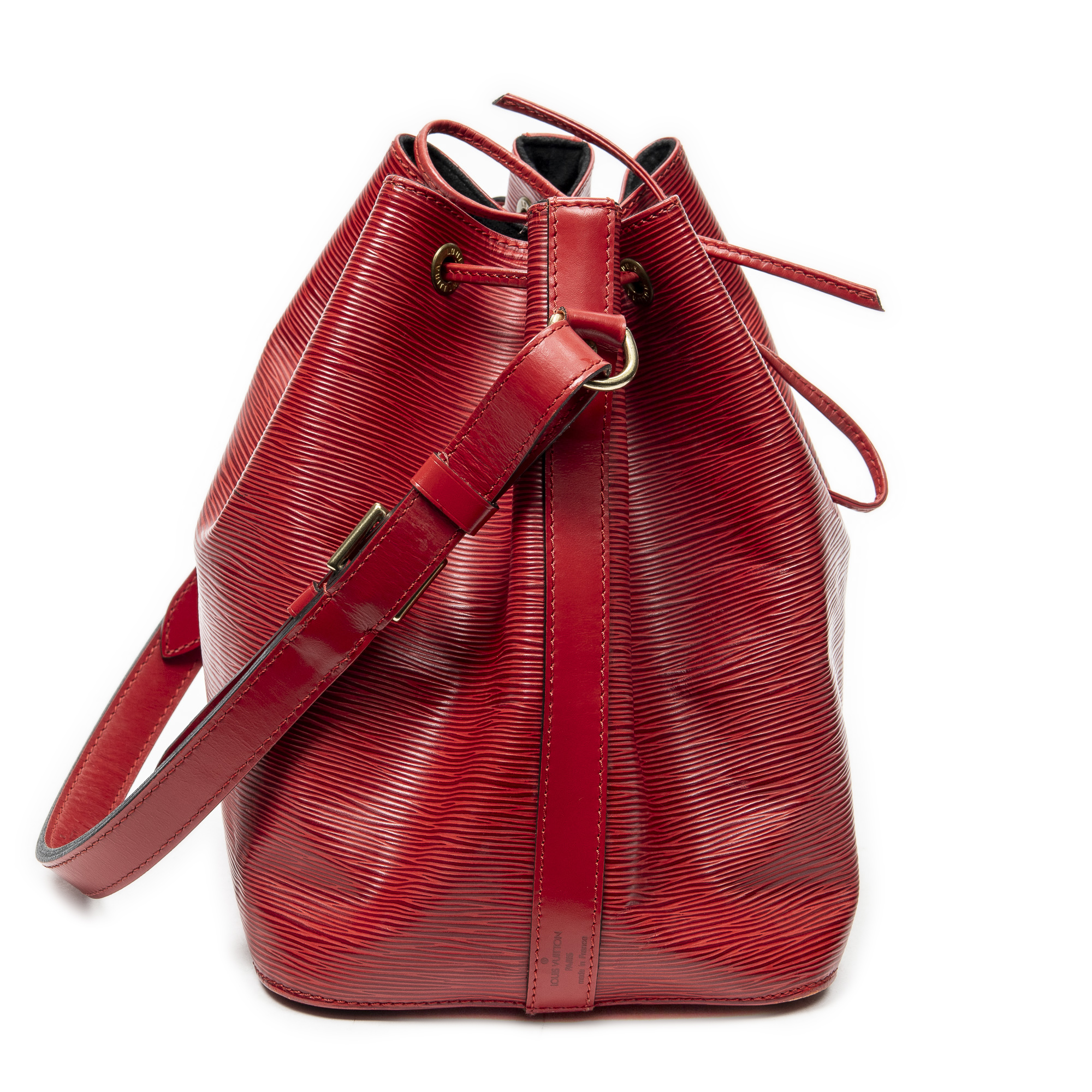 Louis Vuitton Shoulder Bag Noe PM in Red Epi and Golden Brass hardware. The product is in Excellent Condition (A).