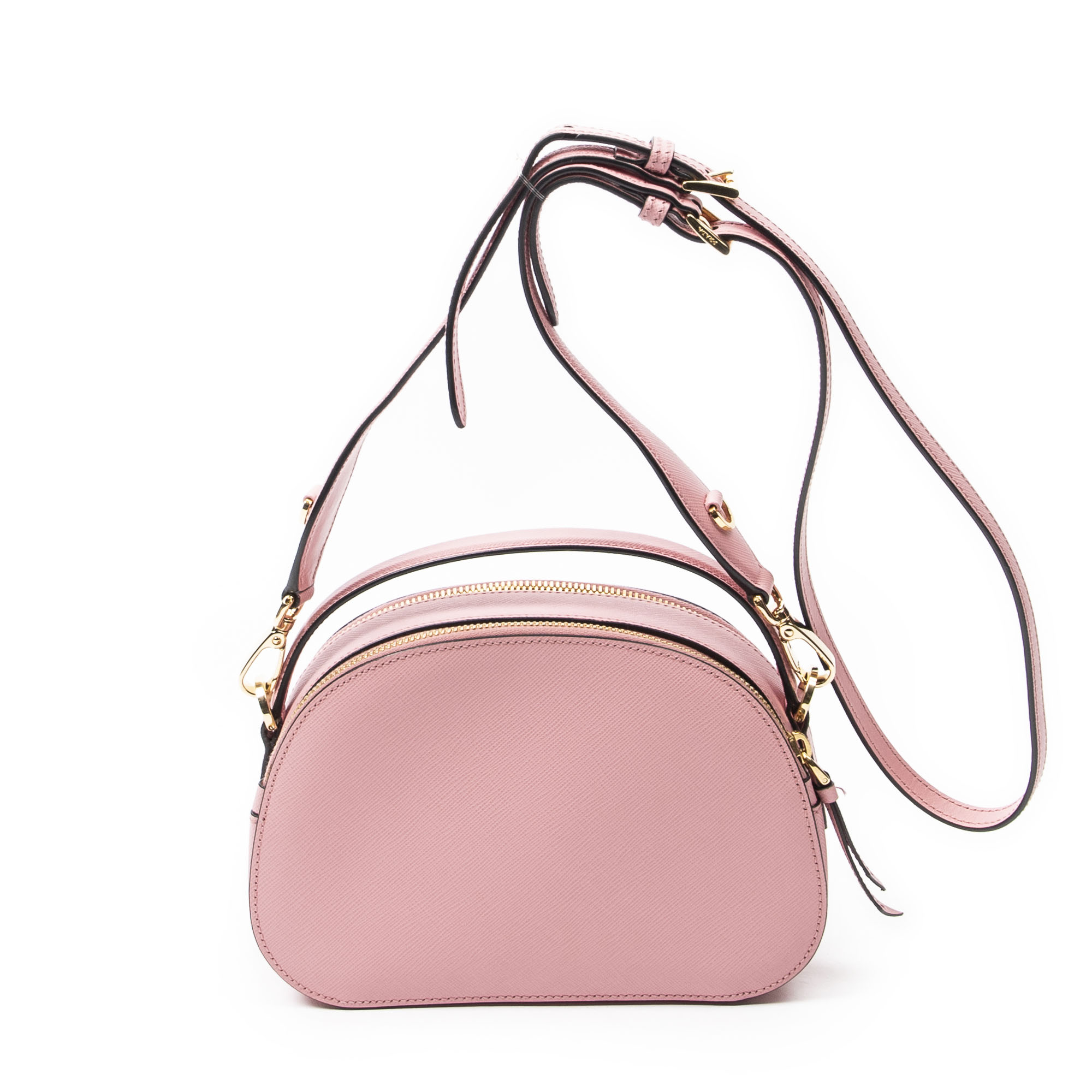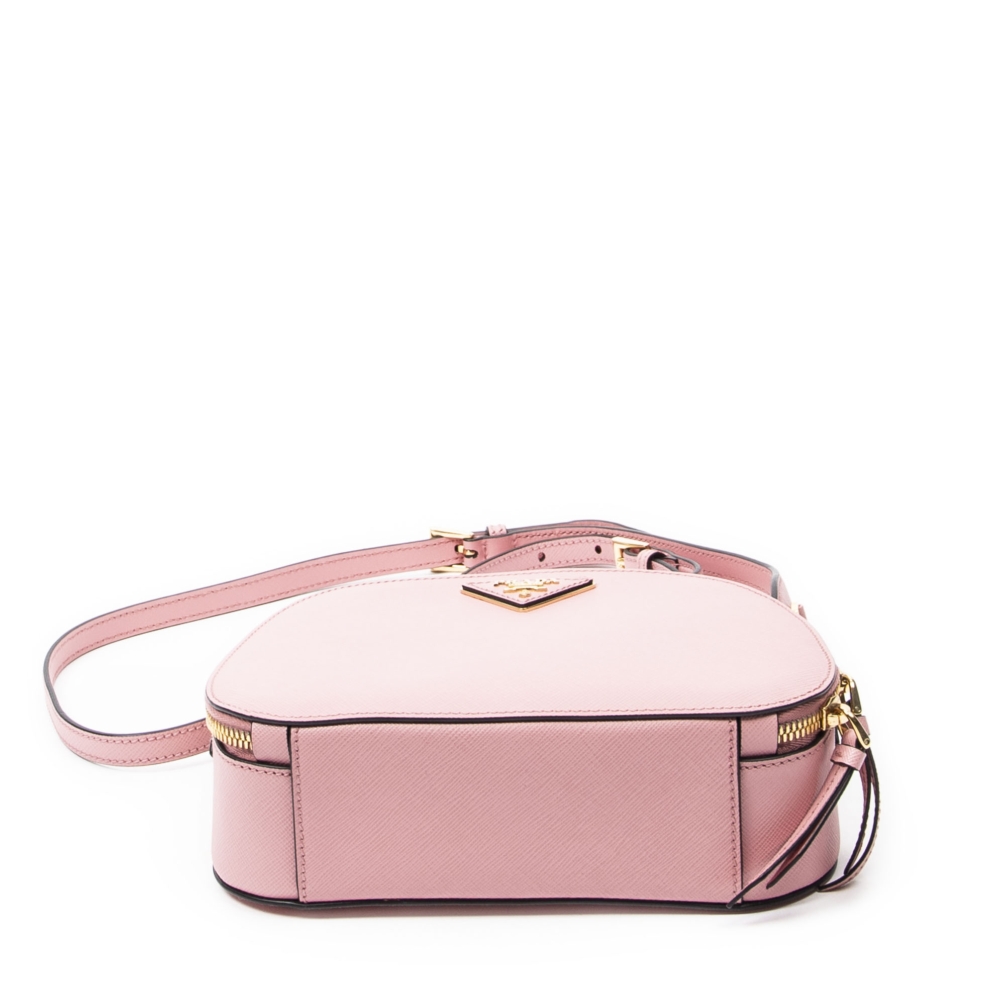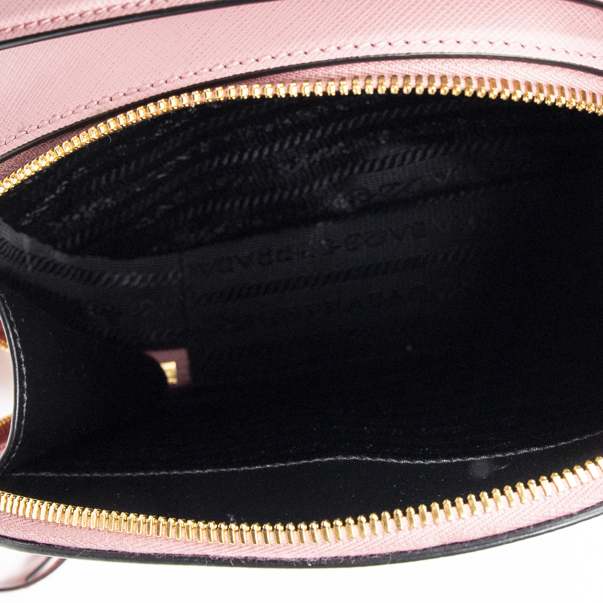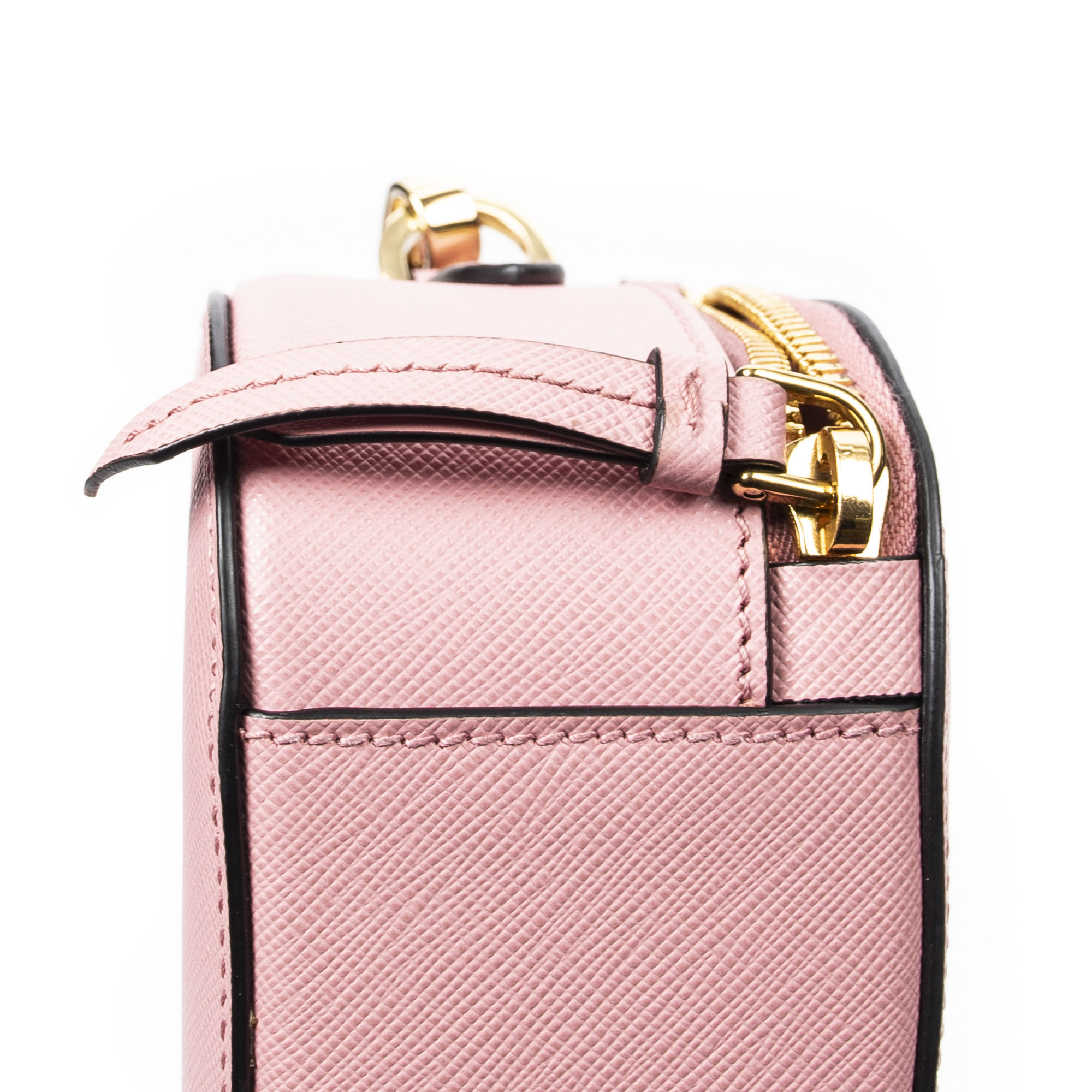 Prada Shoulder Bag Odette Top Handle in Pink Saffiano Leather and Gold hardware. The product is in Perfect Condition (AA).
