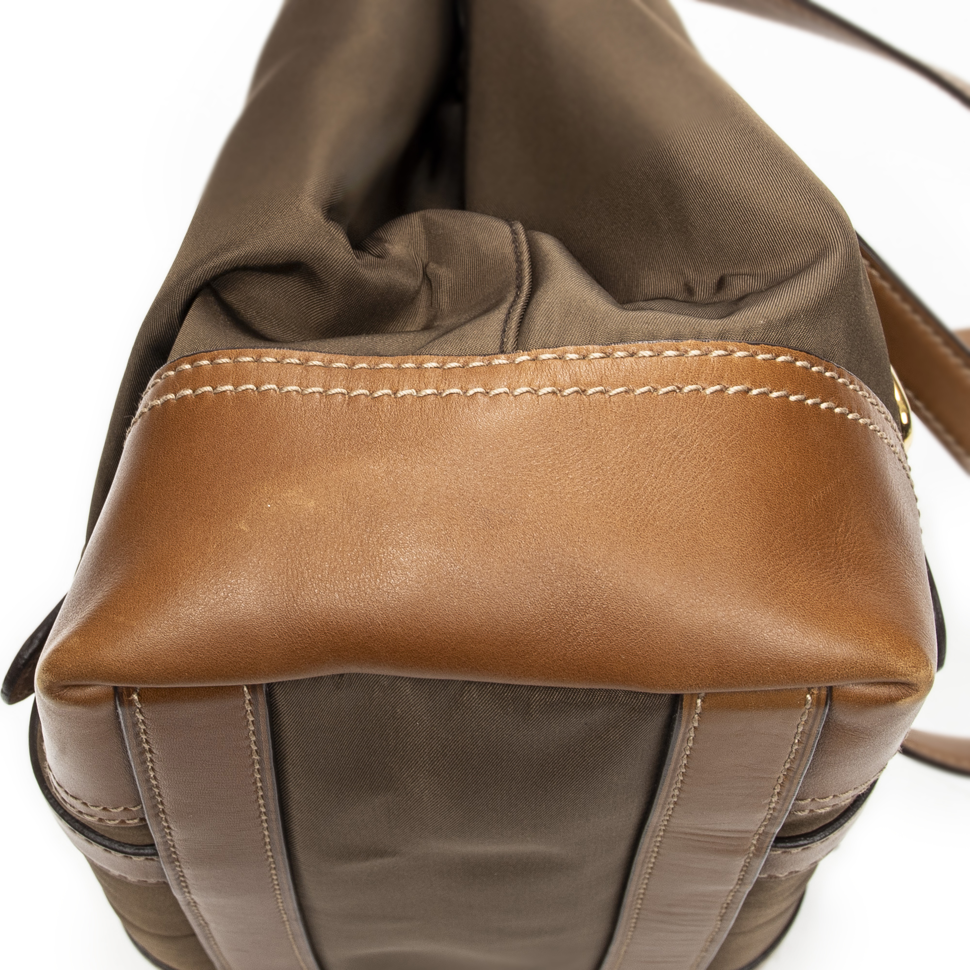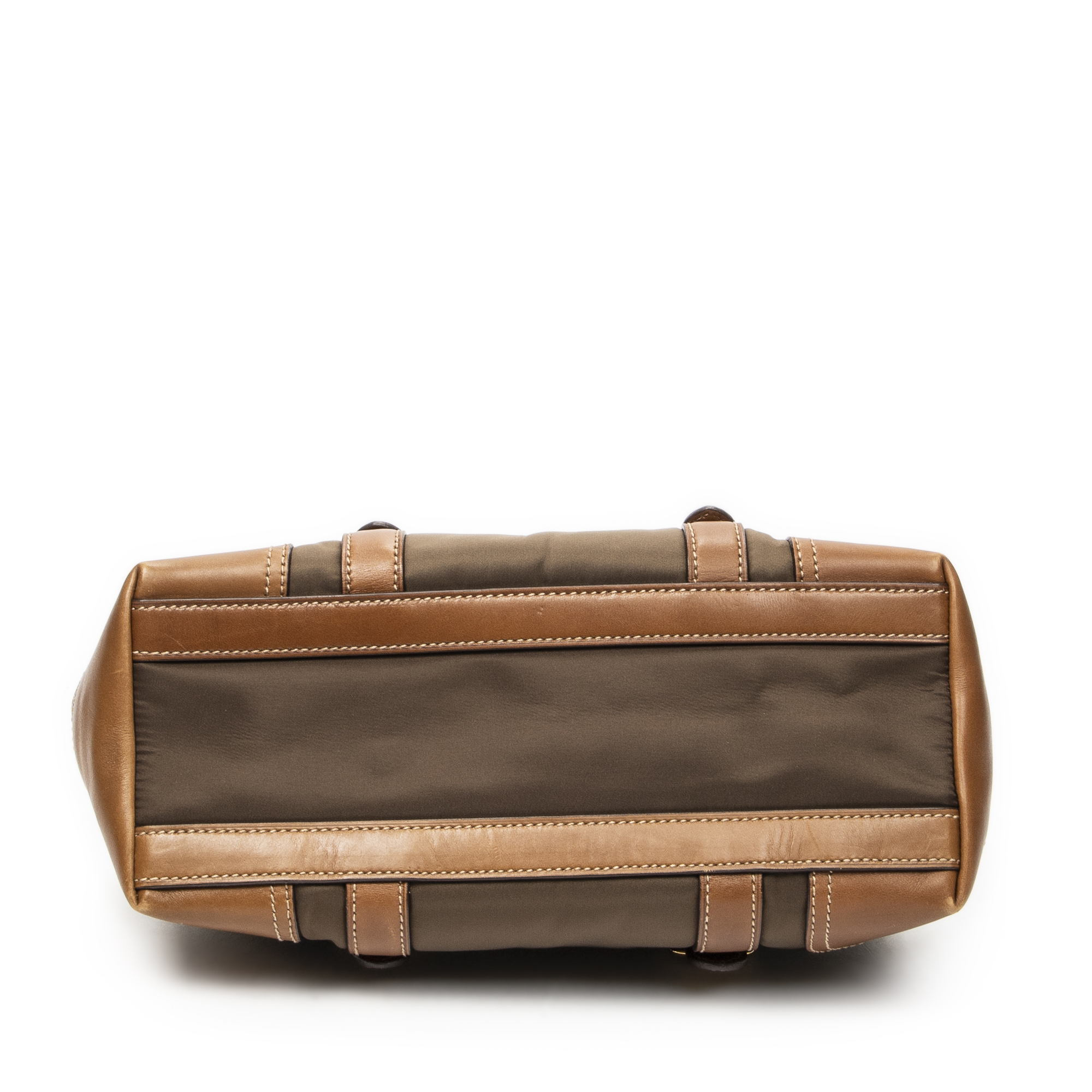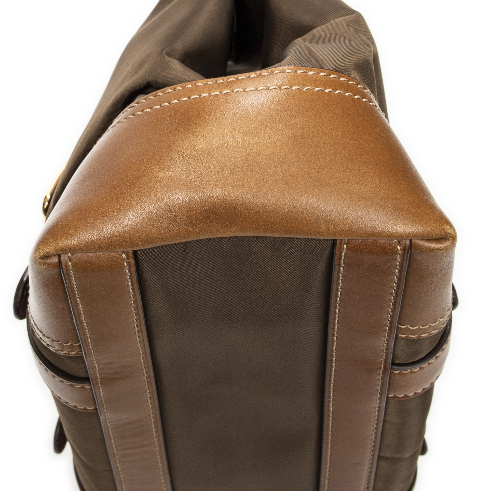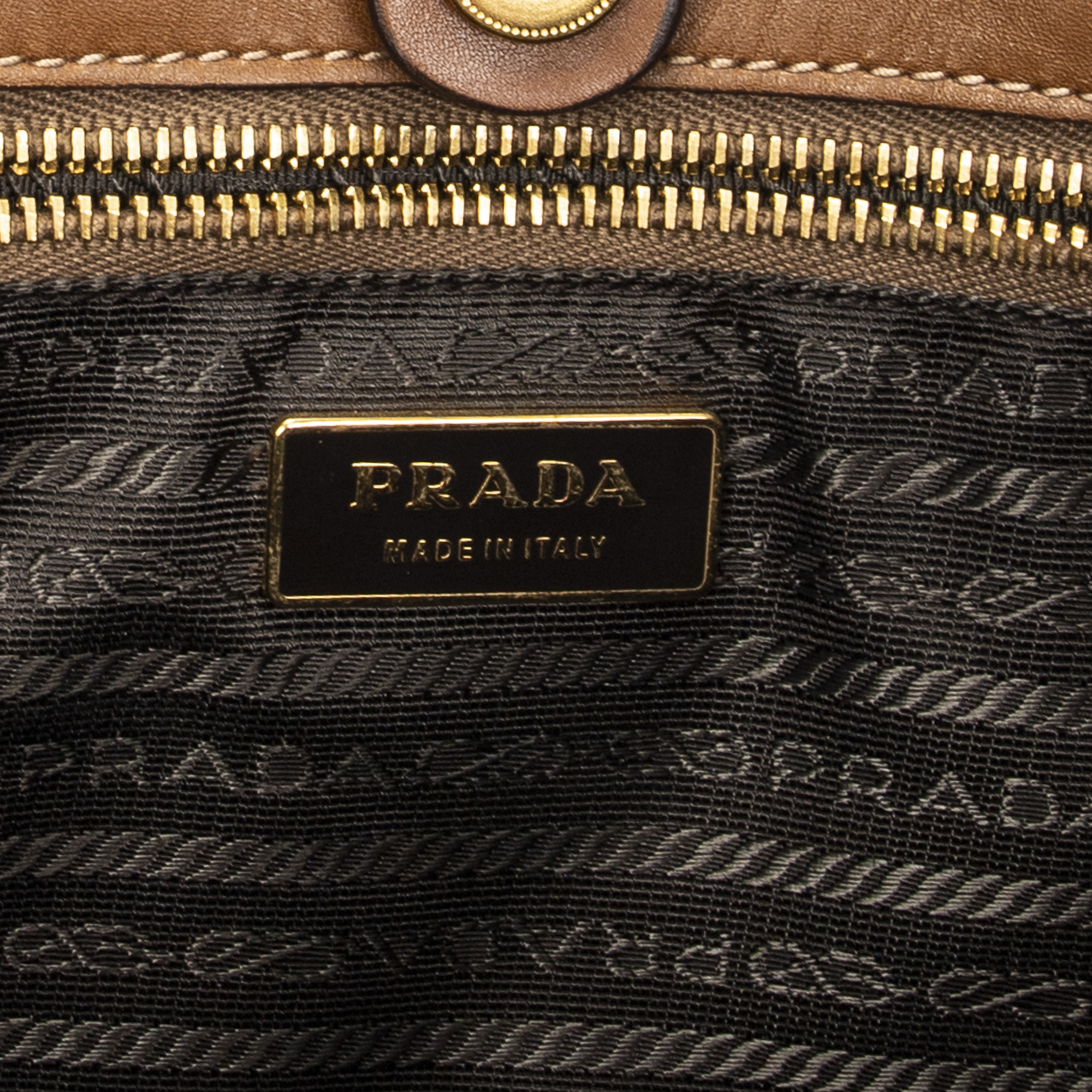 Prada Shoulder Bag Open Tote in Brown Nylon Canvas and Gold hardware. The product is in Excellent Condition (A).
