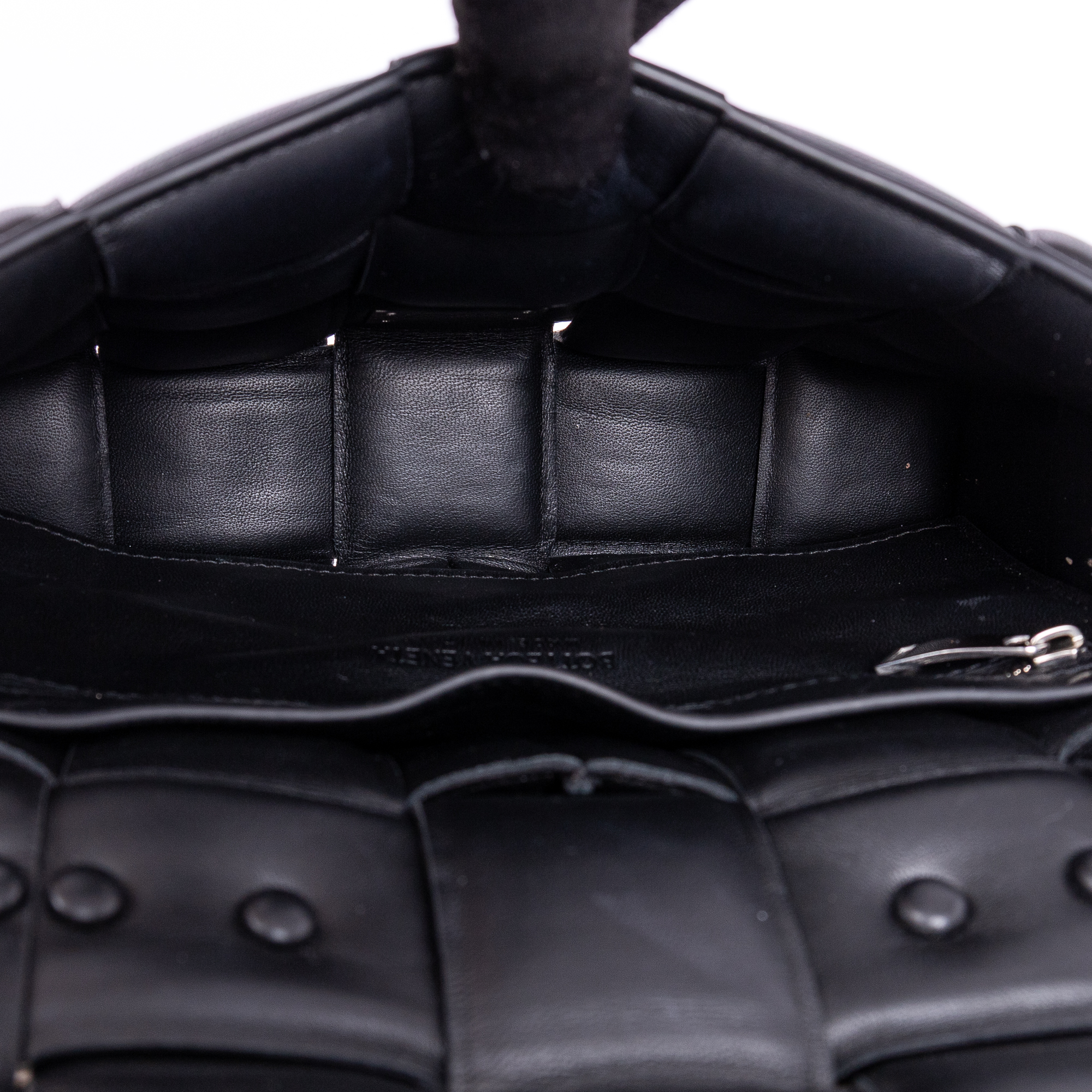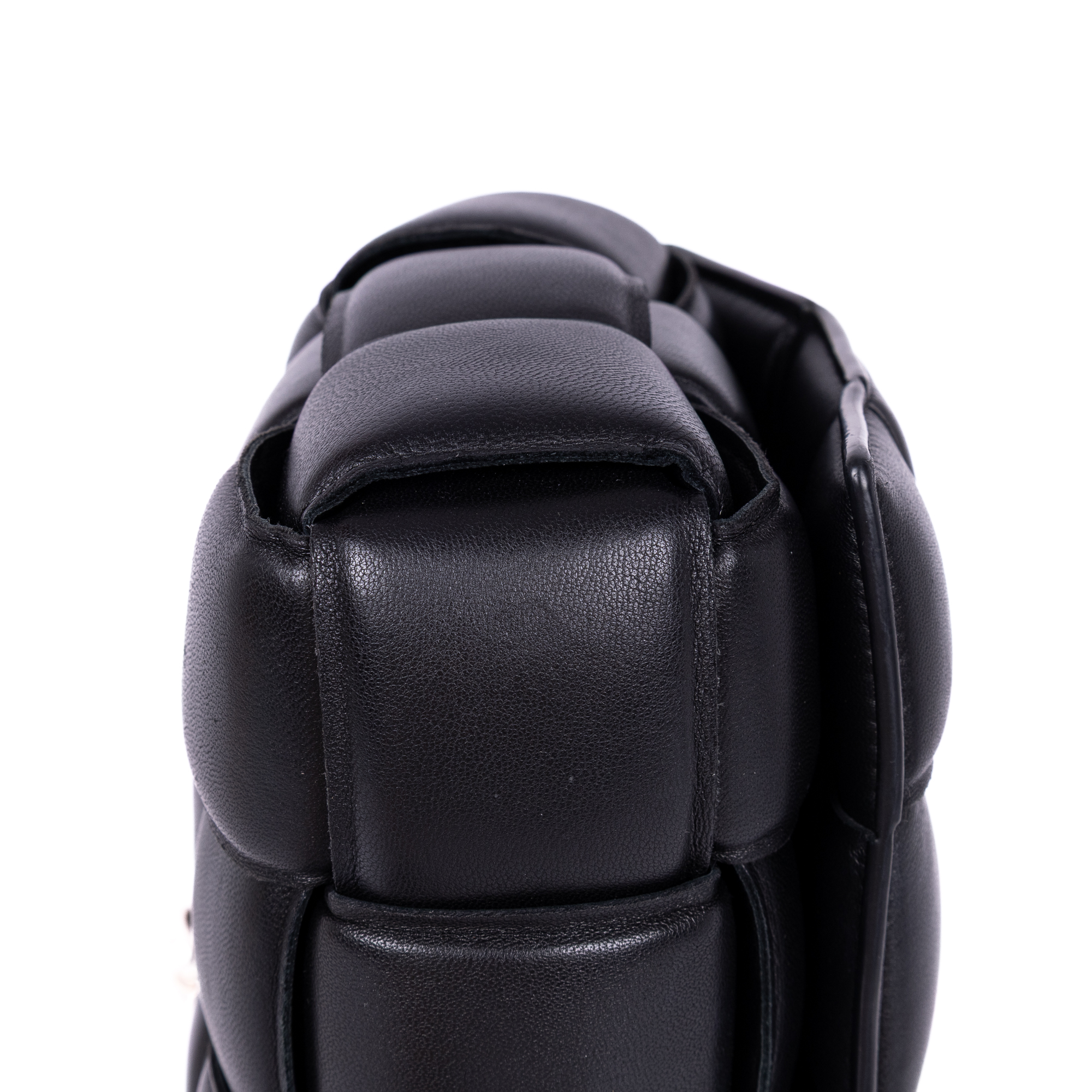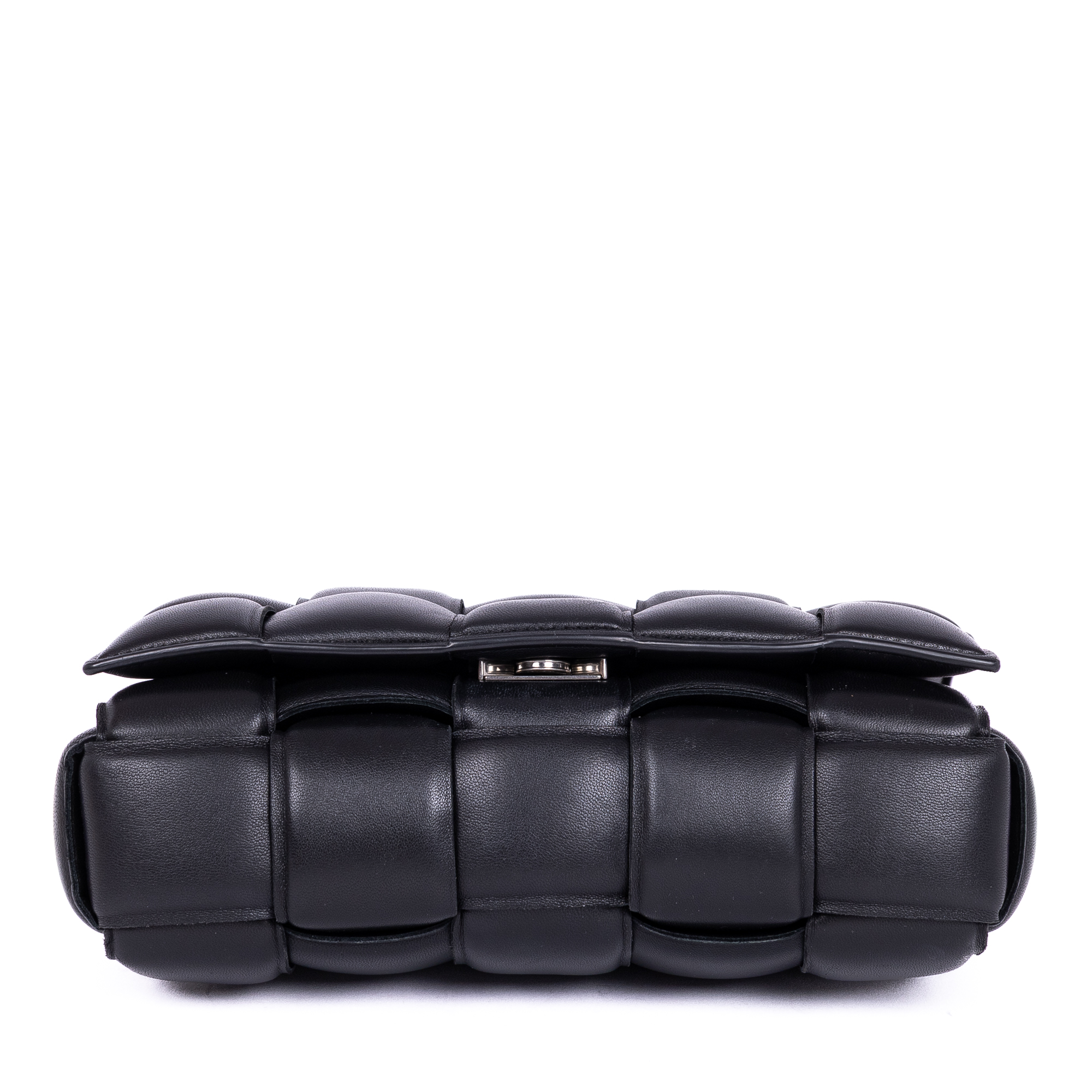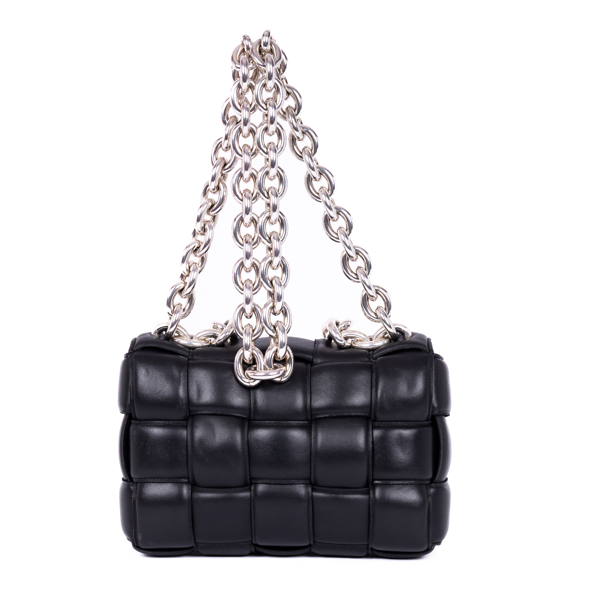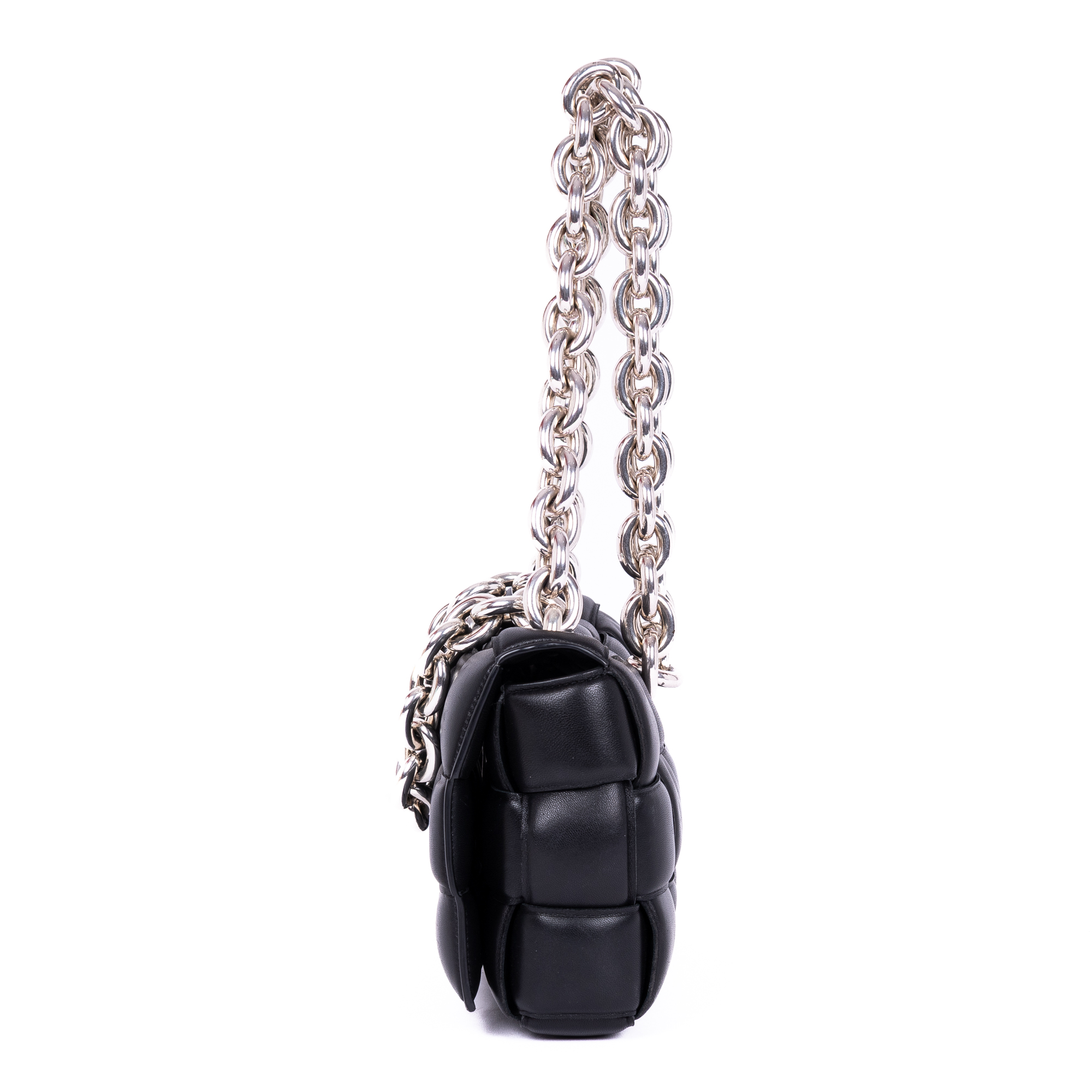 Bottega Veneta Shoulder Bag Padded Chain Cassette in Black Padded Intrecciato Leather and Silver hardware. The product is in Perfect Condition (AA).