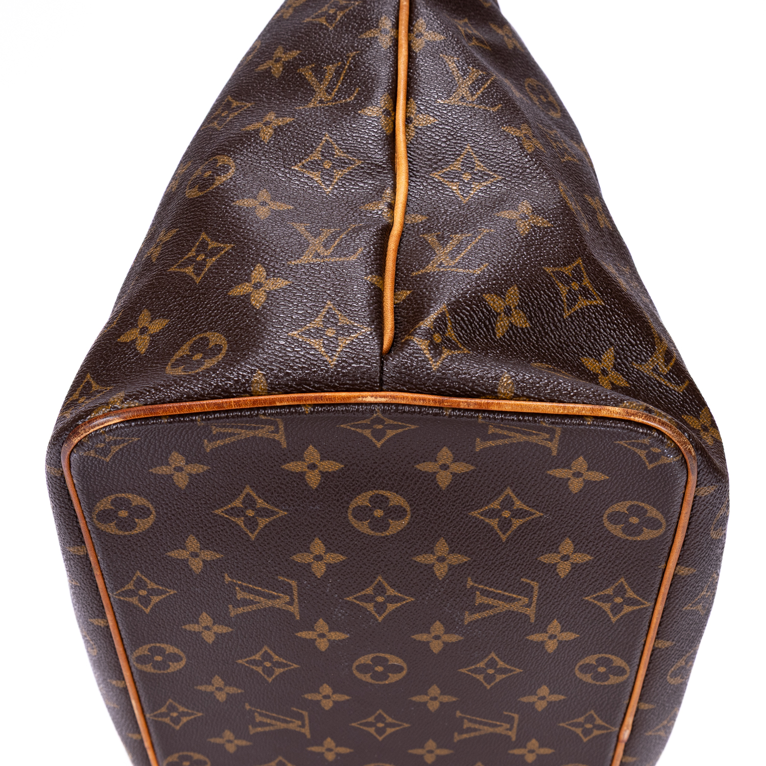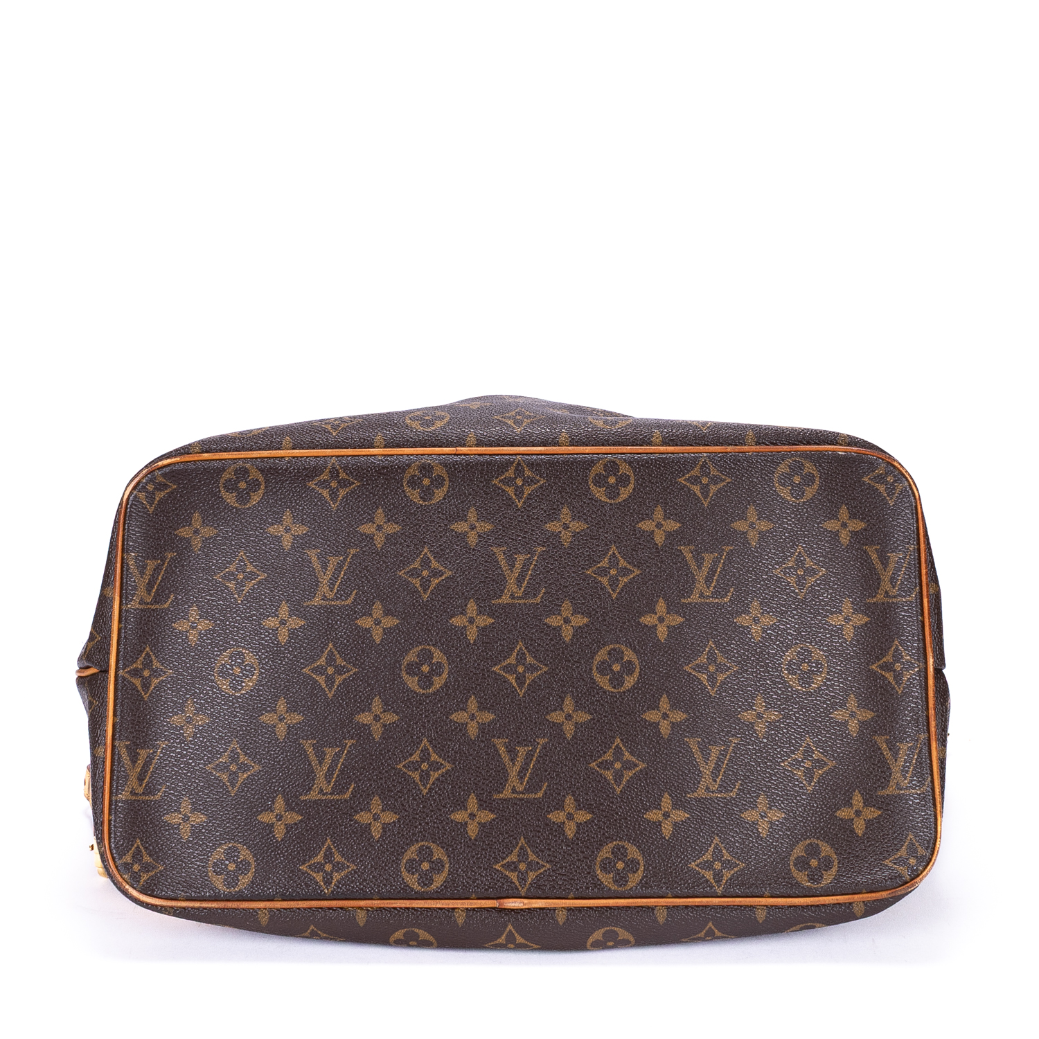 Condition Wear marks on bottom vachetta trim corners. Watermarks and black stains on vachetta leather straps and hardware leather.