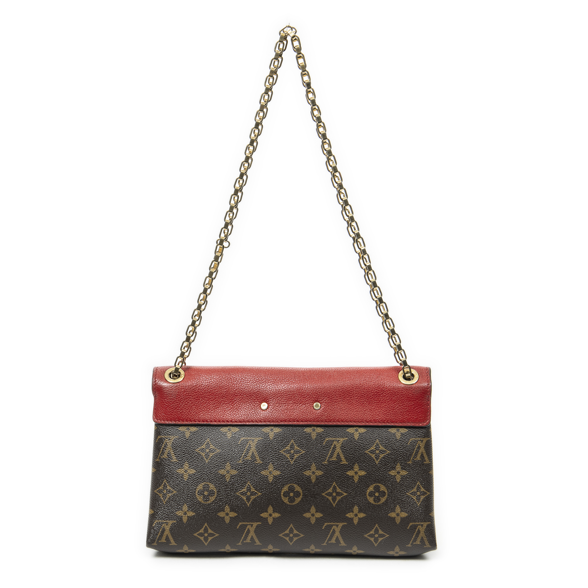 Louis Vuitton Shoulder bag Pallas Chain Flap in Red/Brown Monogram Canvas and Golden Brass hardware. The product is in Excellent Condition (A).