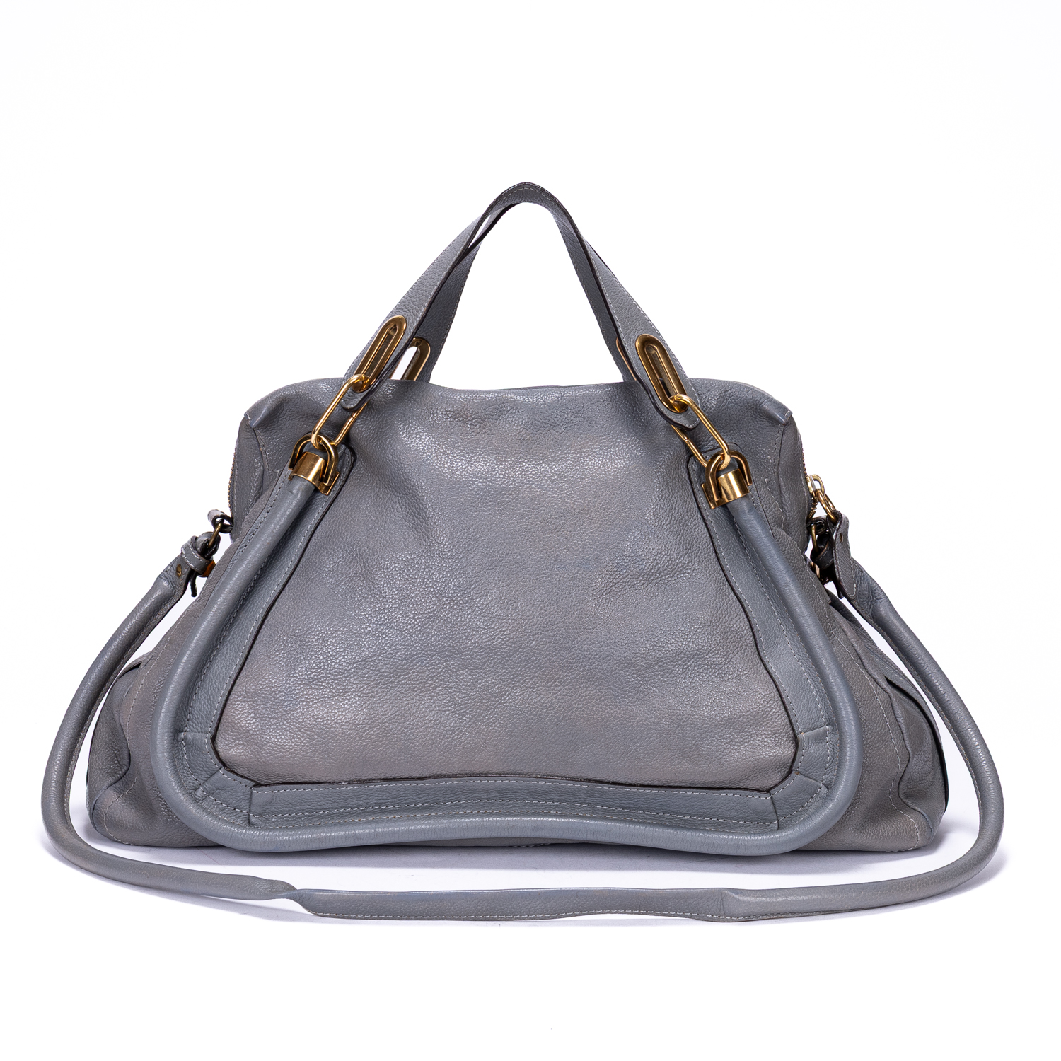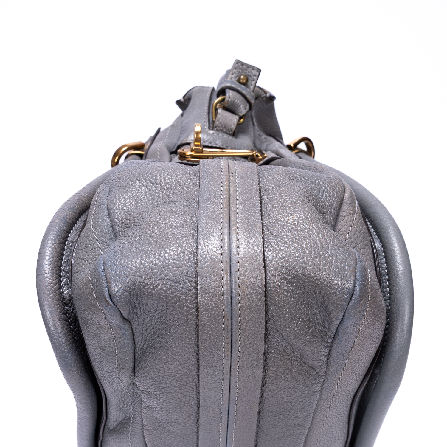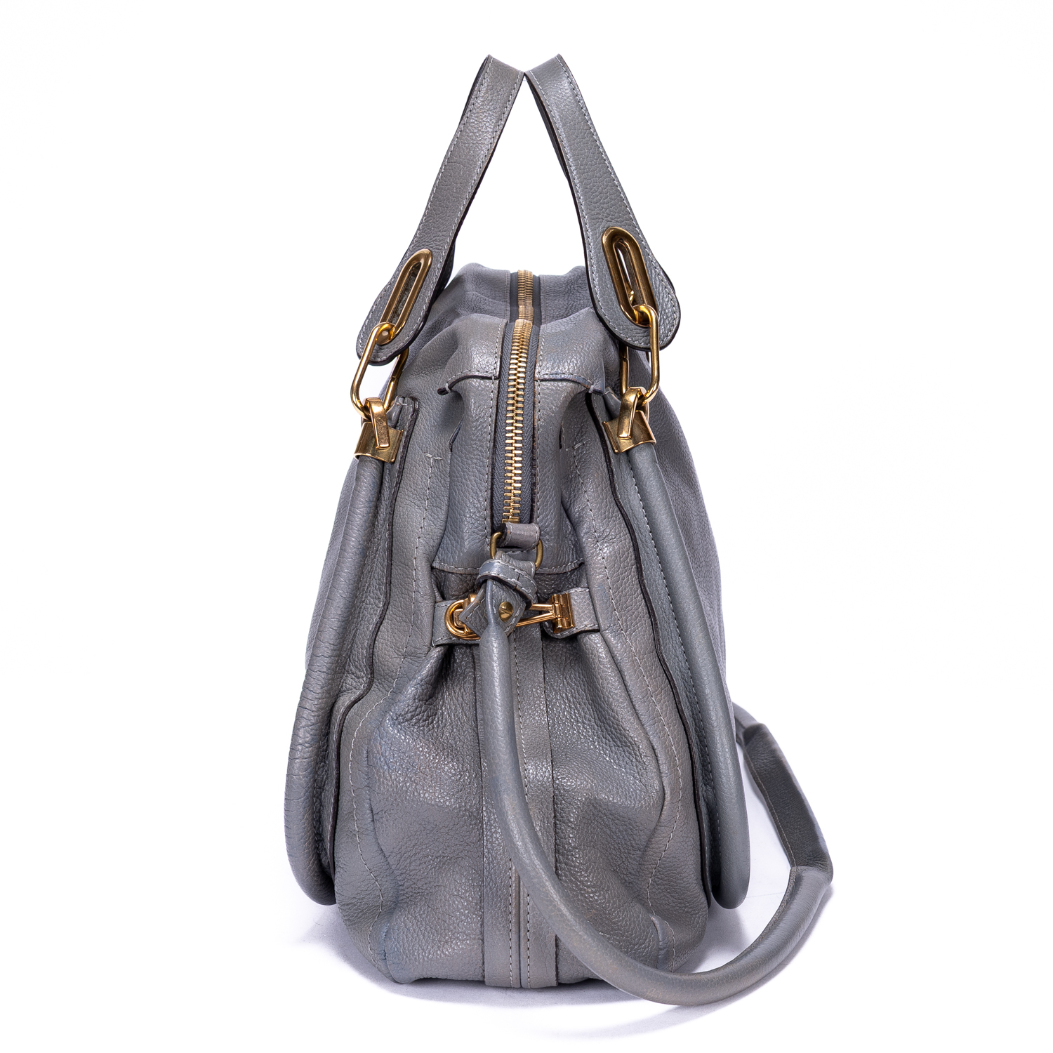 Chloe Shoulder Bag Paraty Large in Grey Pebbled Leather and Gold hardware. The product is in Excellent Condition (A).