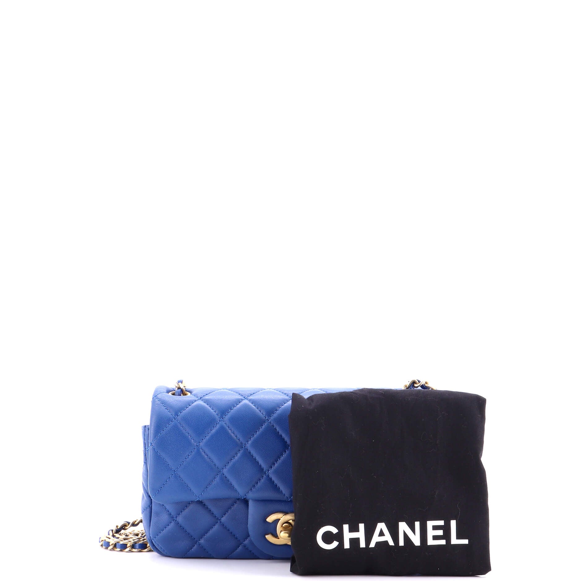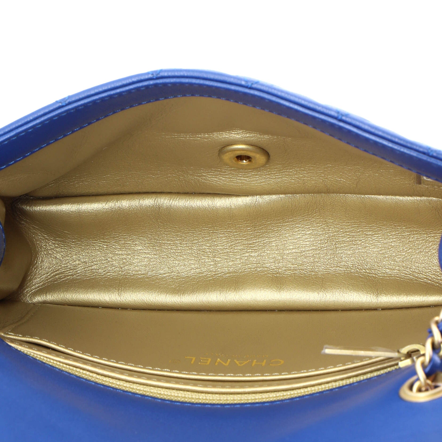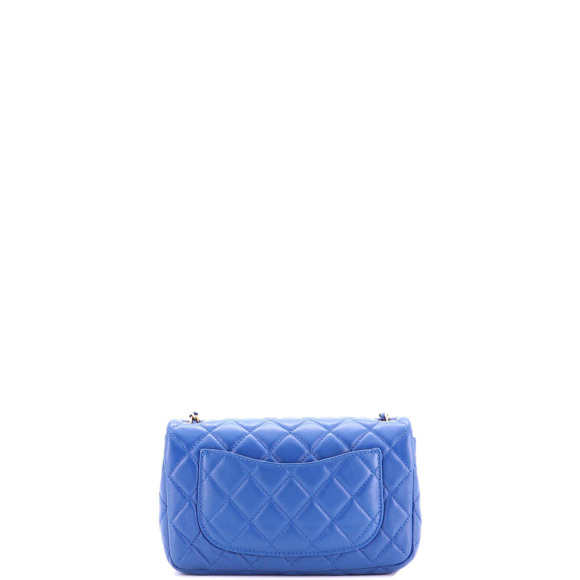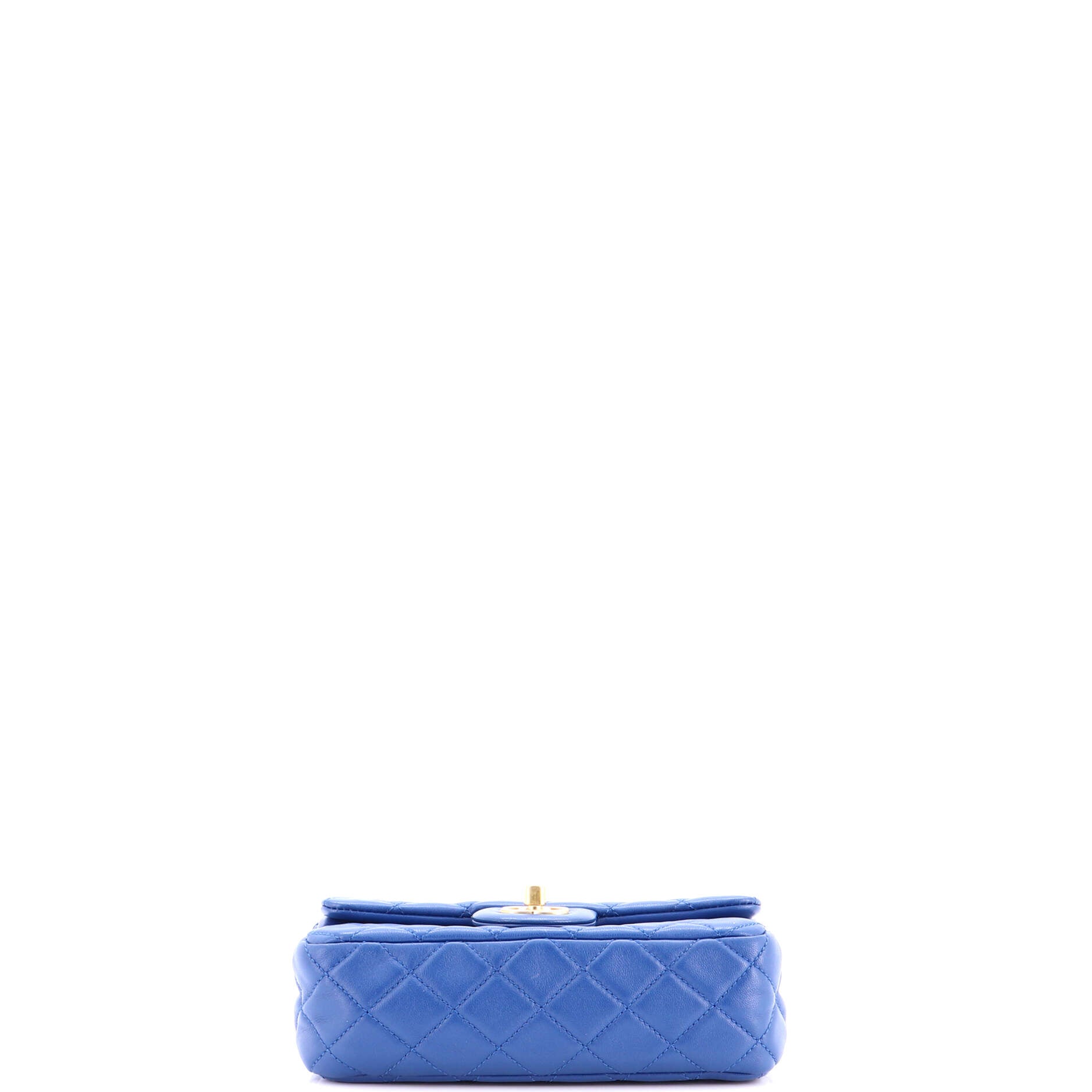 Chanel Shoulder Bag Pearl Crush Square Single Flap Mini in Blue Lambskin Quilted Leather and Gold hardware. The product is in Perfect Condition (AA).