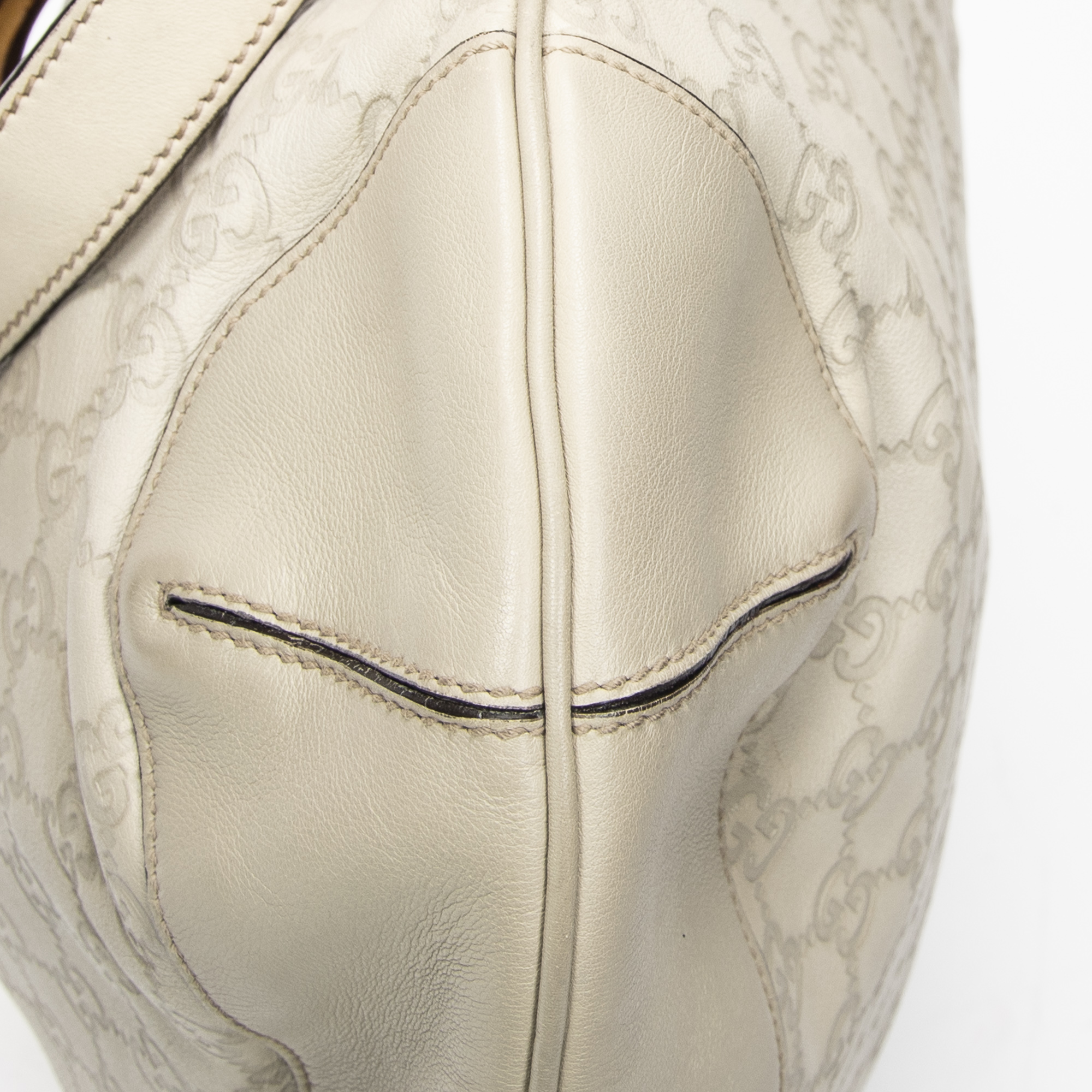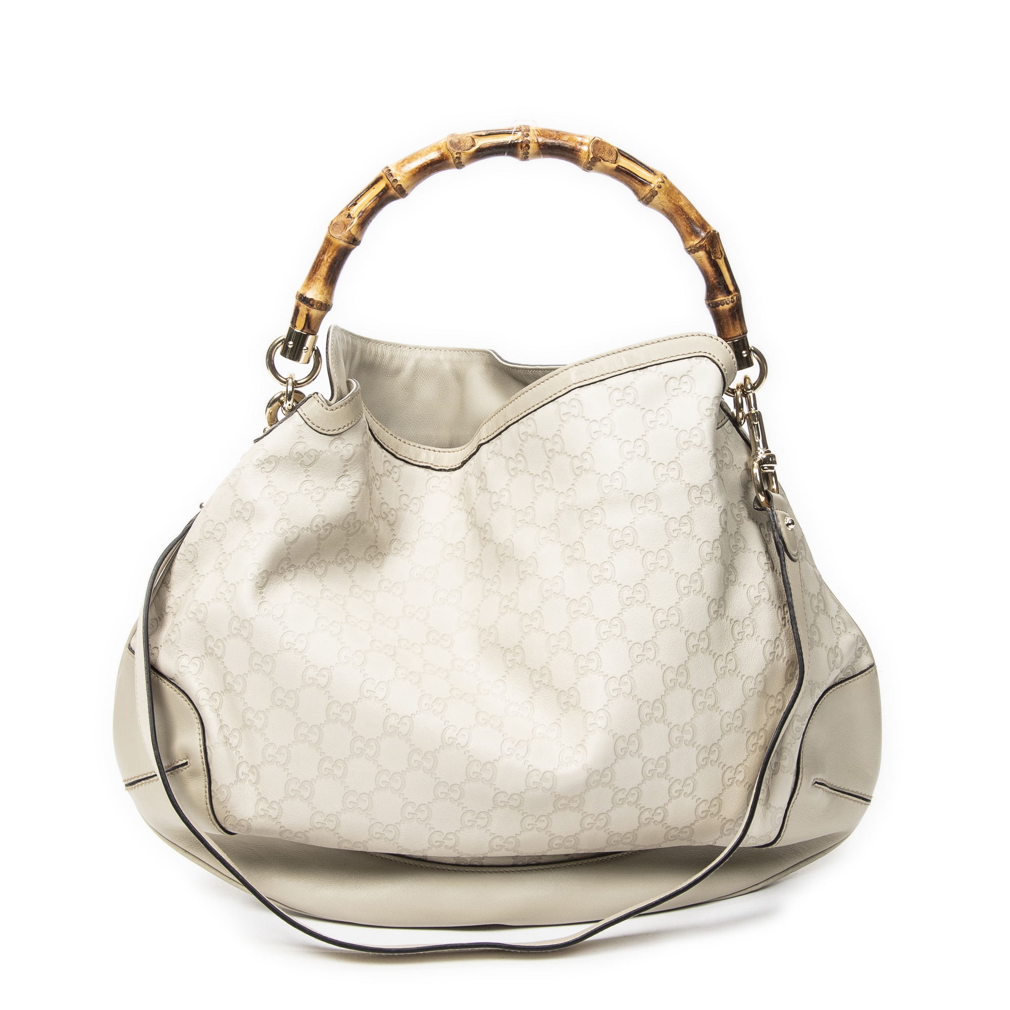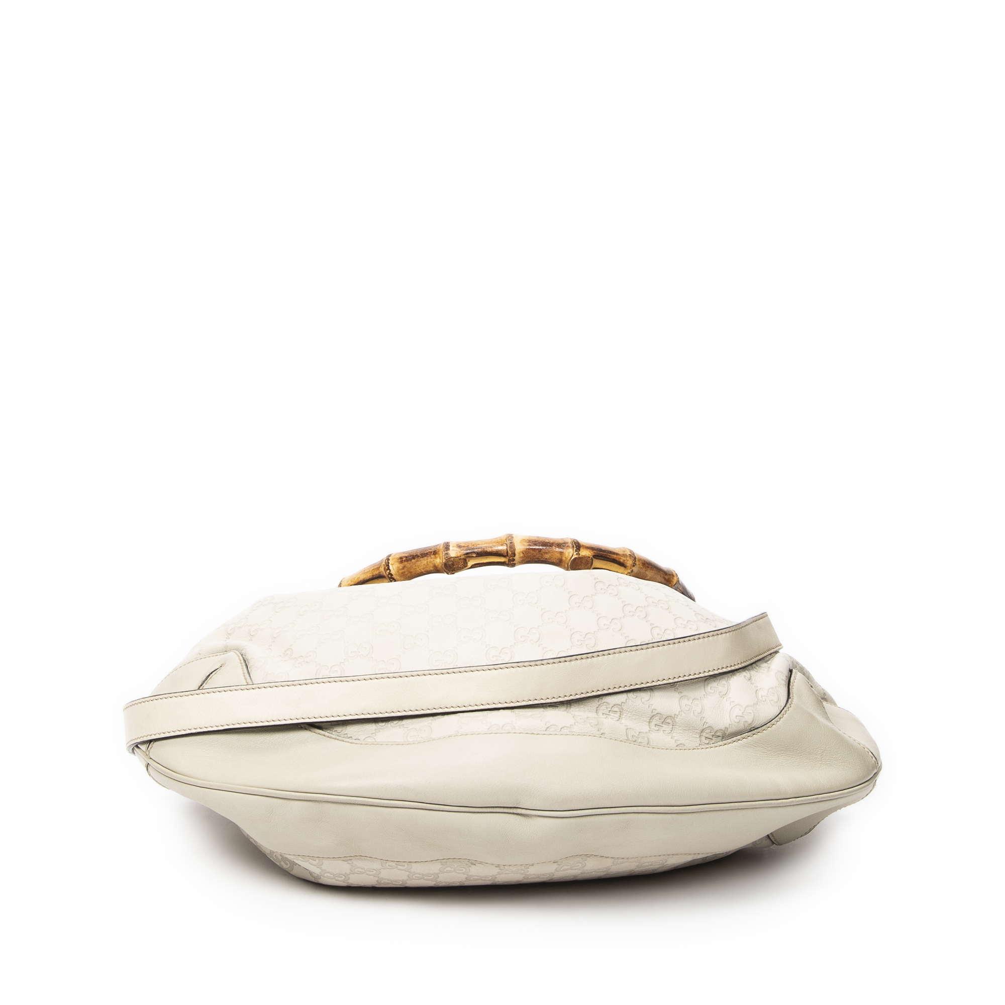 Gucci Shoulder Bag Peggy Bamboo Handle Hobo in Ivory Guccissima Leather and Gold hardware. The product is in Very Good Condition (AB).