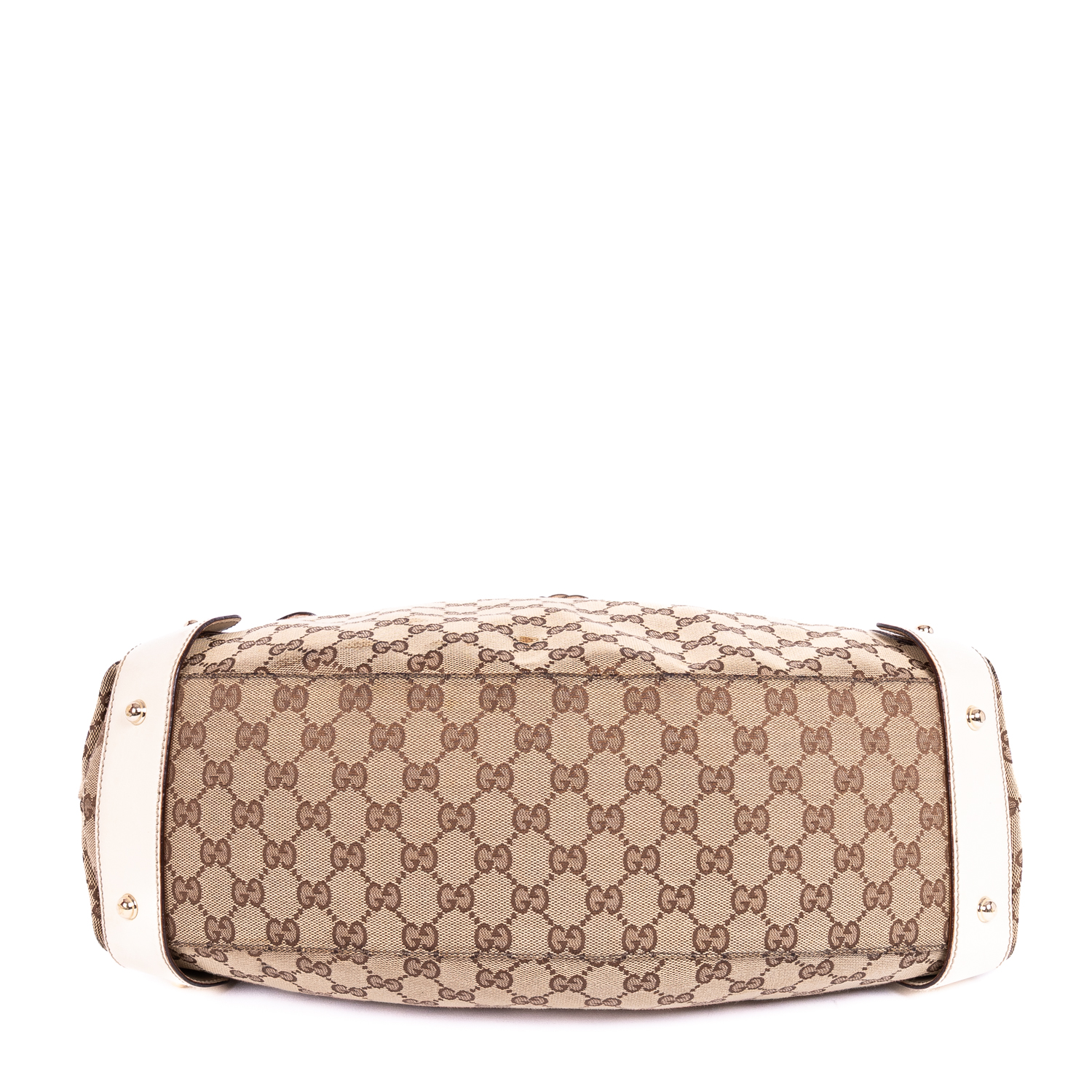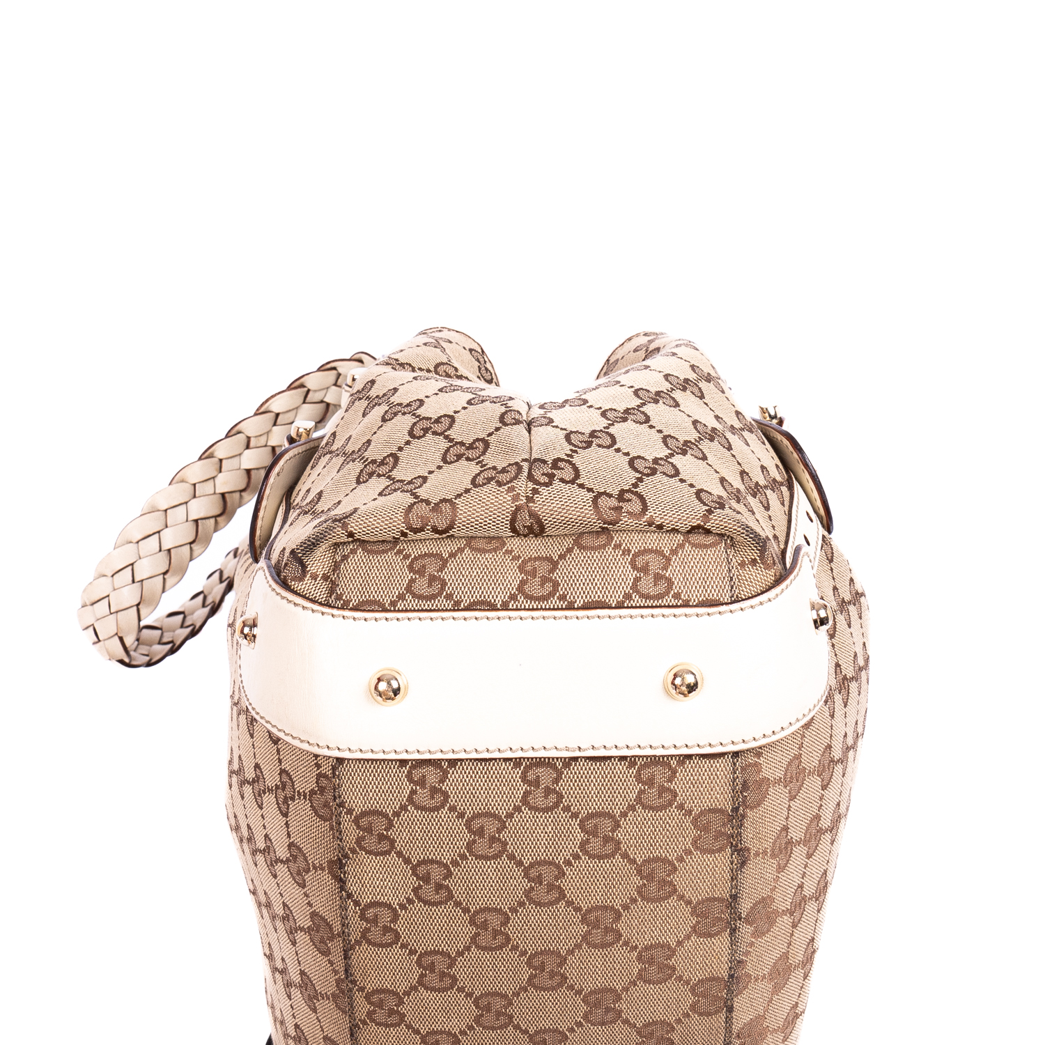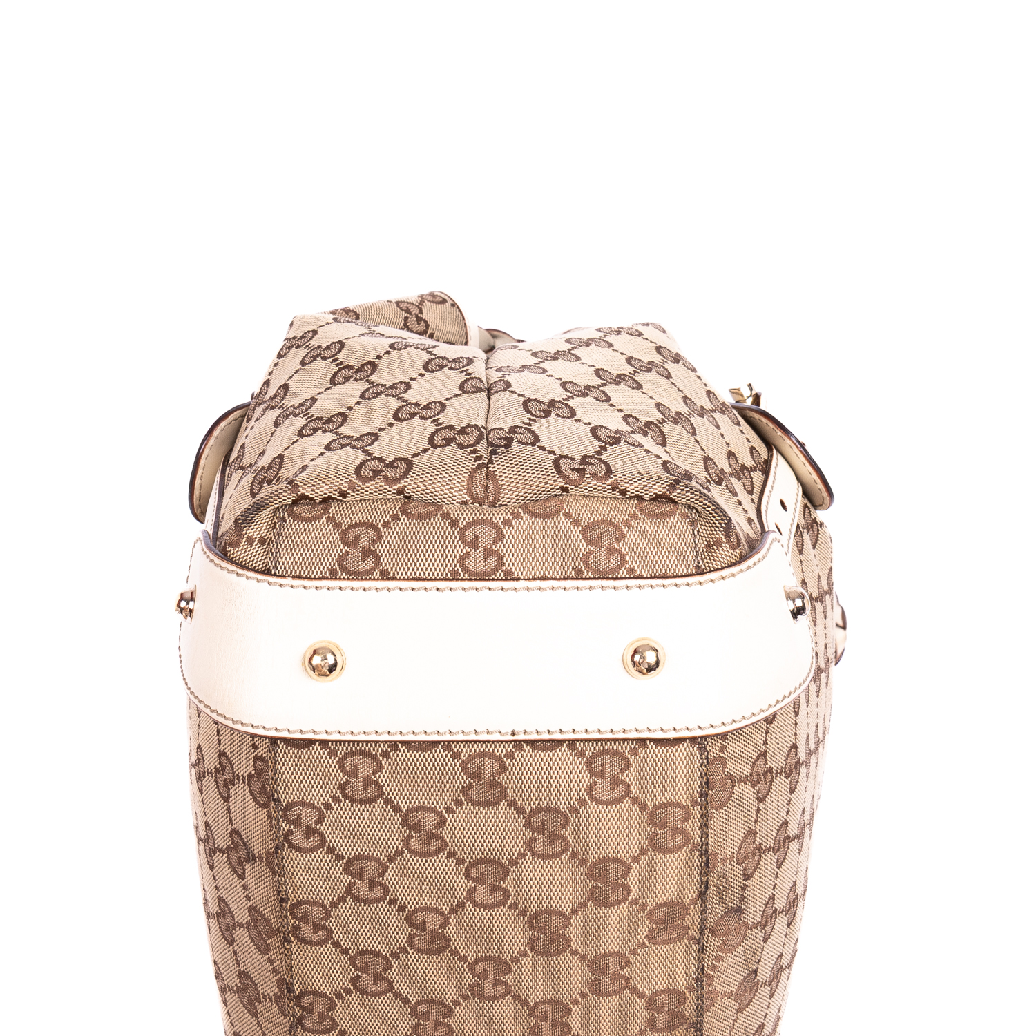 Gucci Shoulder Bag Pelham in Beige/White GG Monogram Canvas and Champagne Gold hardware. The product is in Excellent Condition (A).