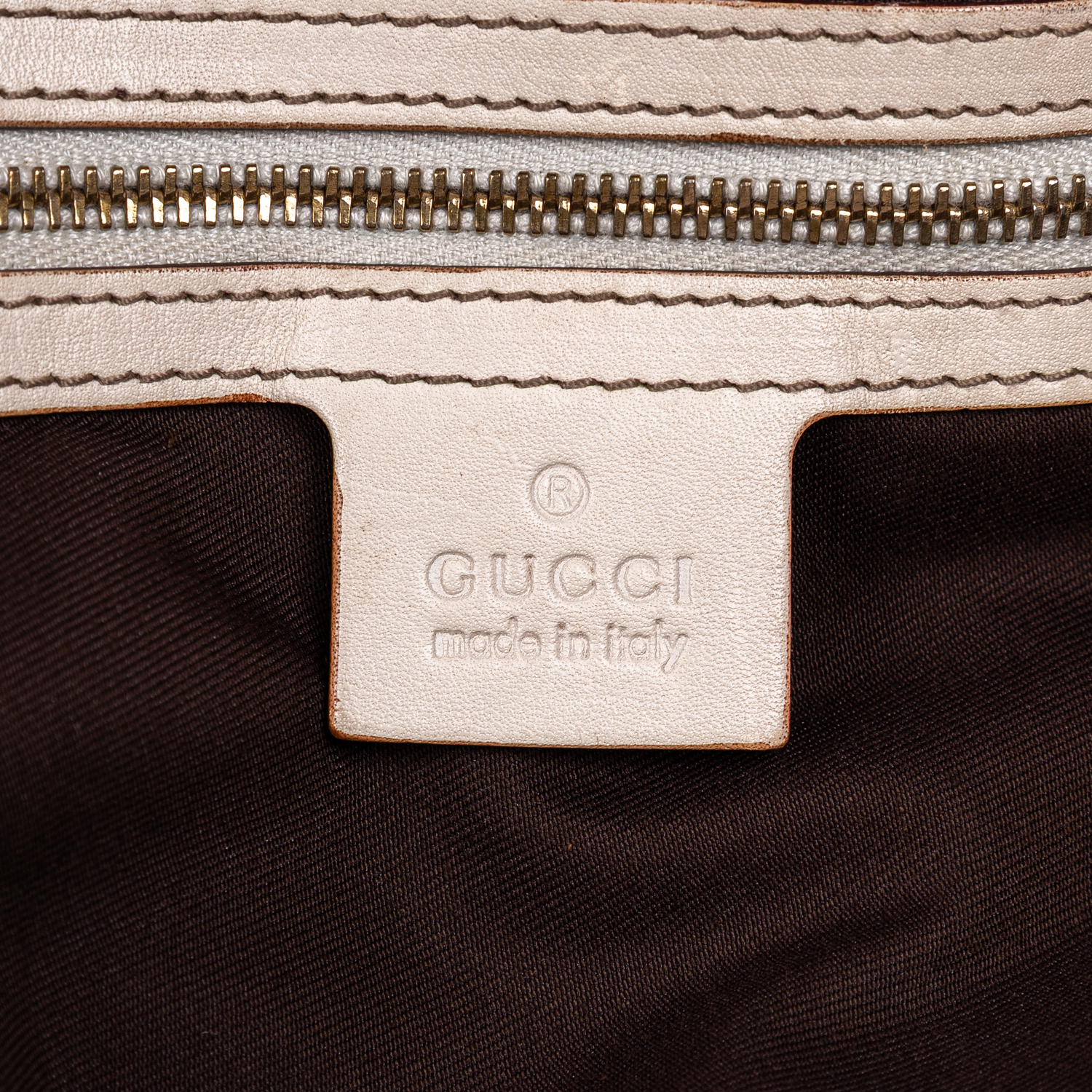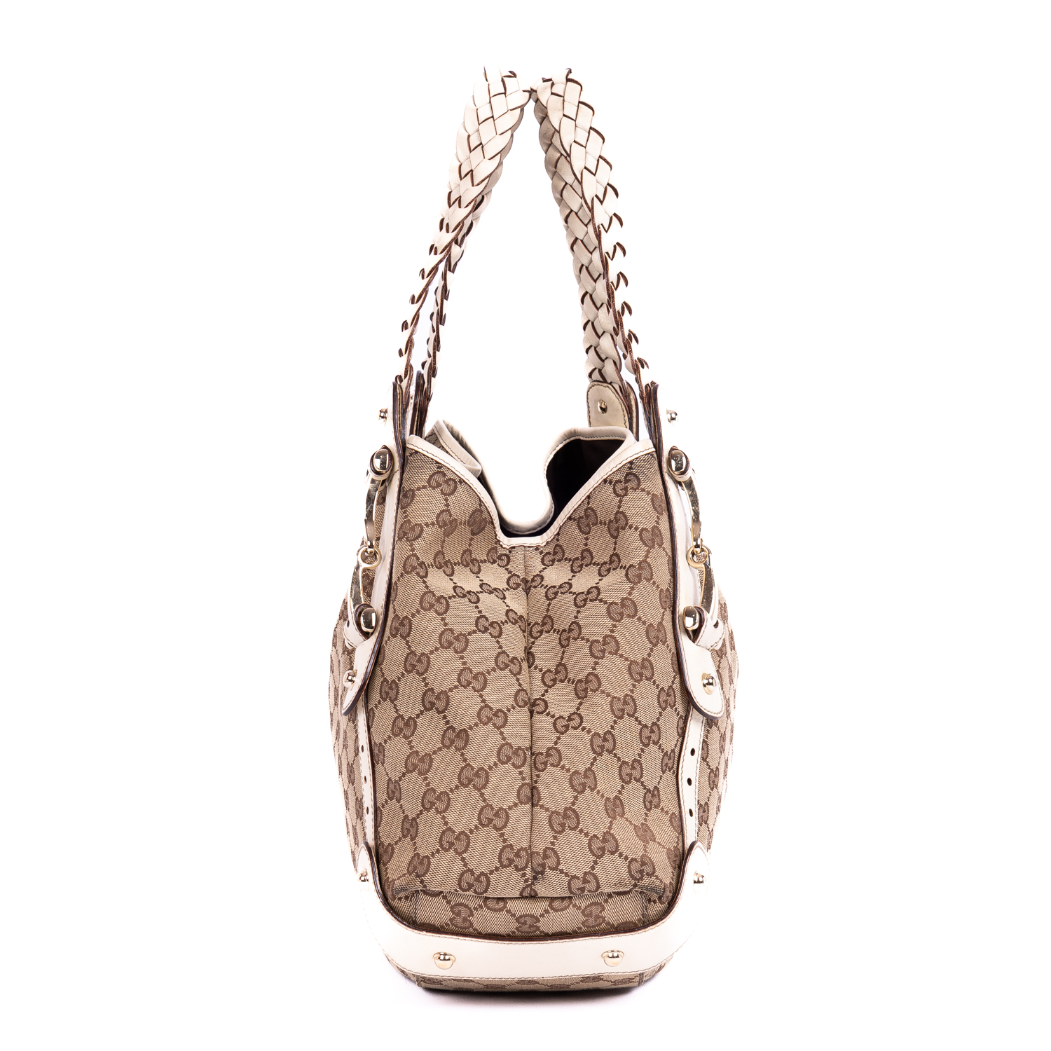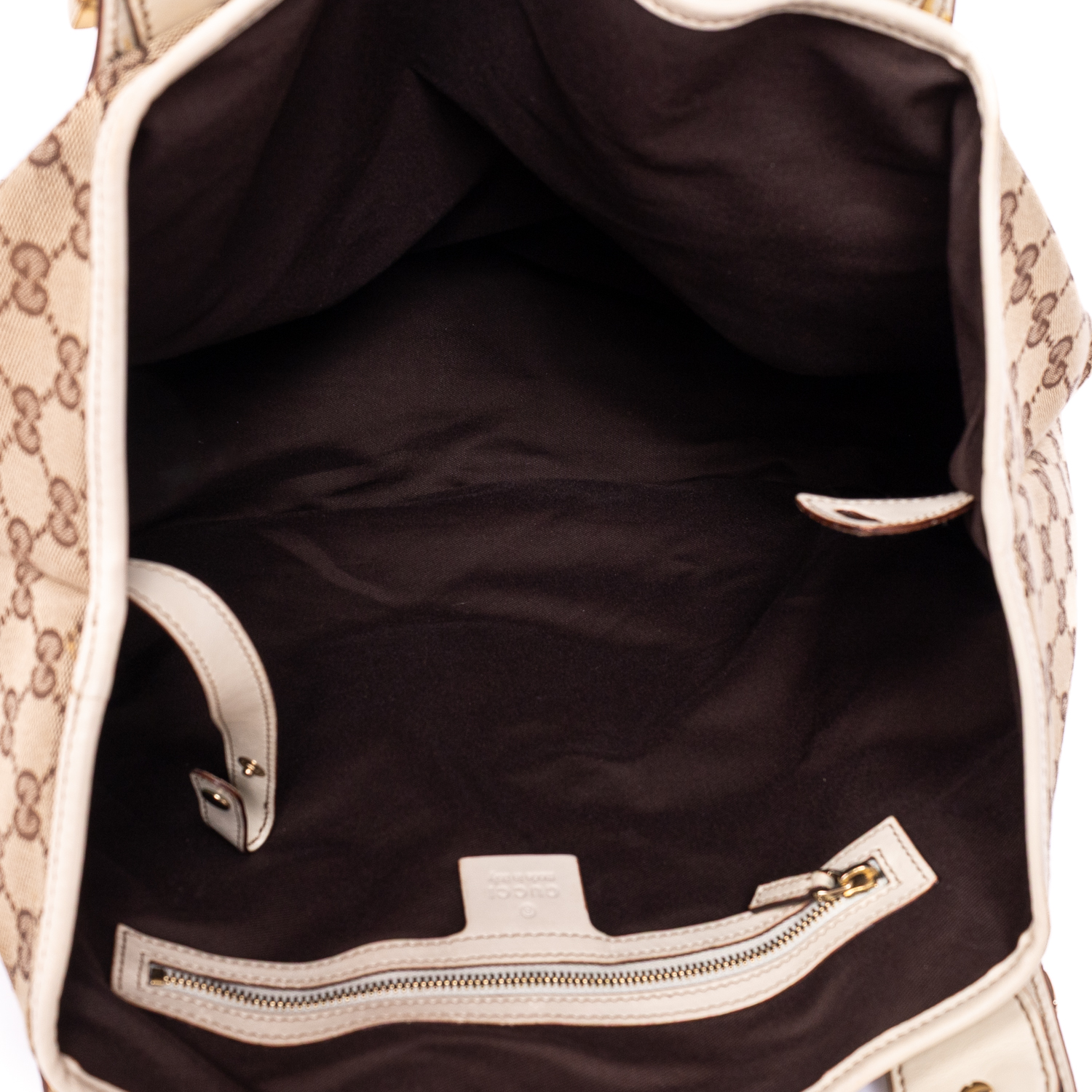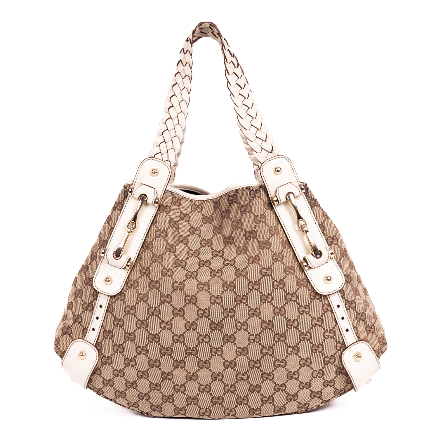 Gucci Shoulder Bag Pelham in Beige/White GG Monogram Canvas and Champagne Gold hardware. The product is in Excellent Condition (A).