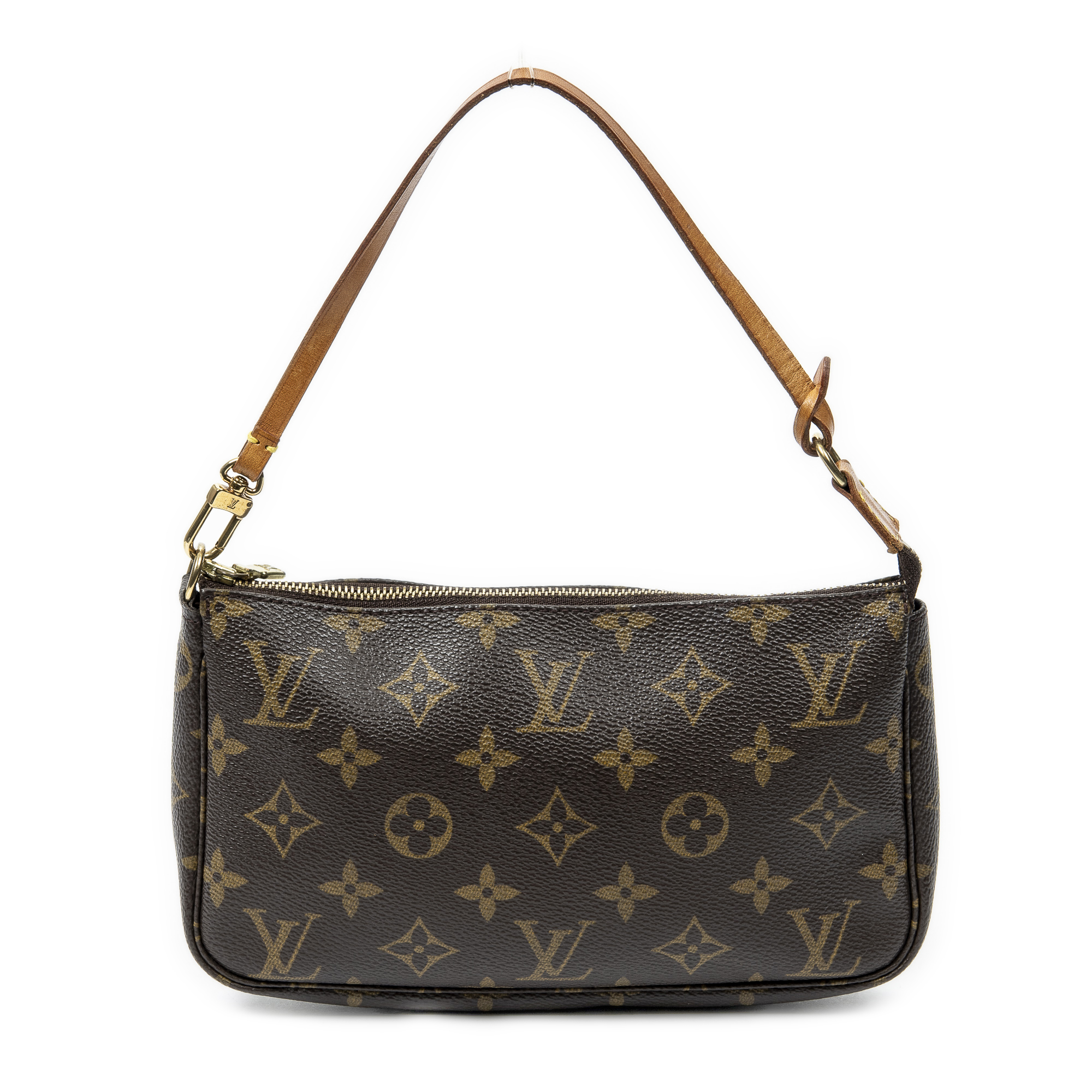Louis Vuitton Shoulder Bag Pochette Accessoires in Brown Monogram Canvas and Golden Brass hardware. The product is in Very Good Condition (AB).