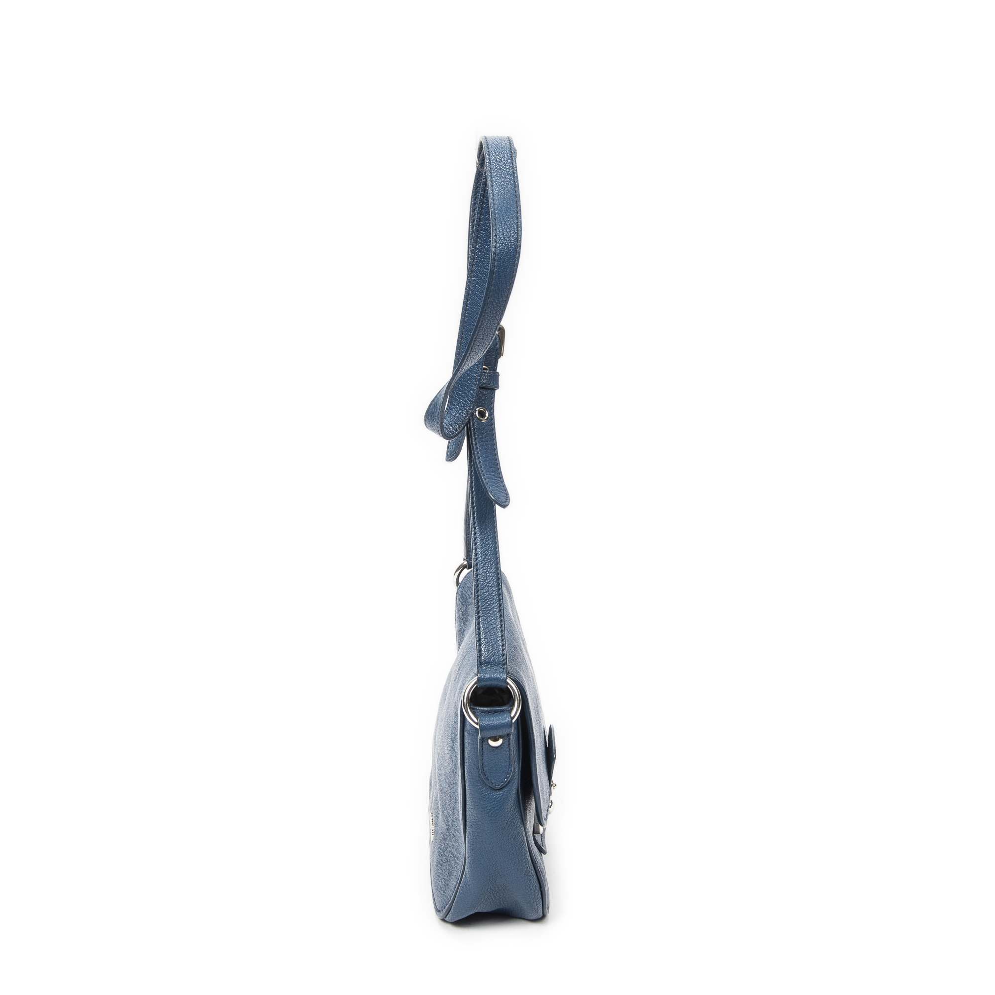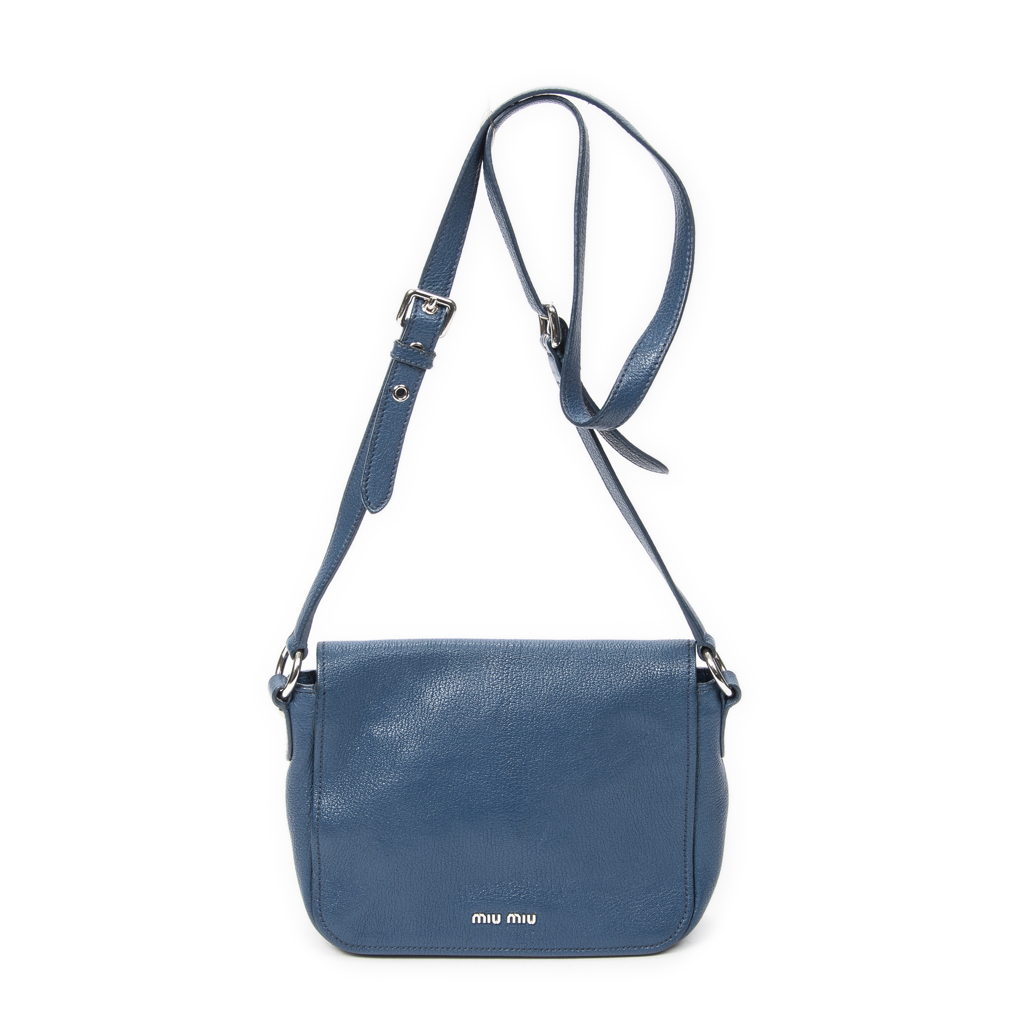 Miu Miu Shoulder Bag Pushlock Flap Crossbody in Blue Madras Leather and Silver hardware. The product is in Excellent Condition (A).