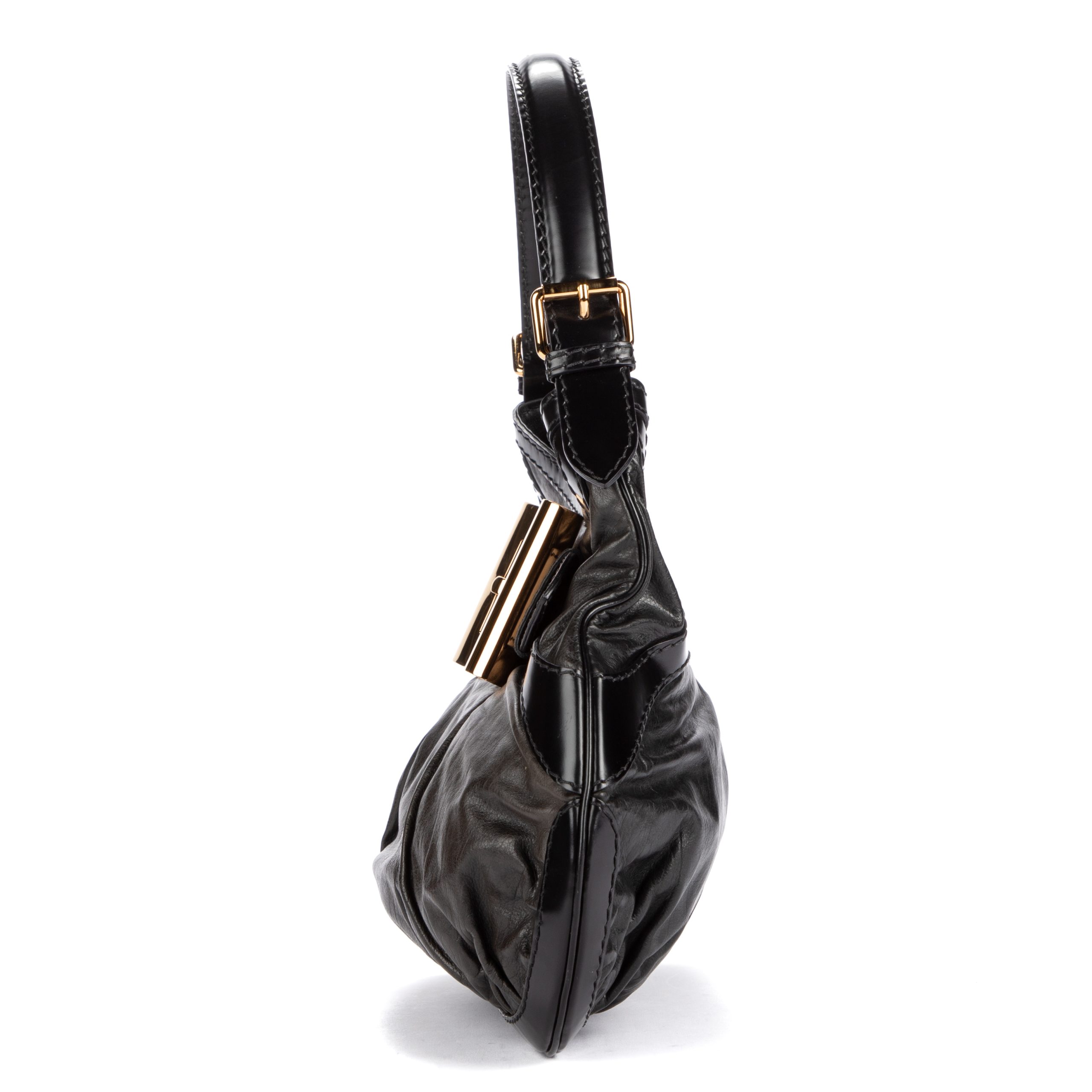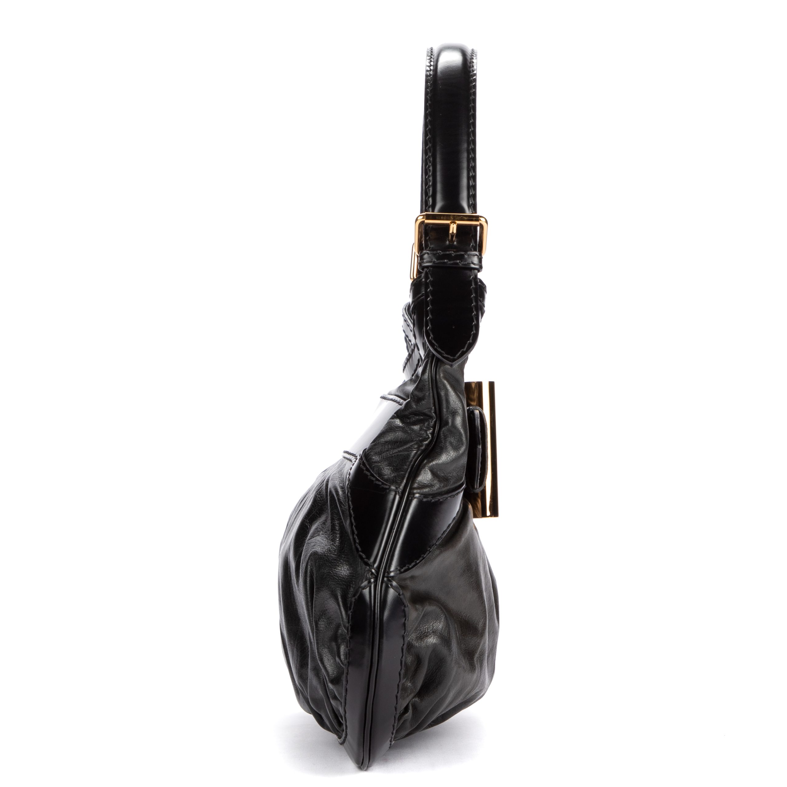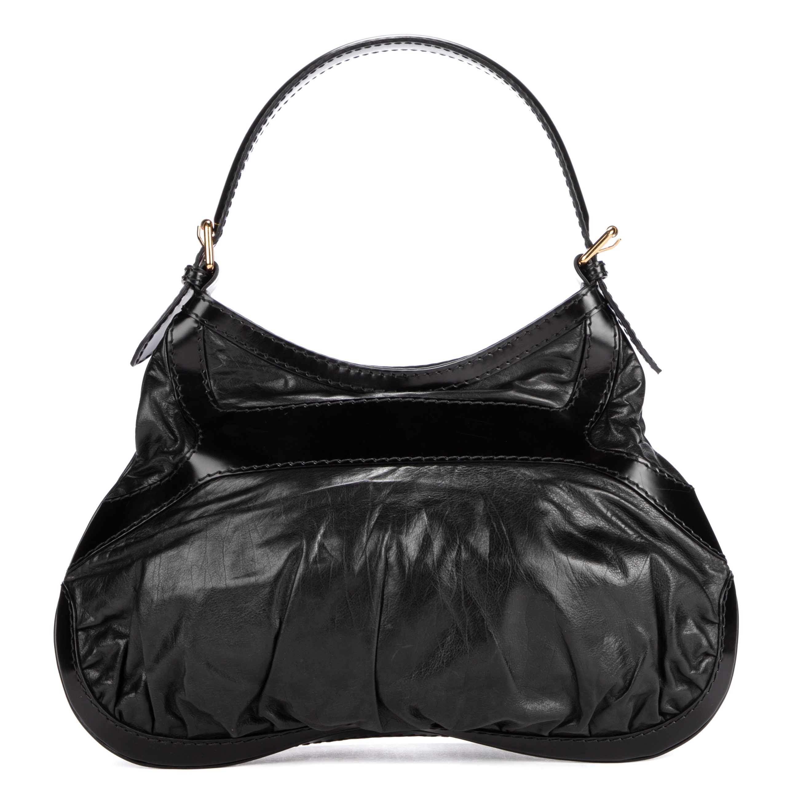 Gucci Shoulder Bag Queen Hobo in Black Pleated Calfskin Leather/Smooth Leather and Gold hardware. The product is in Excellent Condition (A).