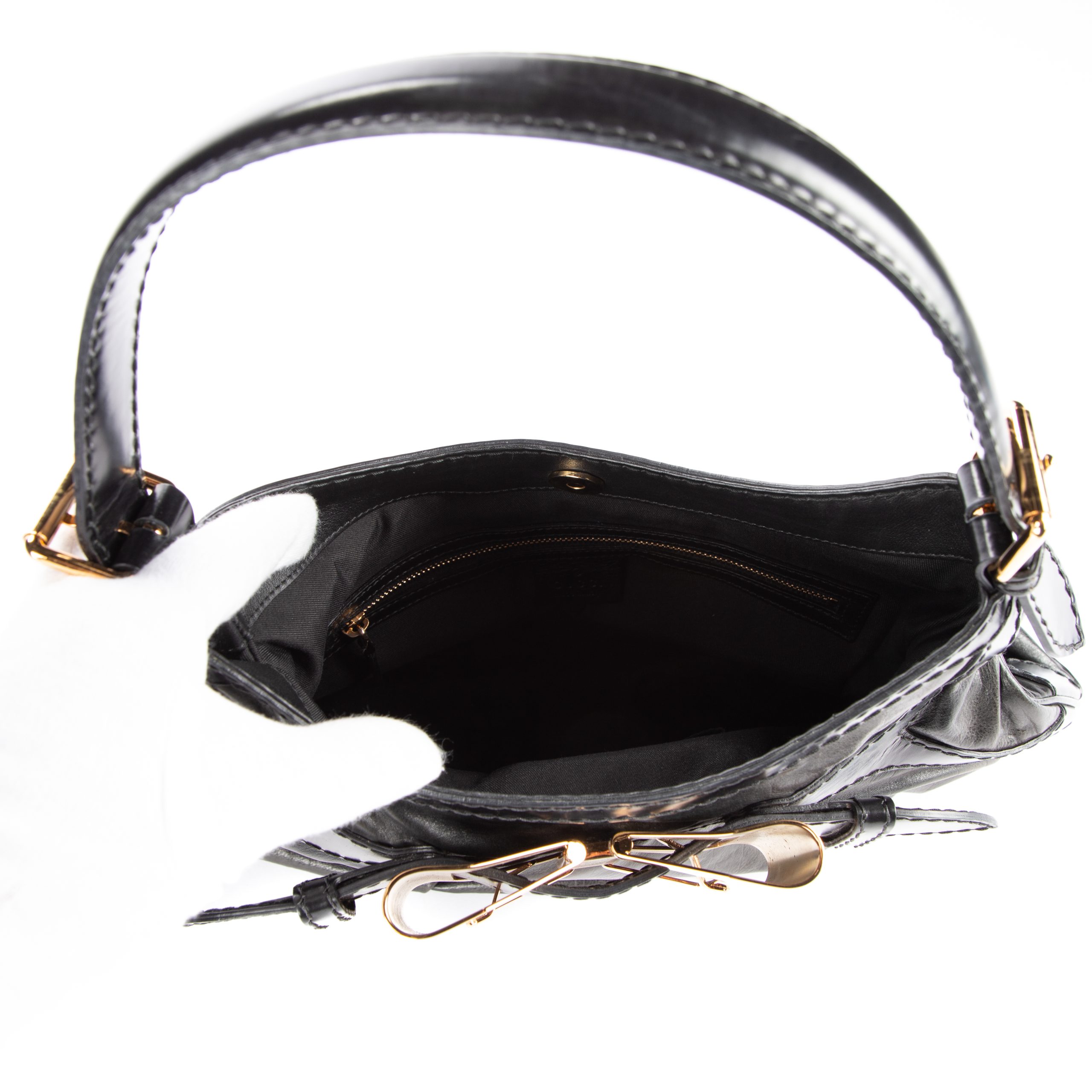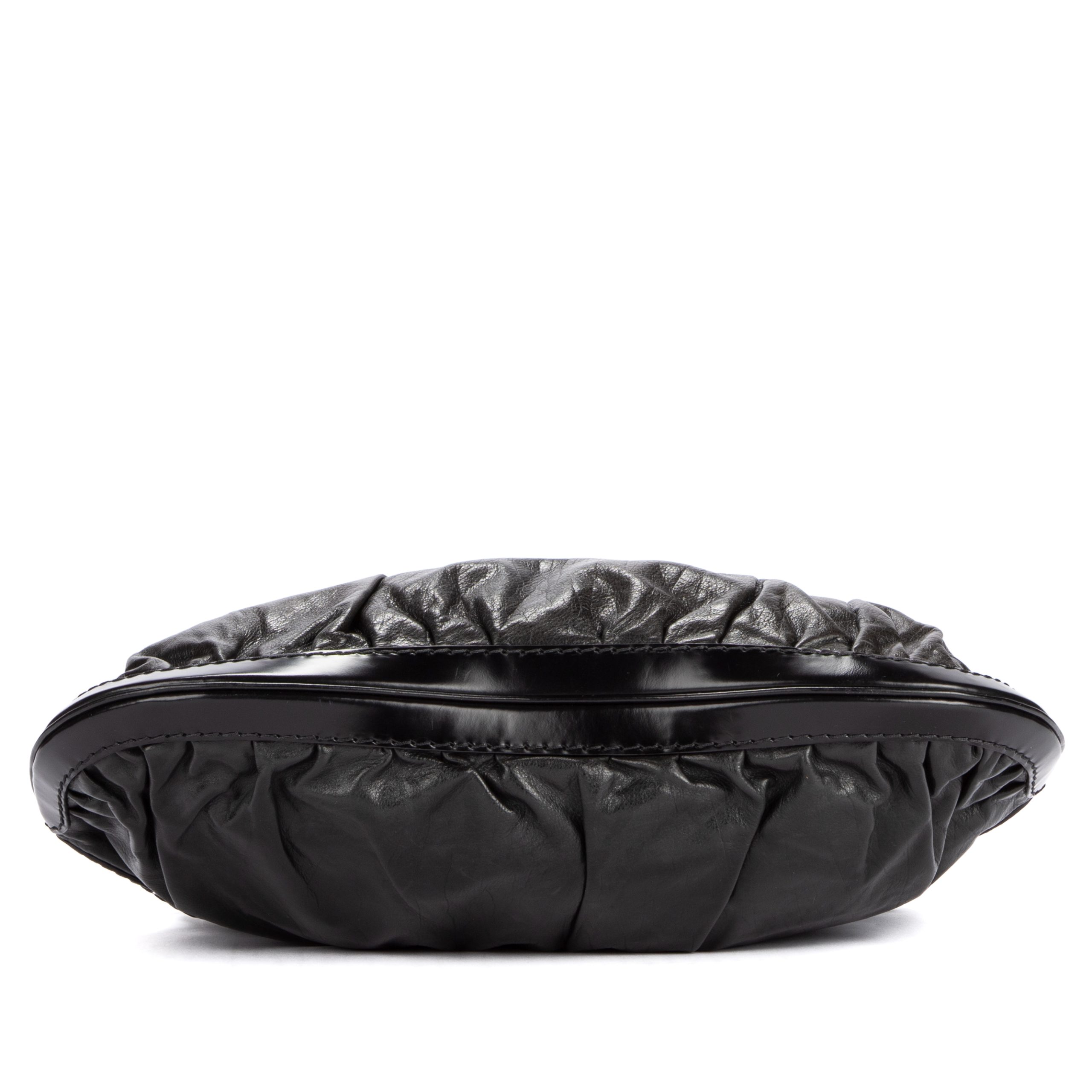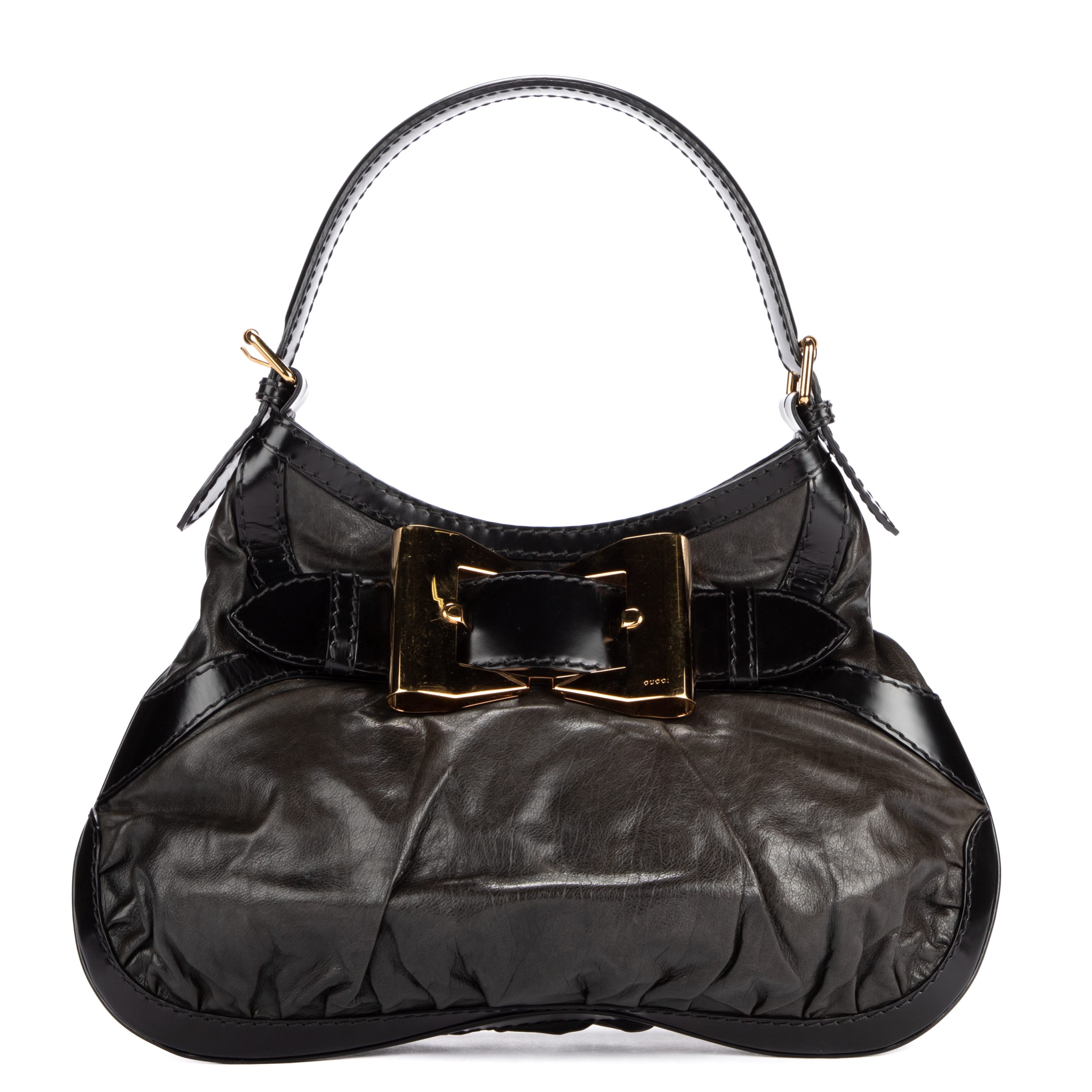 Gucci Shoulder Bag Queen Hobo in Black Pleated Calfskin Leather/Smooth Leather and Gold hardware. The product is in Excellent Condition (A).
