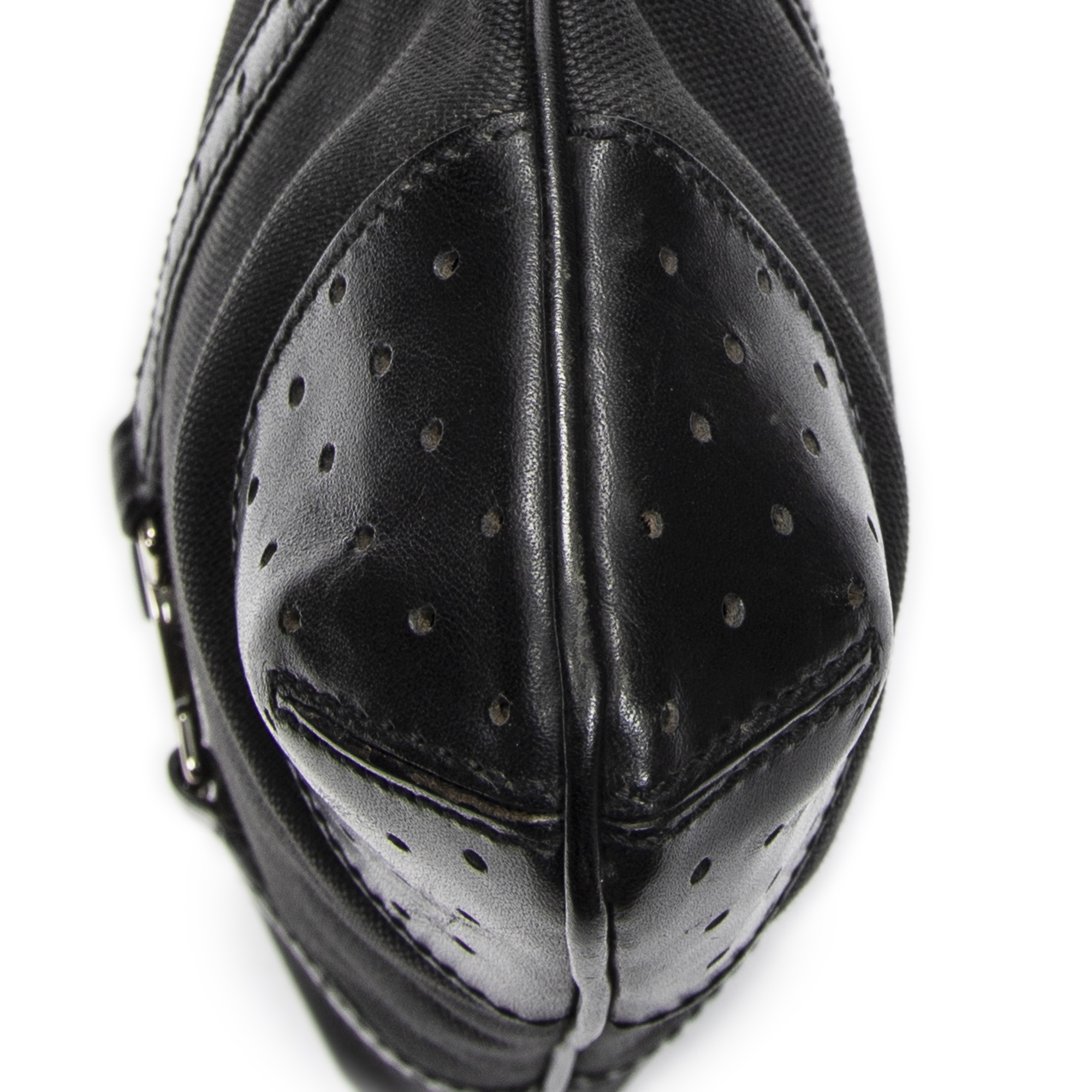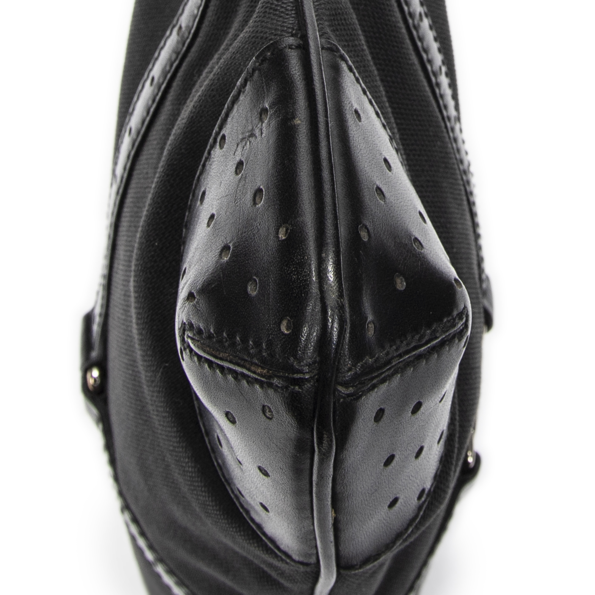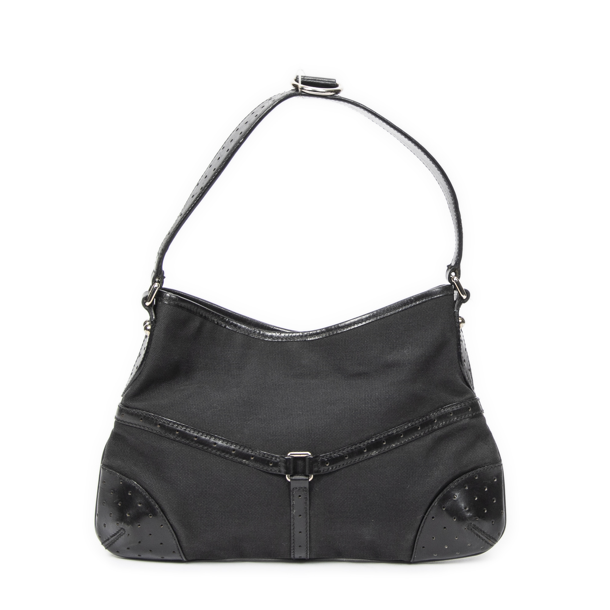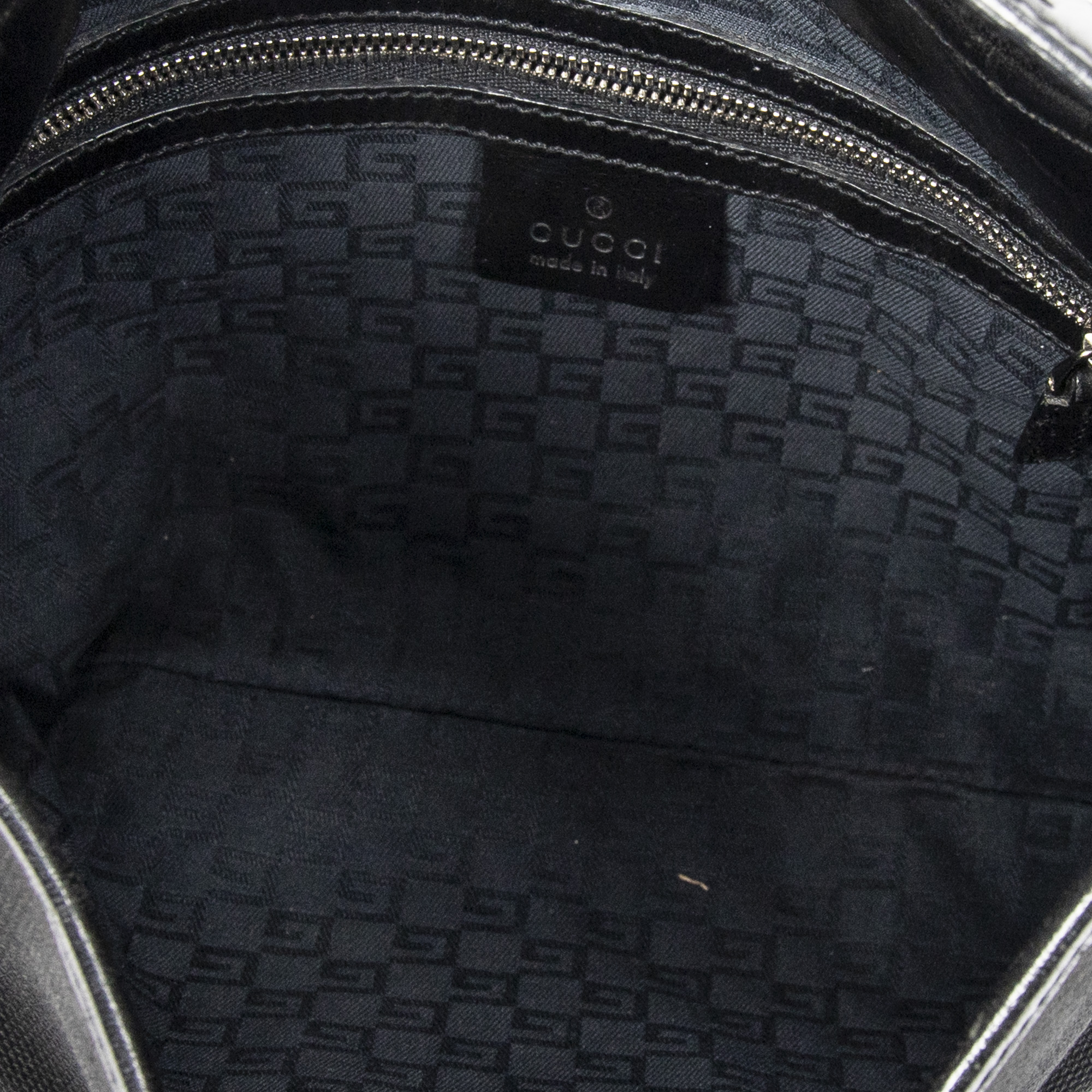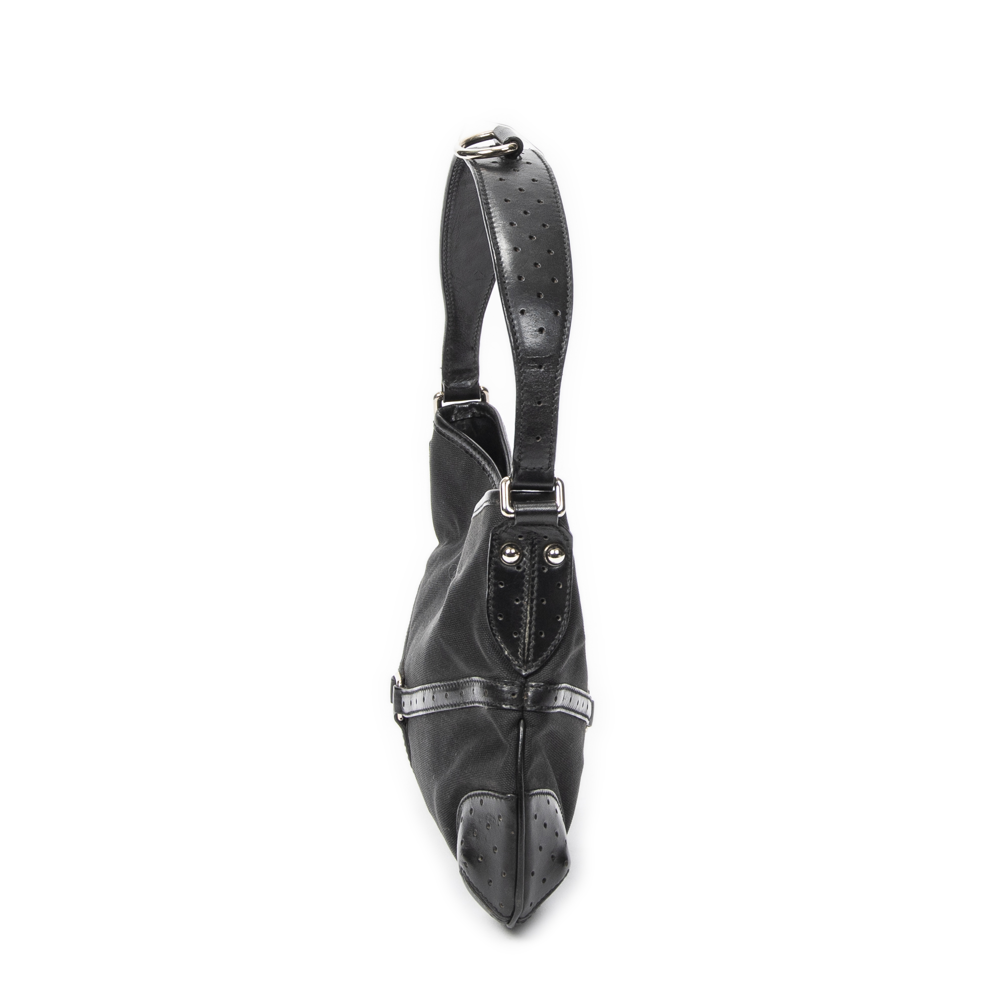 Gucci Shoulder Bag Reins Hobo in Black Canvas and Silver hardware. The product is in Very Good Condition (AB).