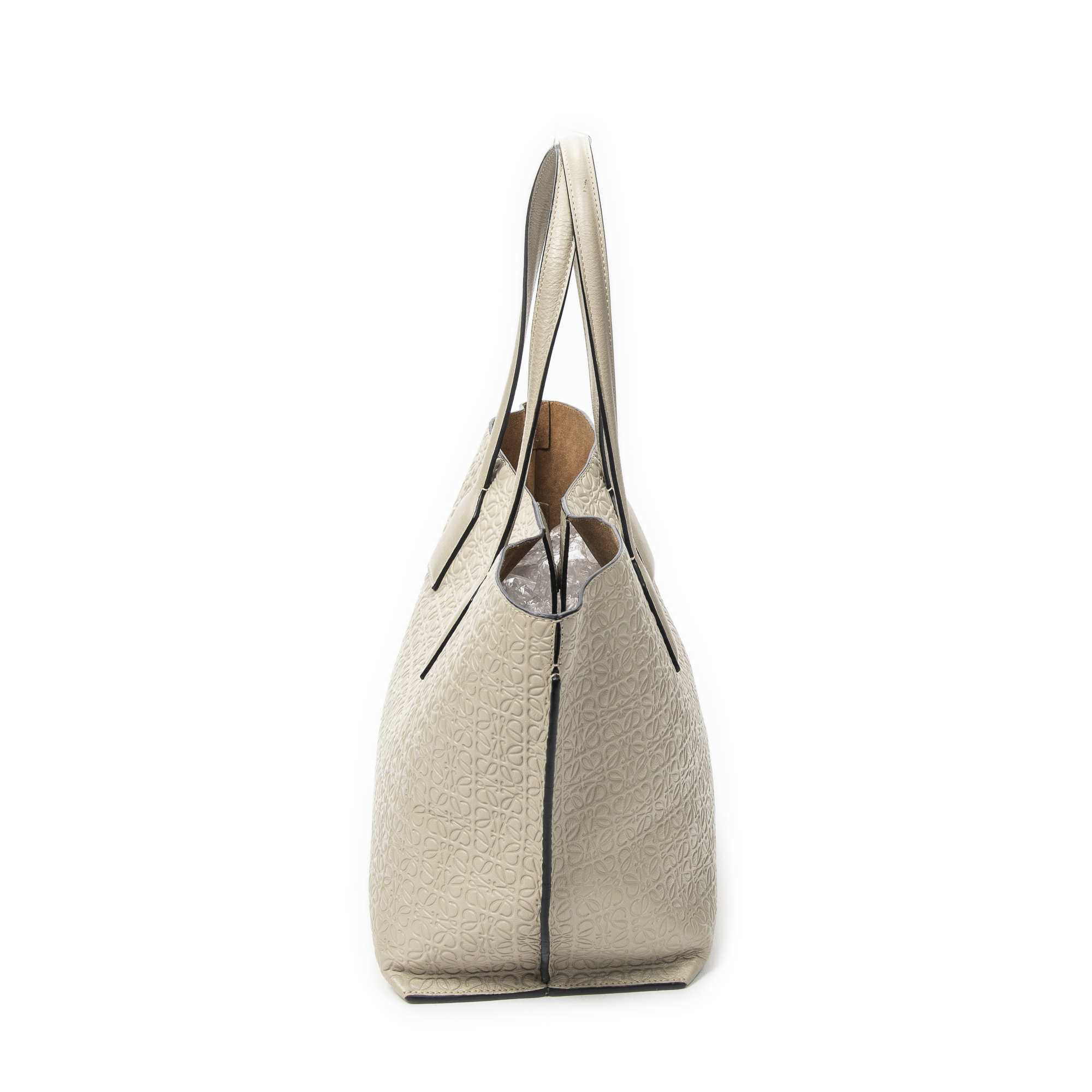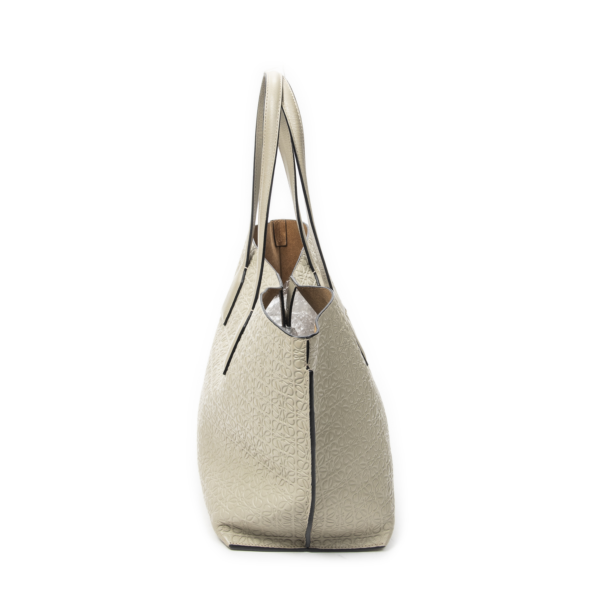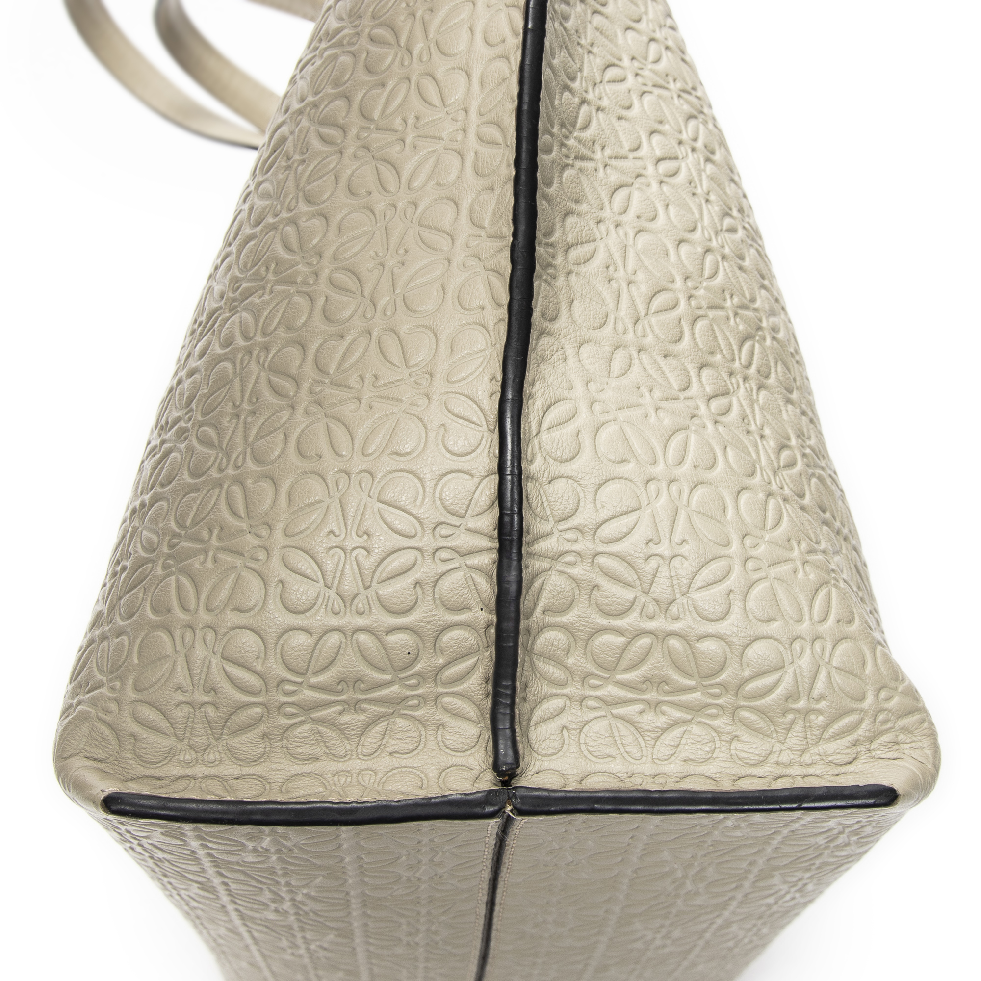 Loewe Shoulder Bag Repeat Anagram T Shopper Tote in Taupe Anagram Embossed Leather and hardware. The product is in Excellent Condition (A).