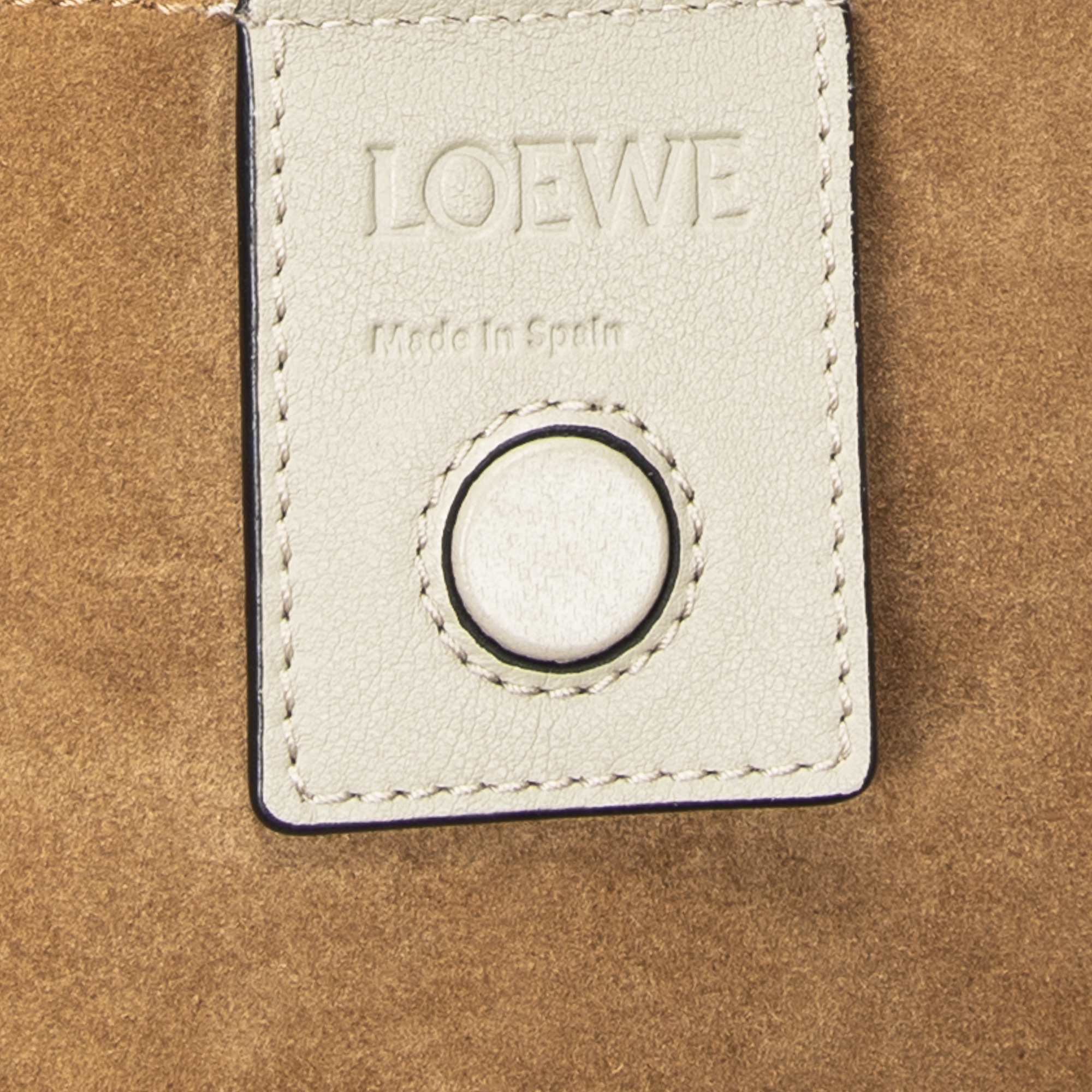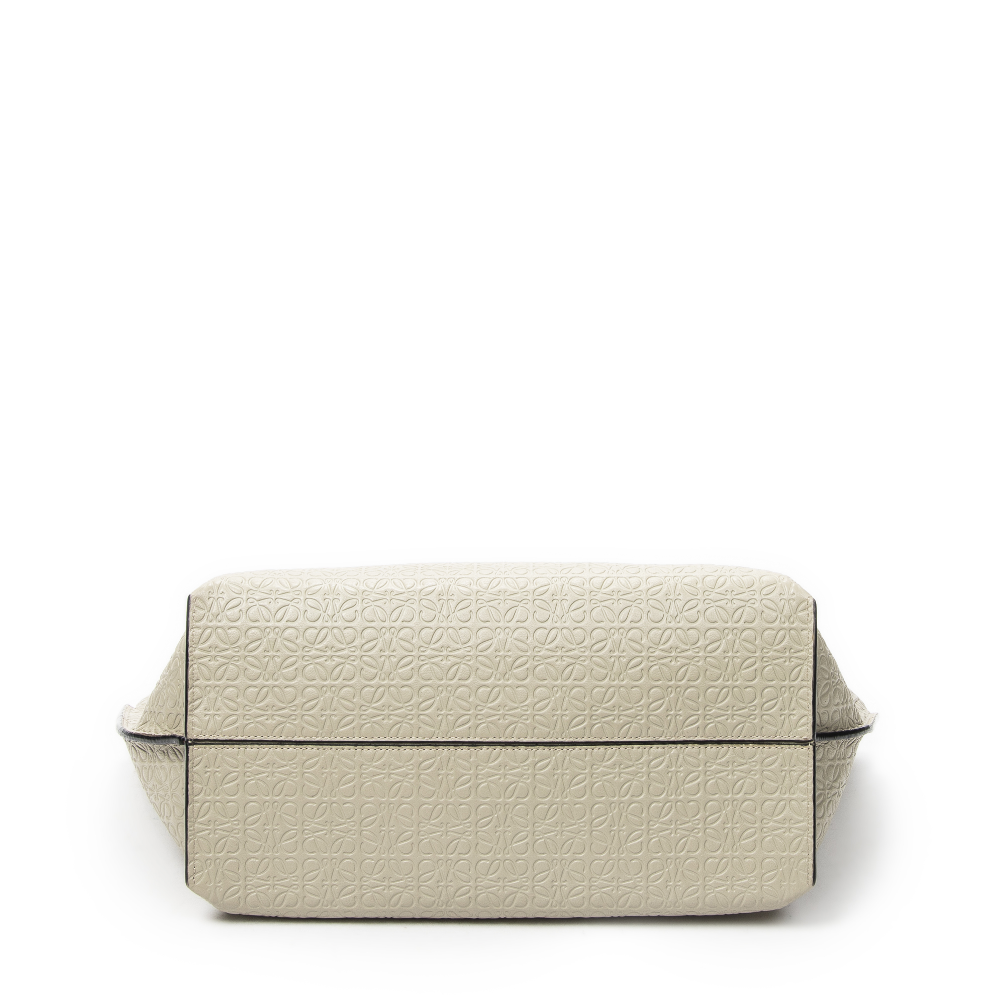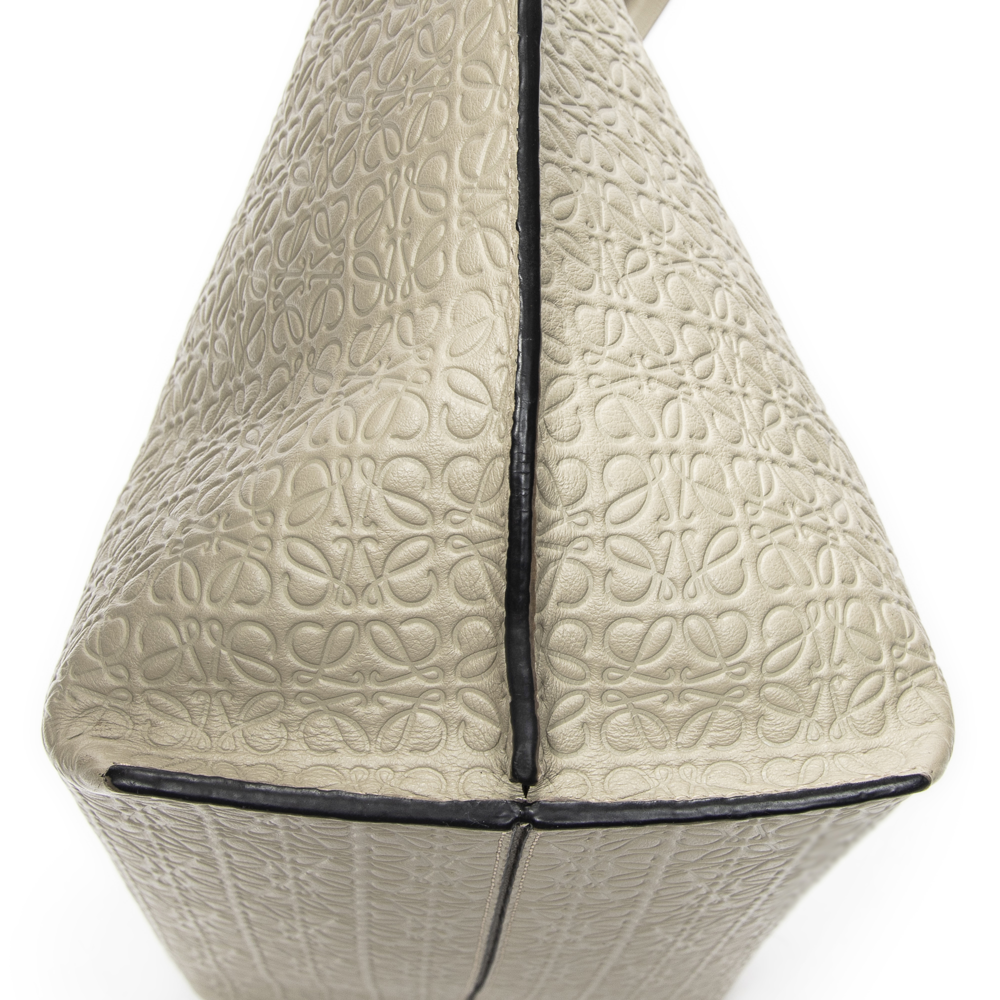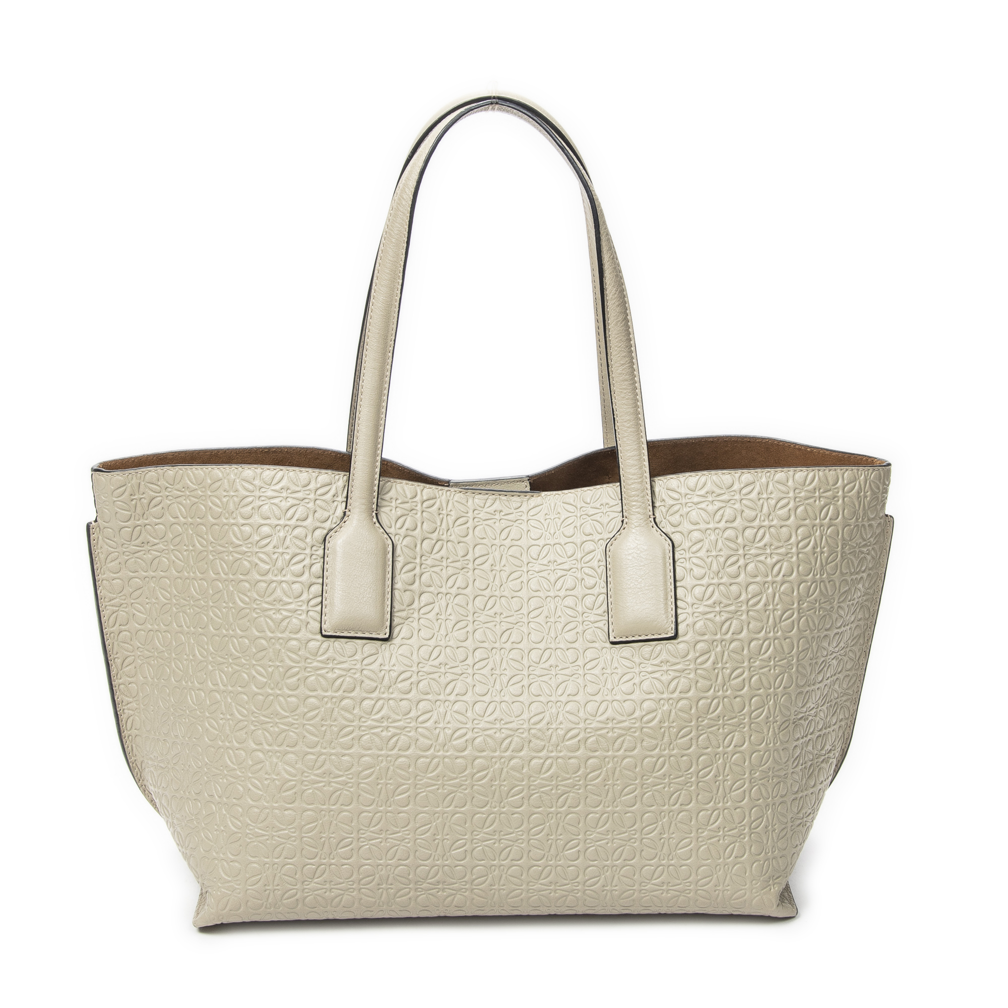 Loewe Shoulder Bag Repeat Anagram T Shopper Tote in Taupe Anagram Embossed Leather and hardware. The product is in Excellent Condition (A).